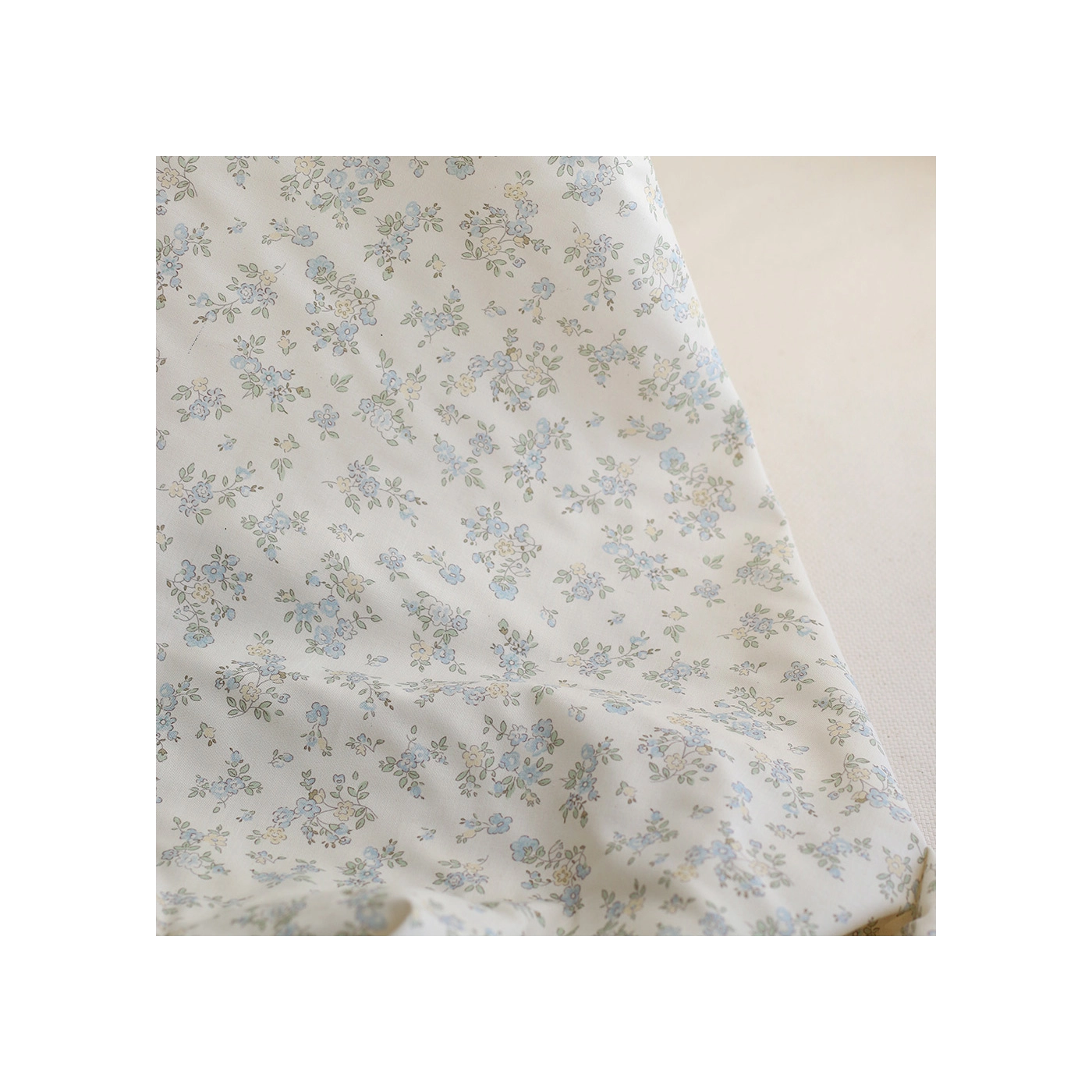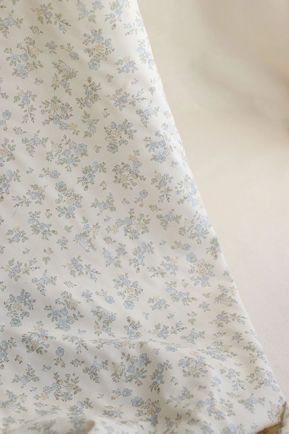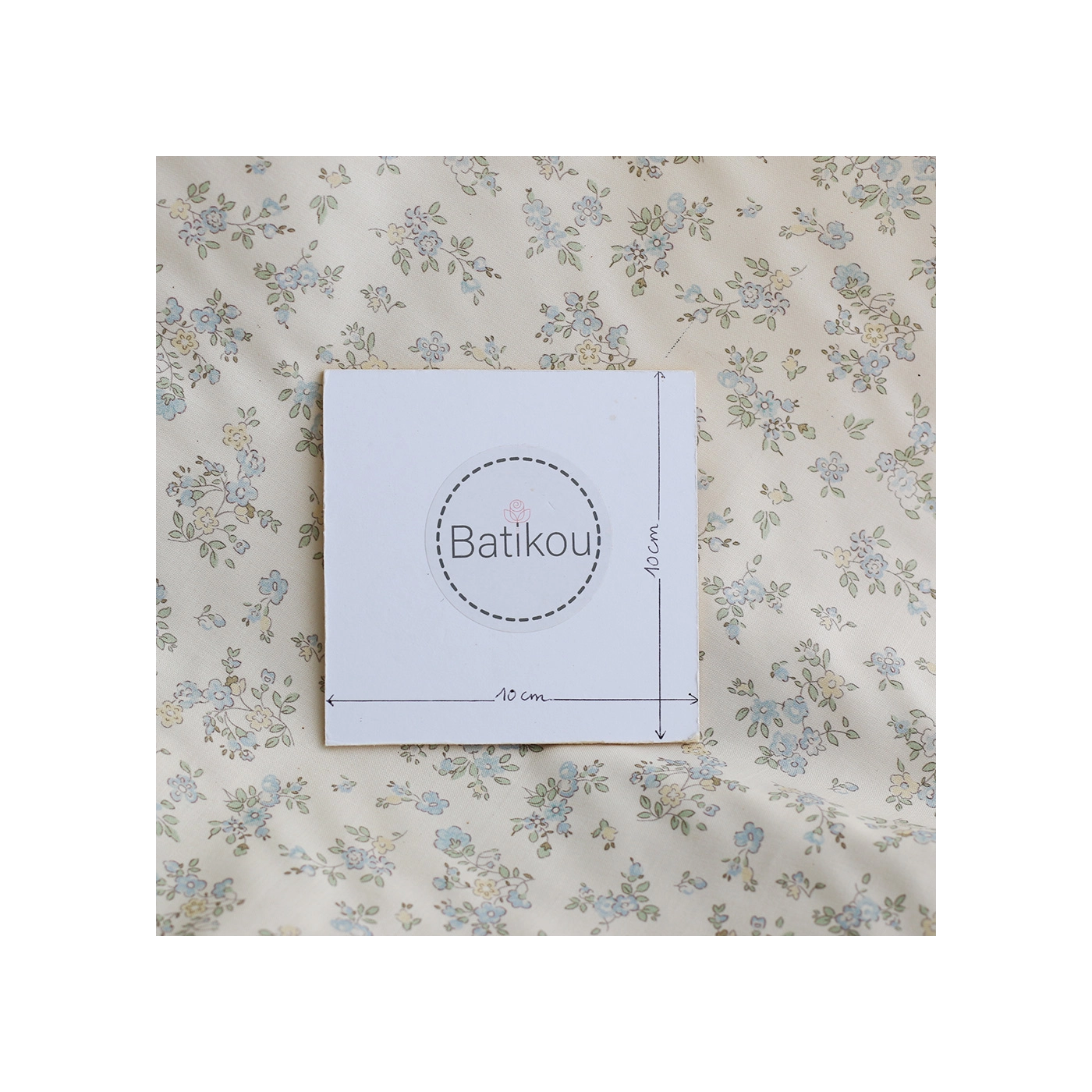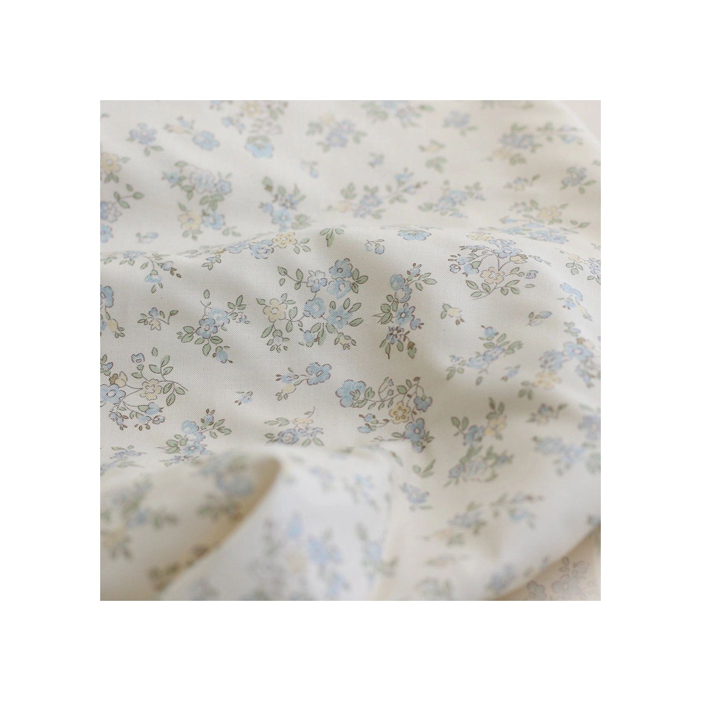 Scarlett - Popeline douce coton organique fond ivoire fleuri bleu
