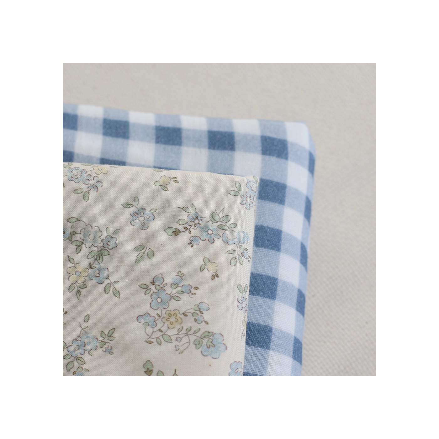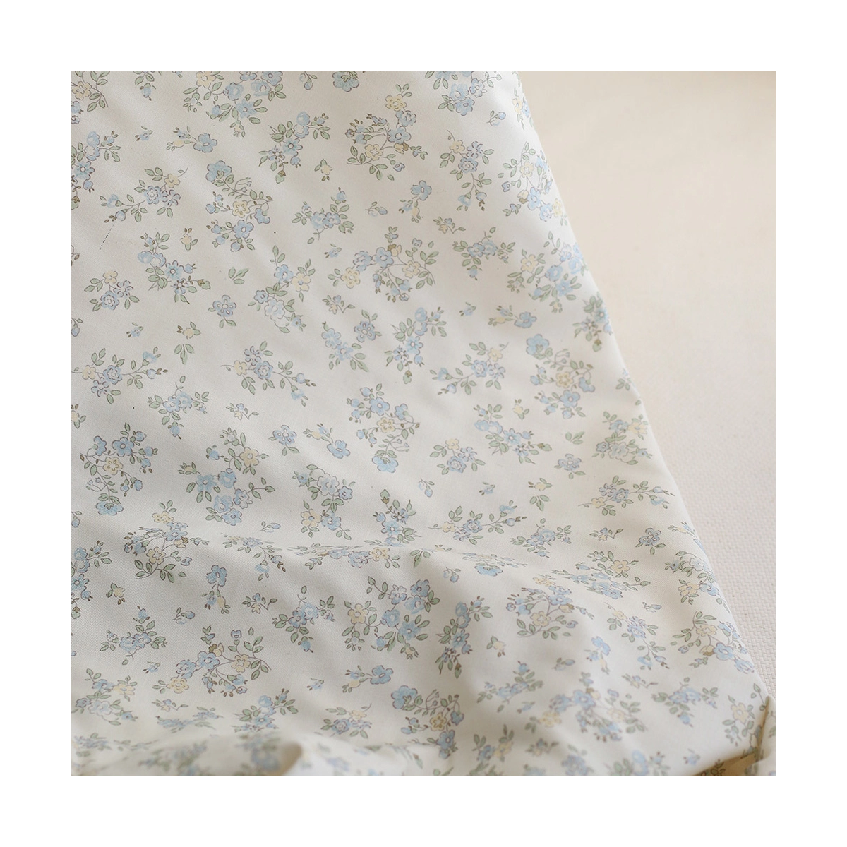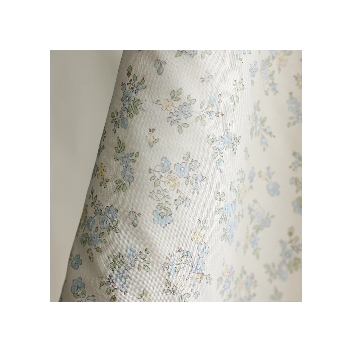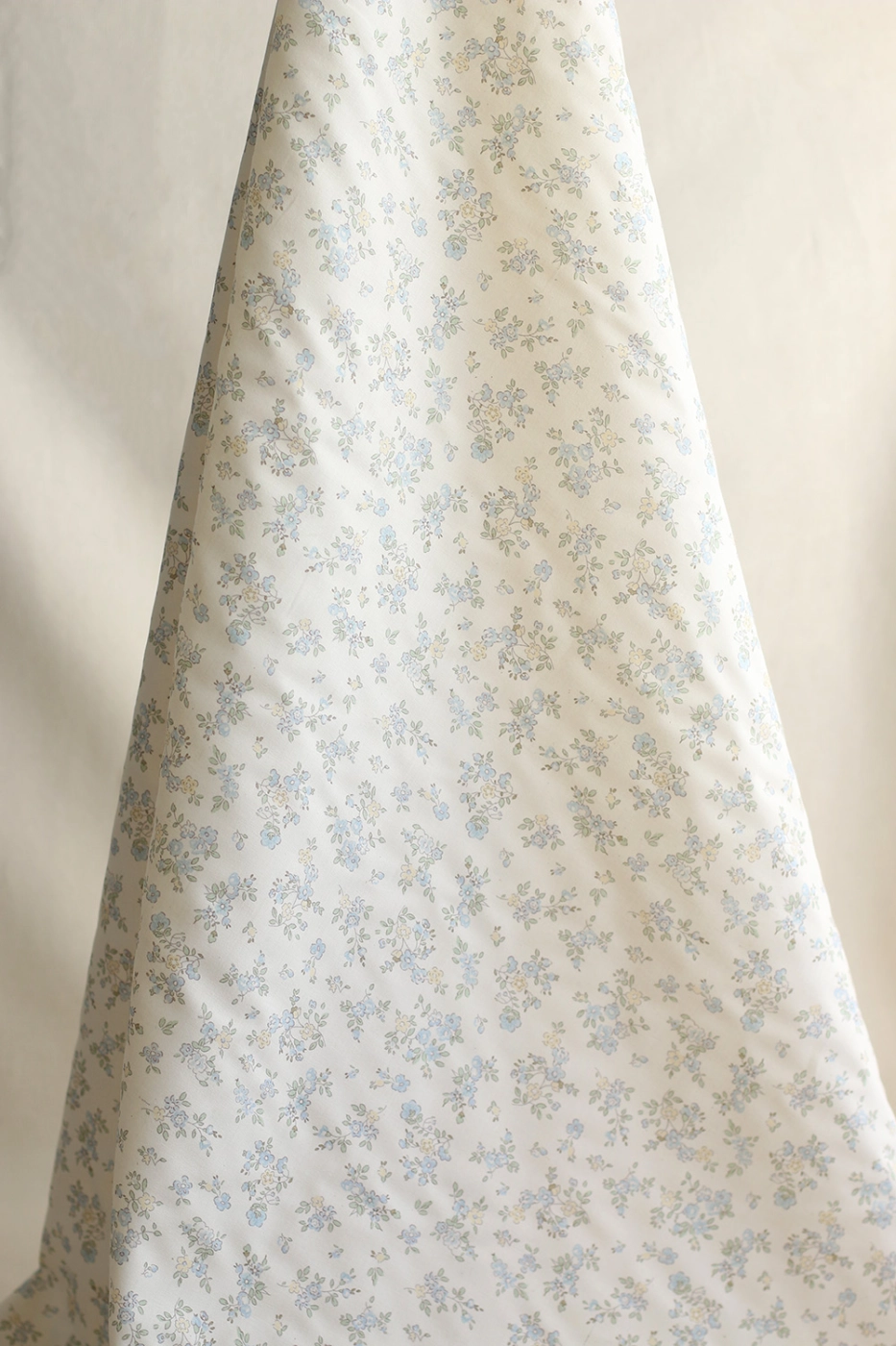 Scarlett - Popeline douce coton organique fond ivoire fleuri bleu