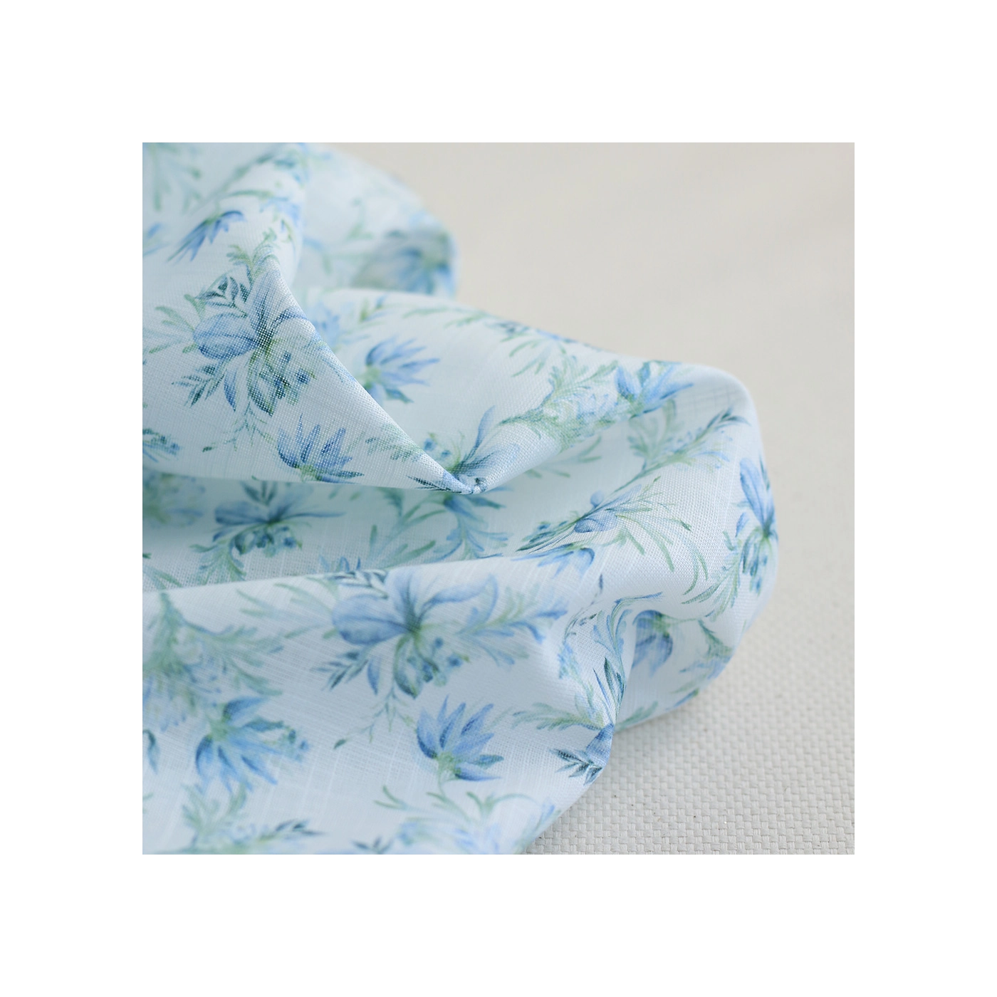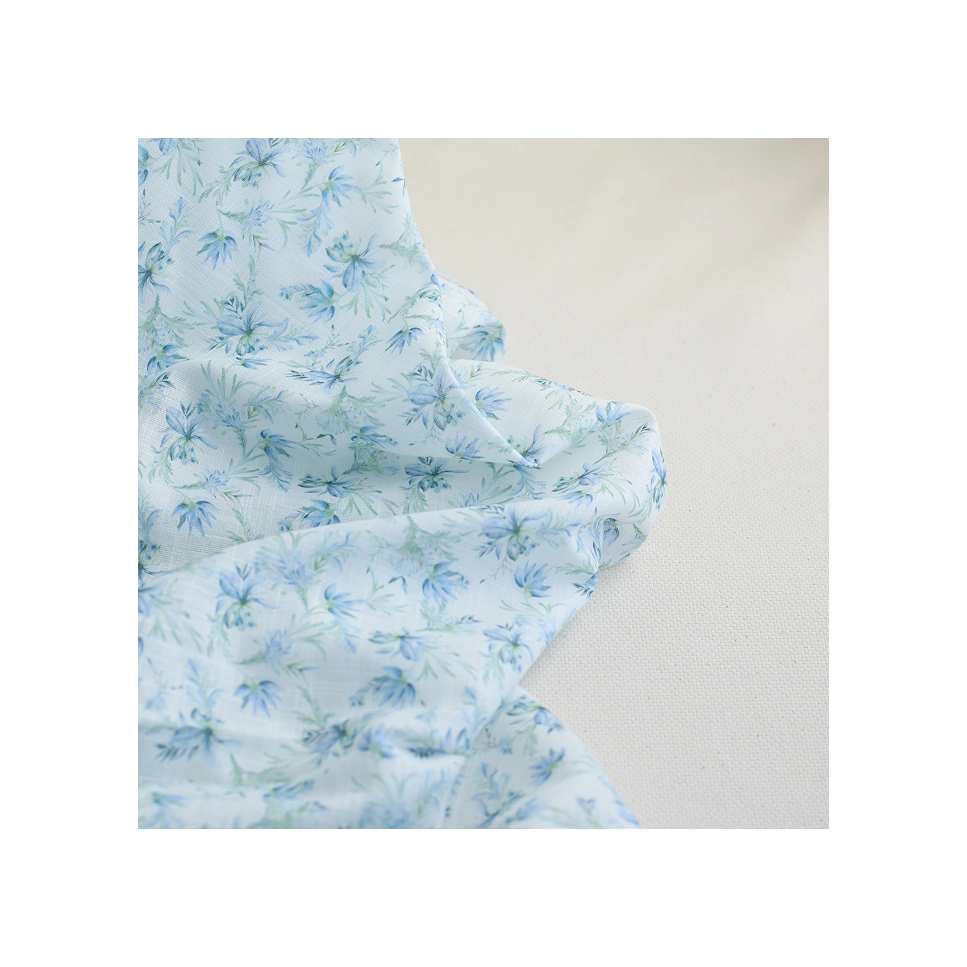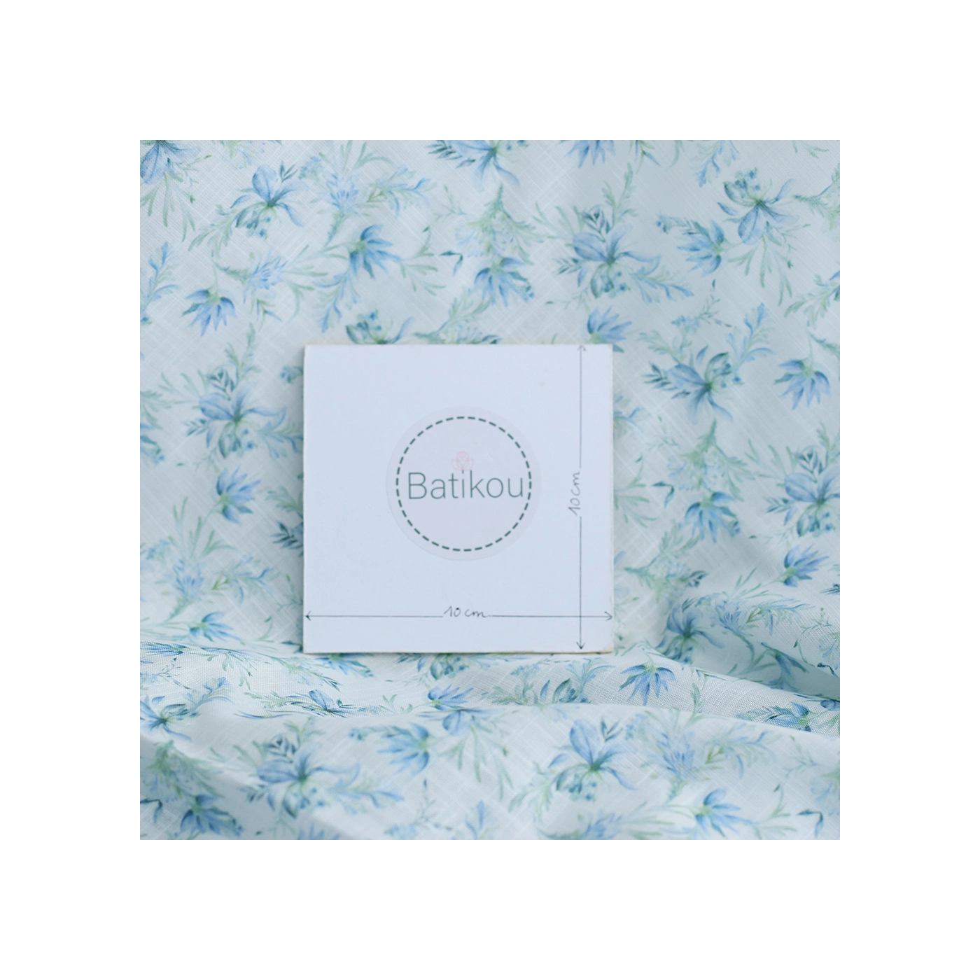 Pernille - Voile de coton texturé imprimé fleuri bleu