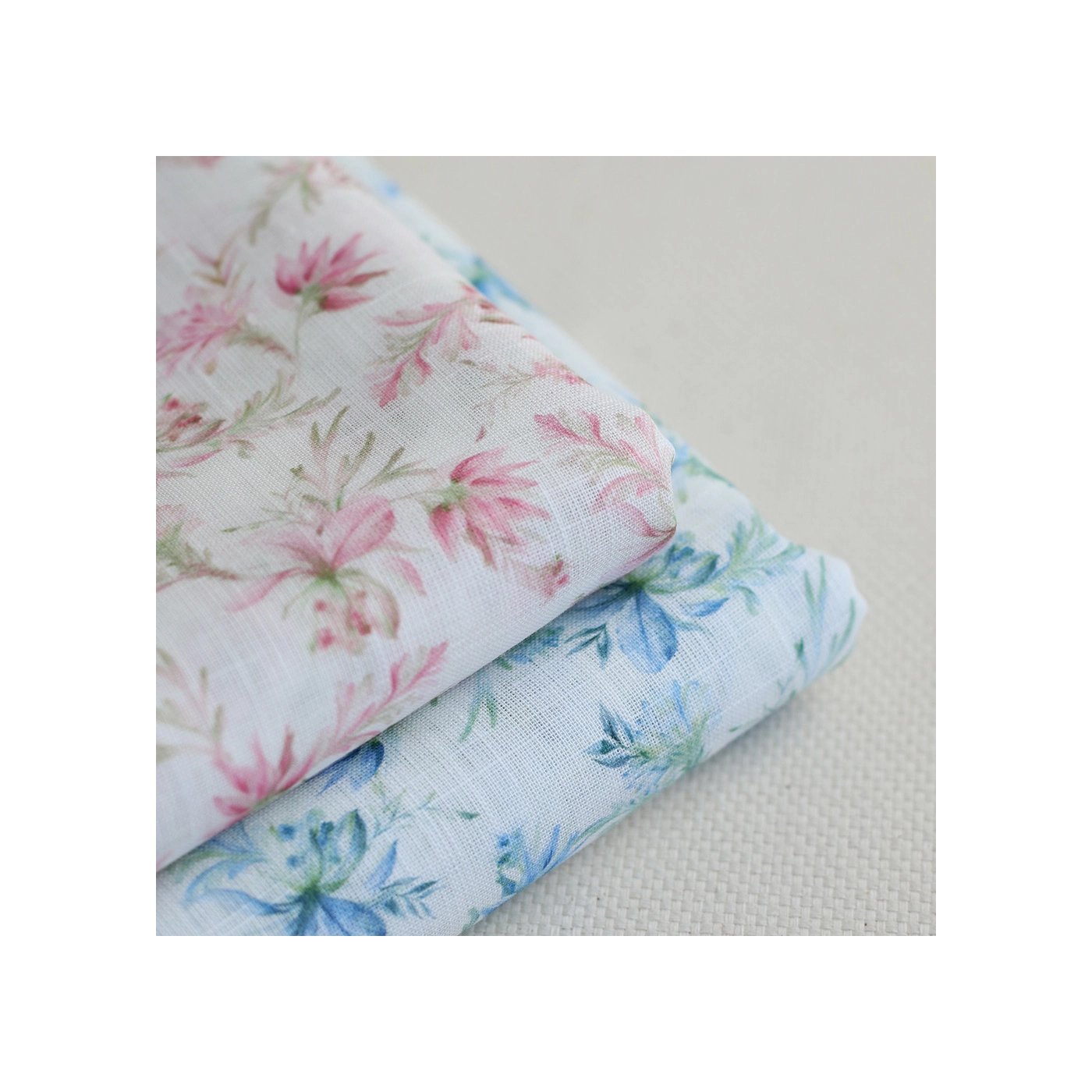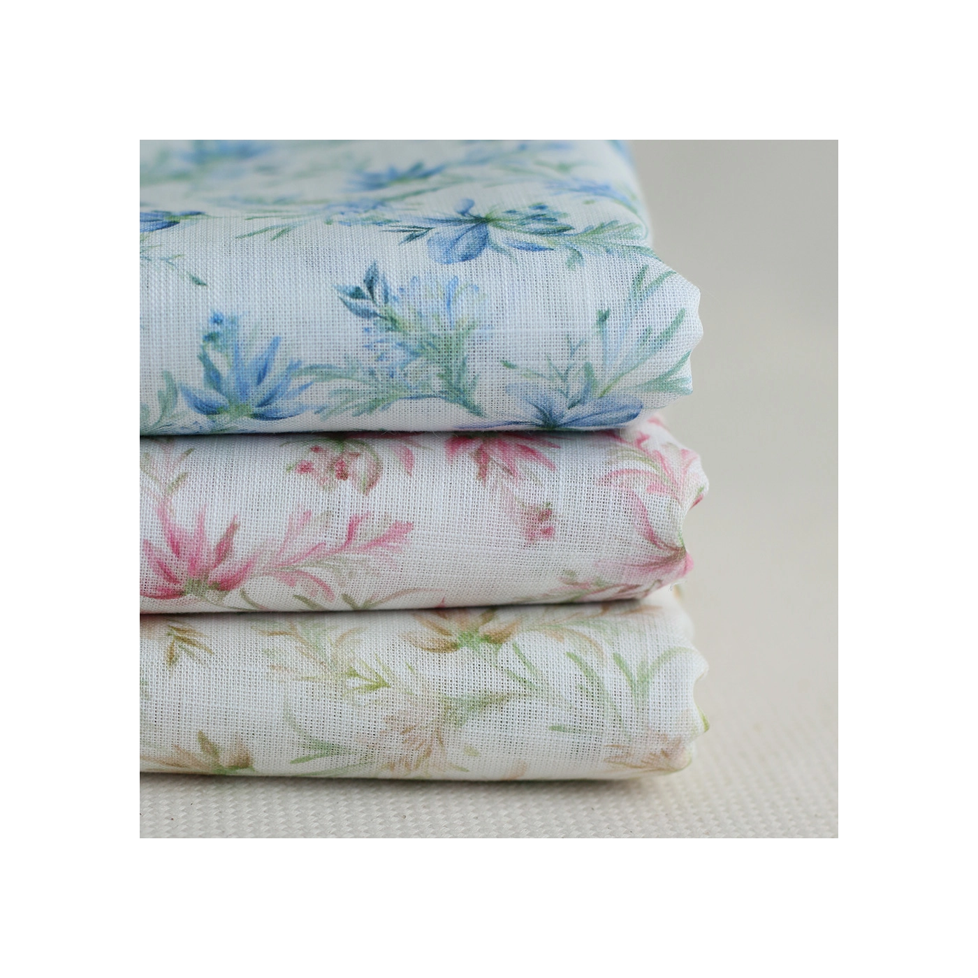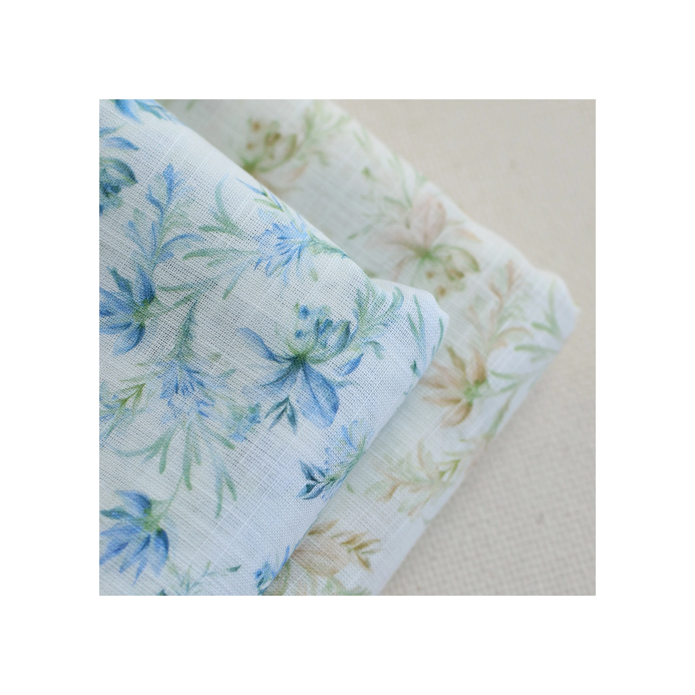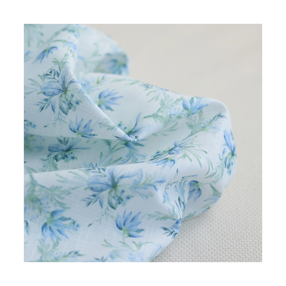 Pernille - Voile de coton texturé imprimé fleuri bleu