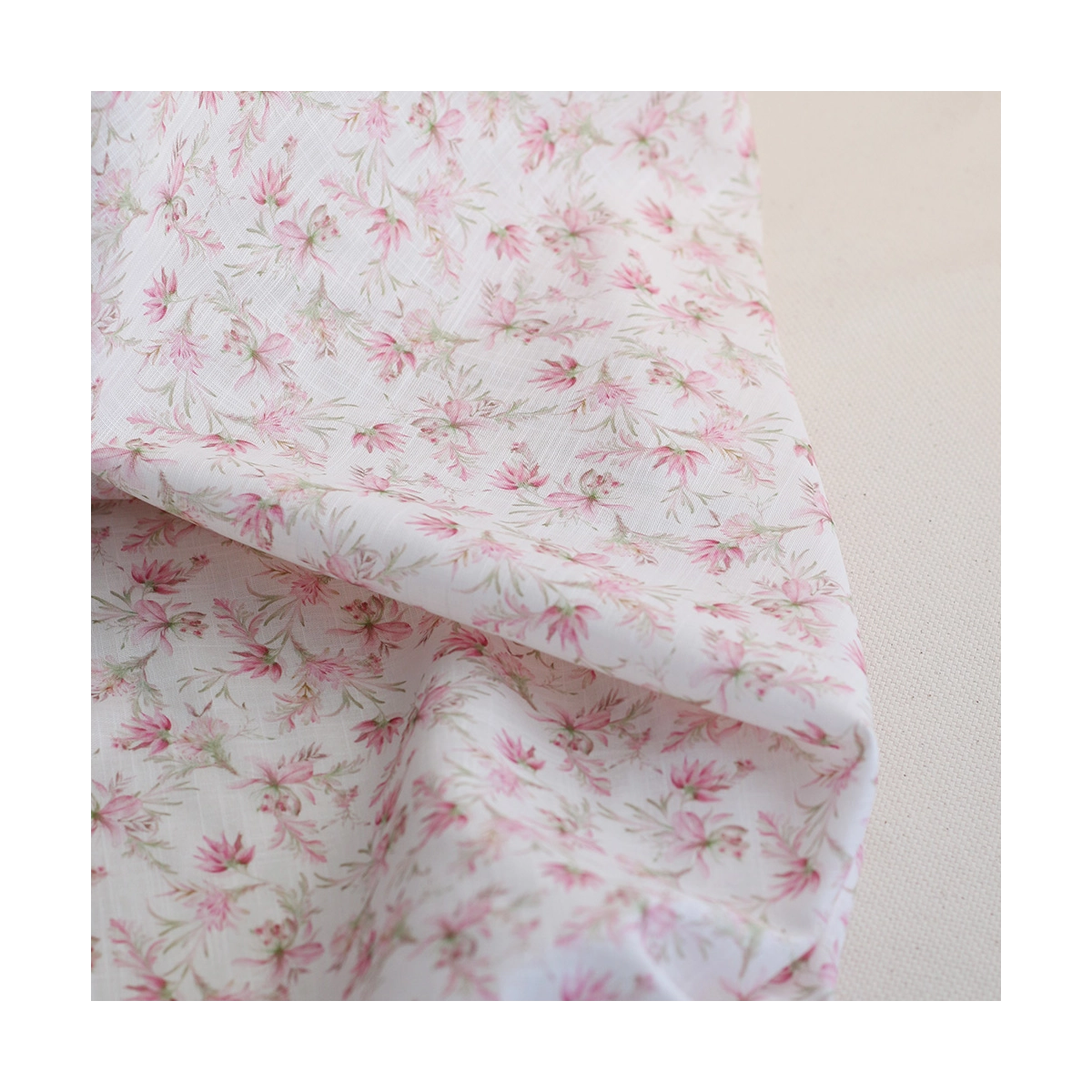 Pernille - Voile de coton texturé imprimé fleuri rose
