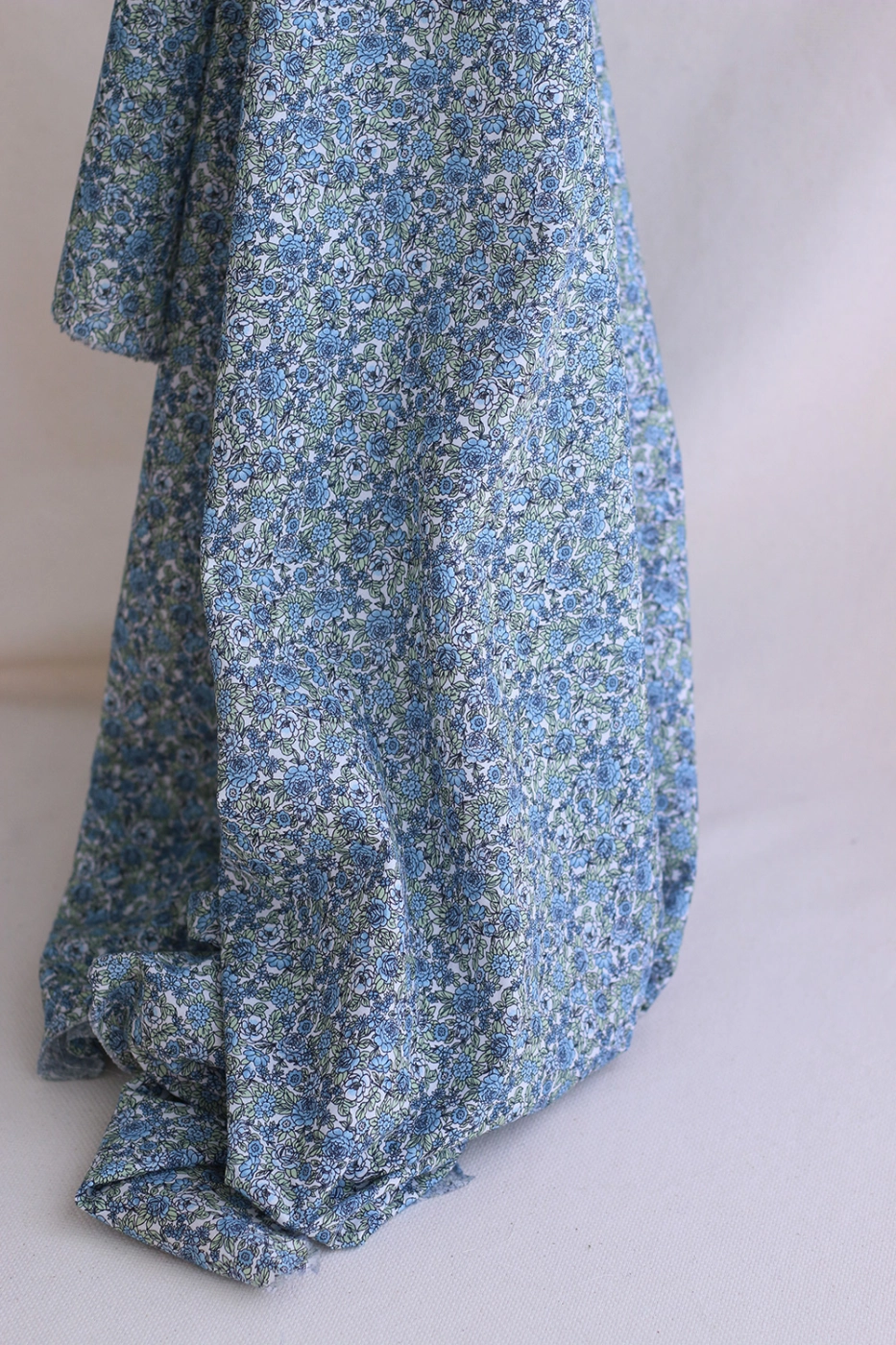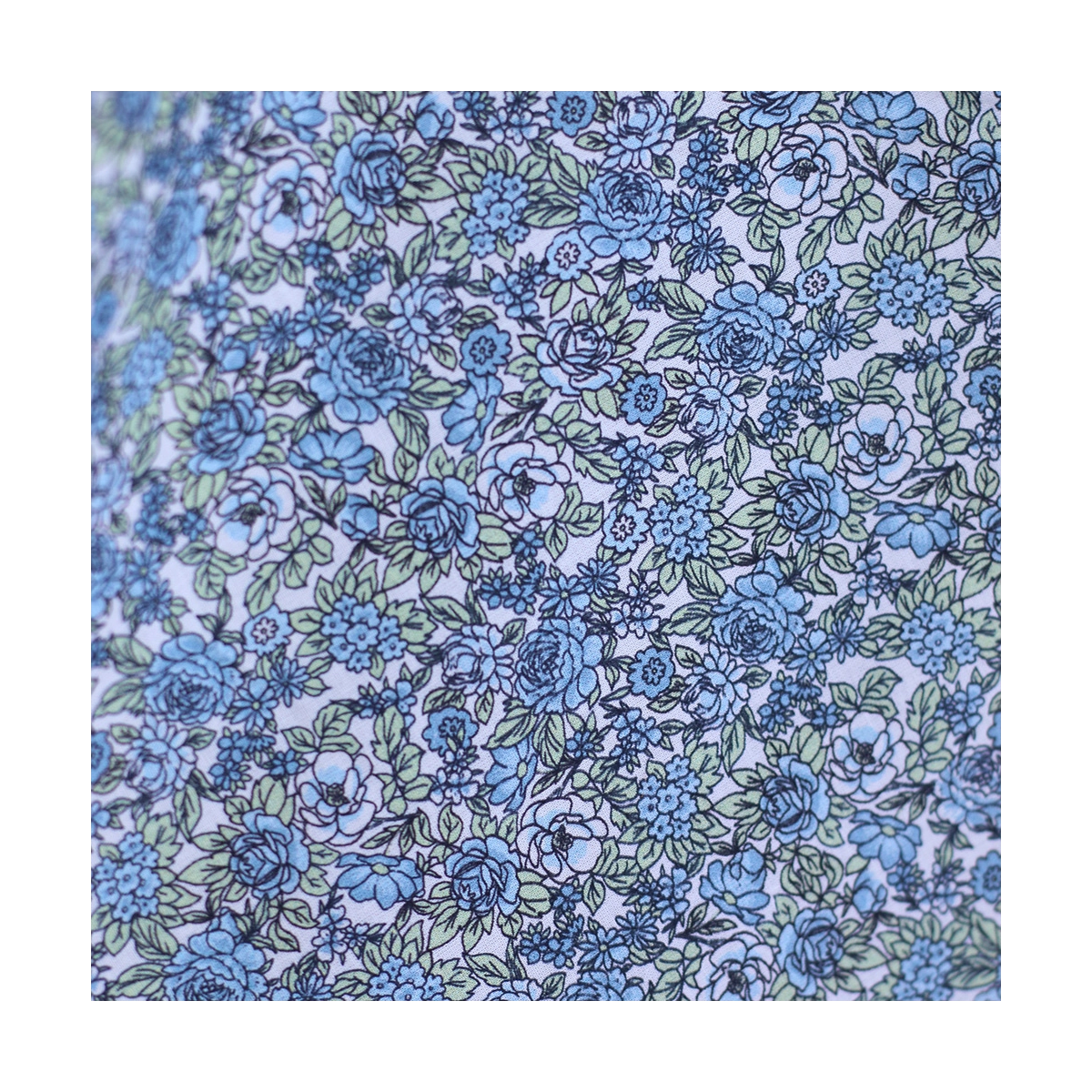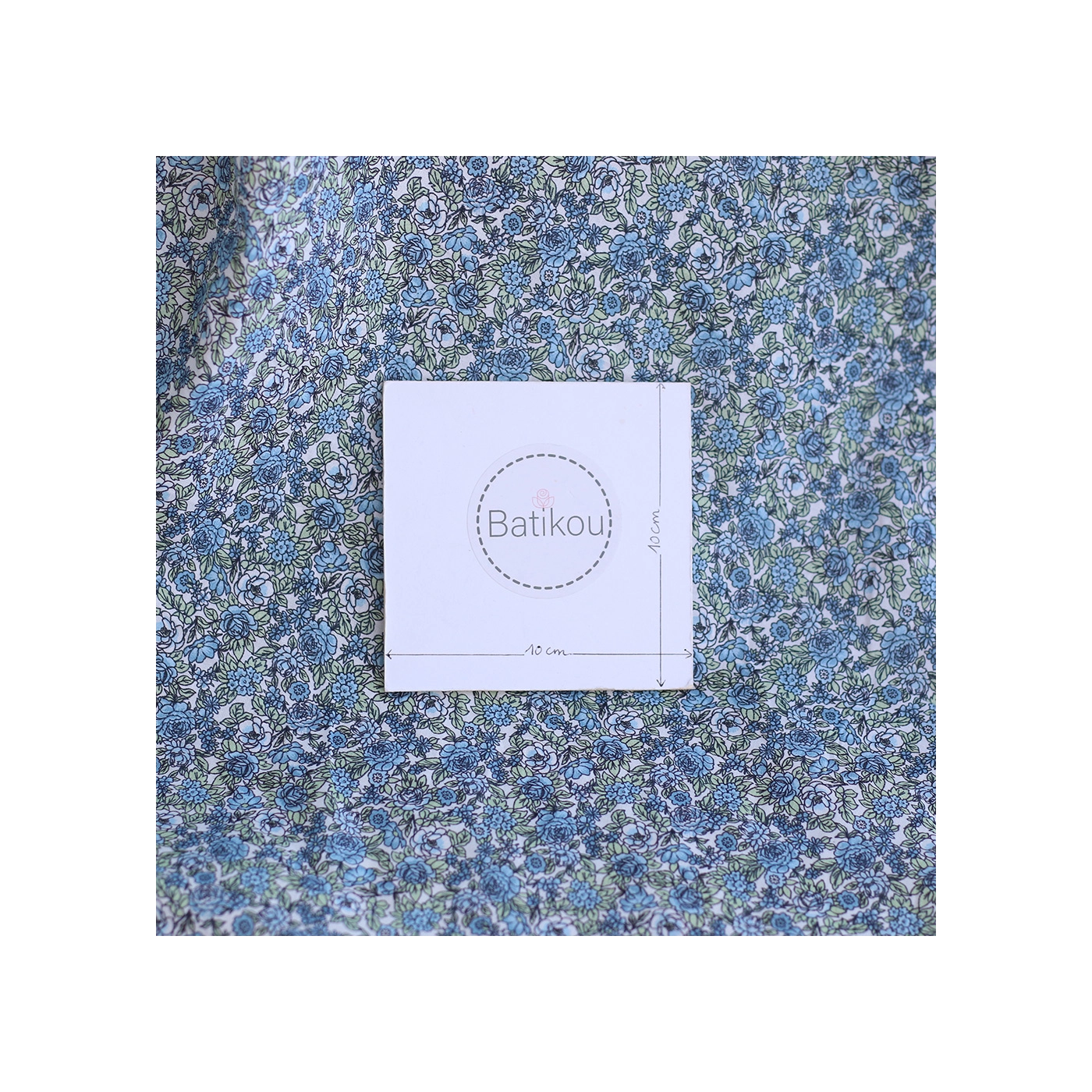 Batiste de coton BIO imprimé fleuri bleu et vert