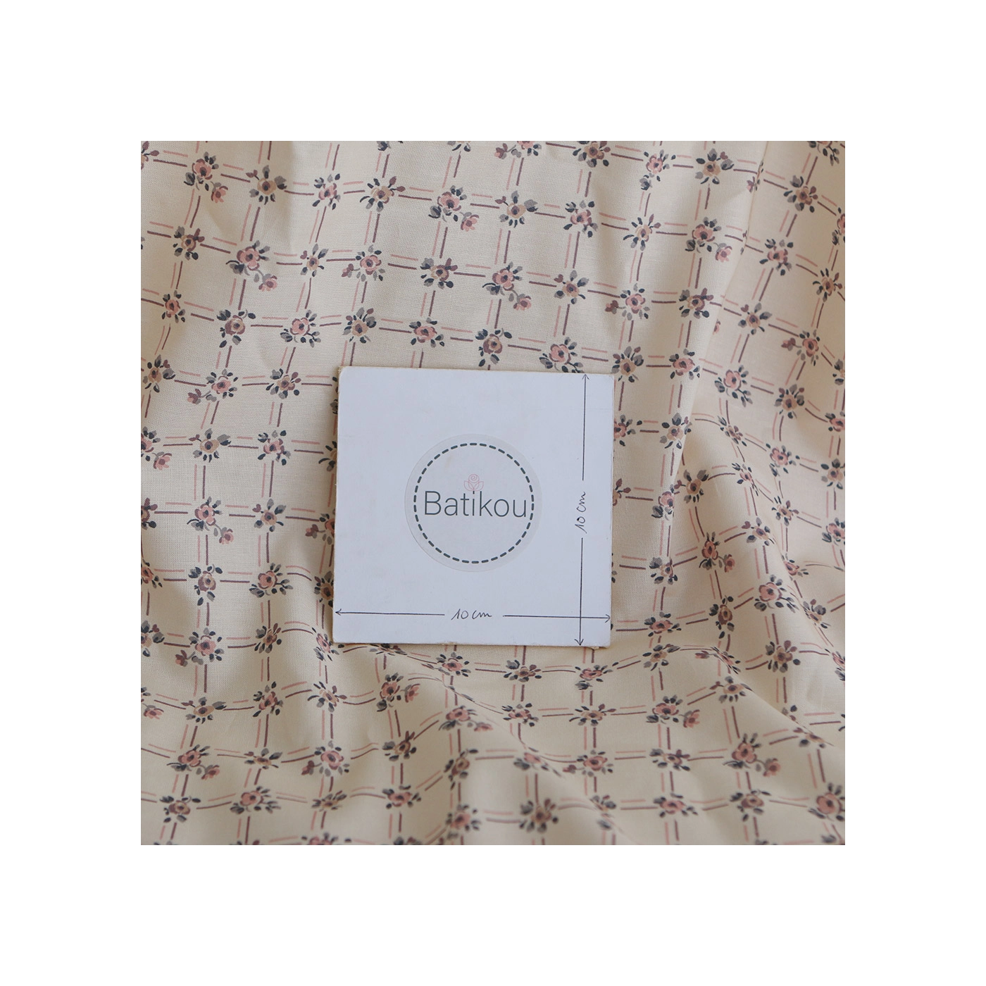 Ella - Popeline de coton douce qualité SWEET écru motif rose poudré