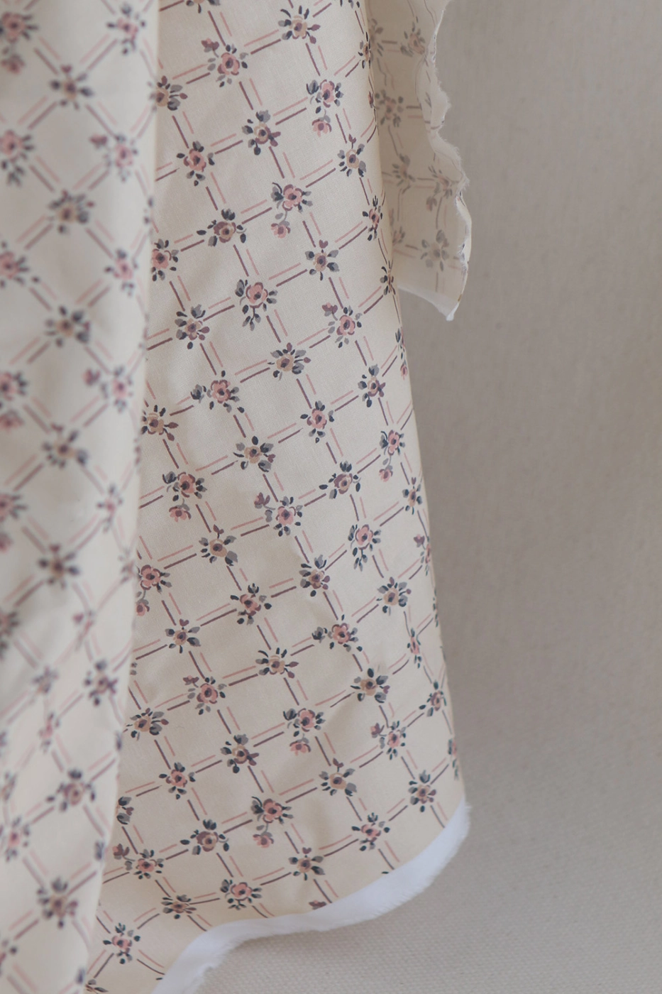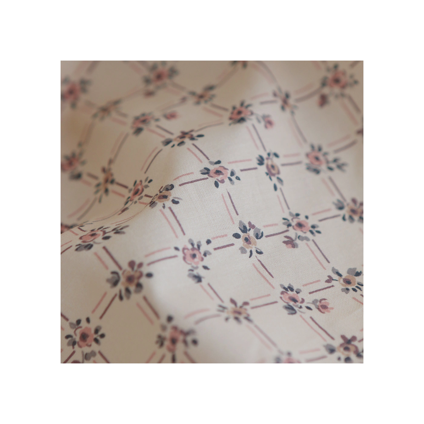 - Coloris fond écru, imprimé rose poudré