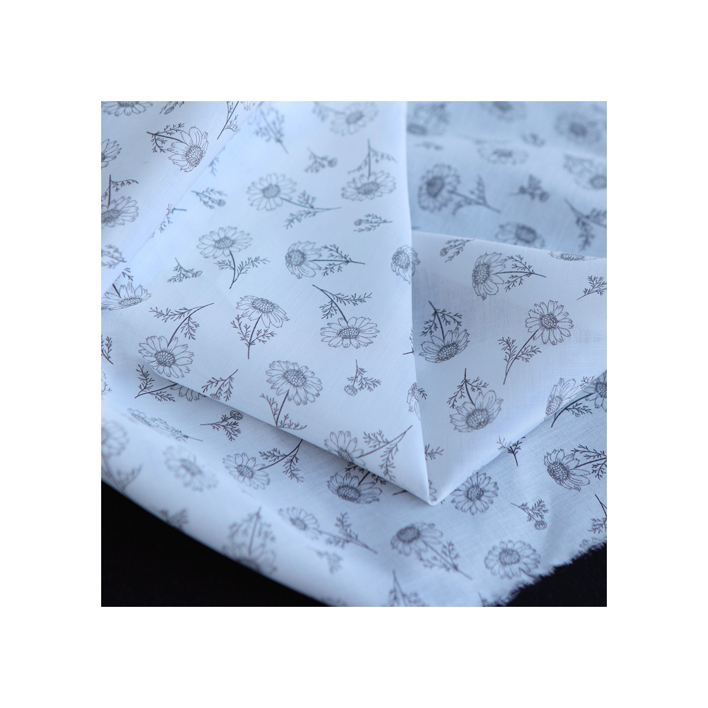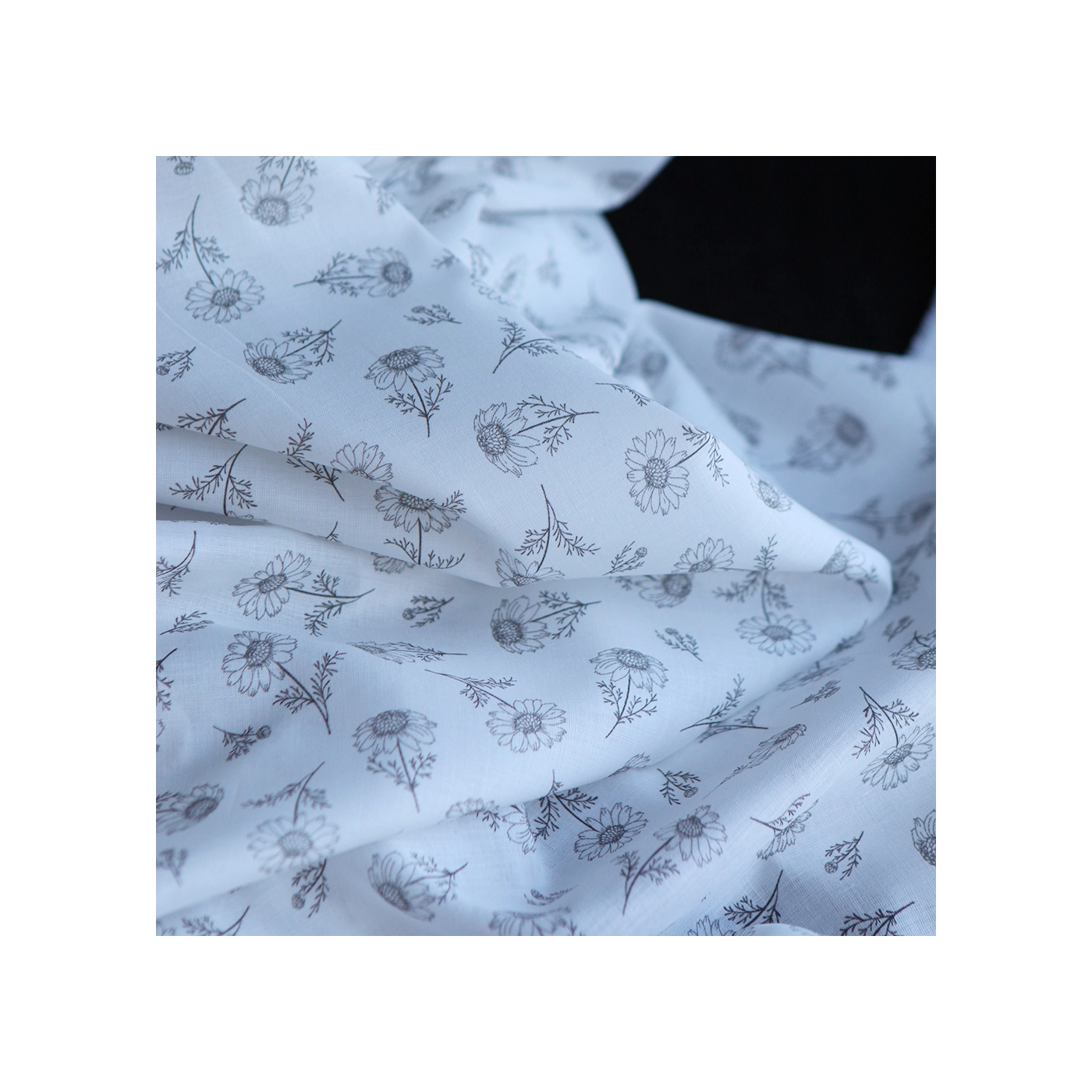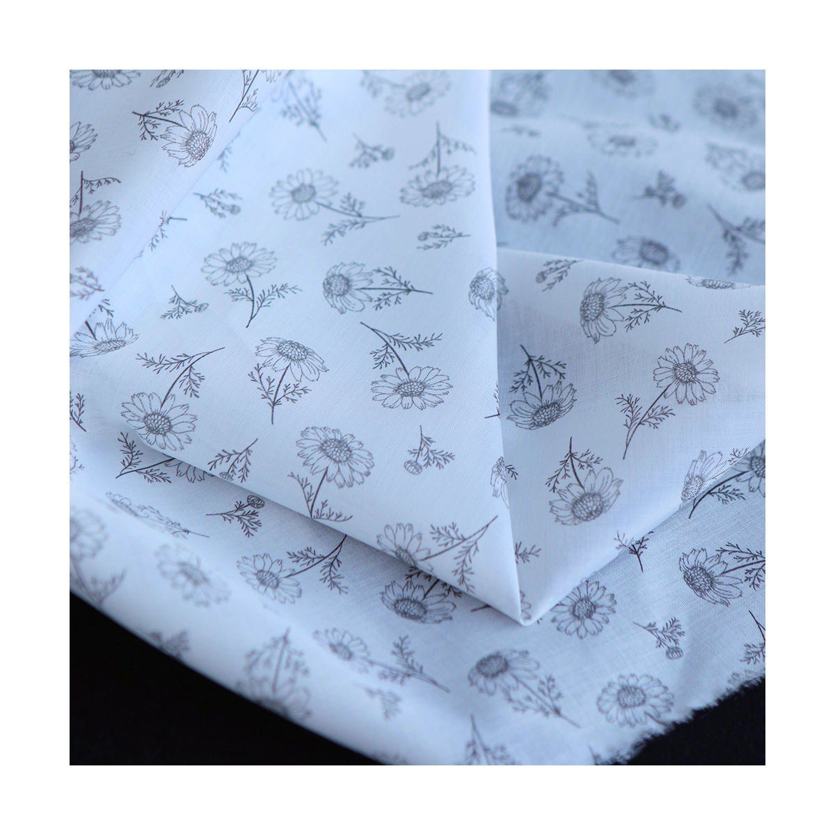 Maolia - Batiste de coton douce à imprimé camomille anthracite