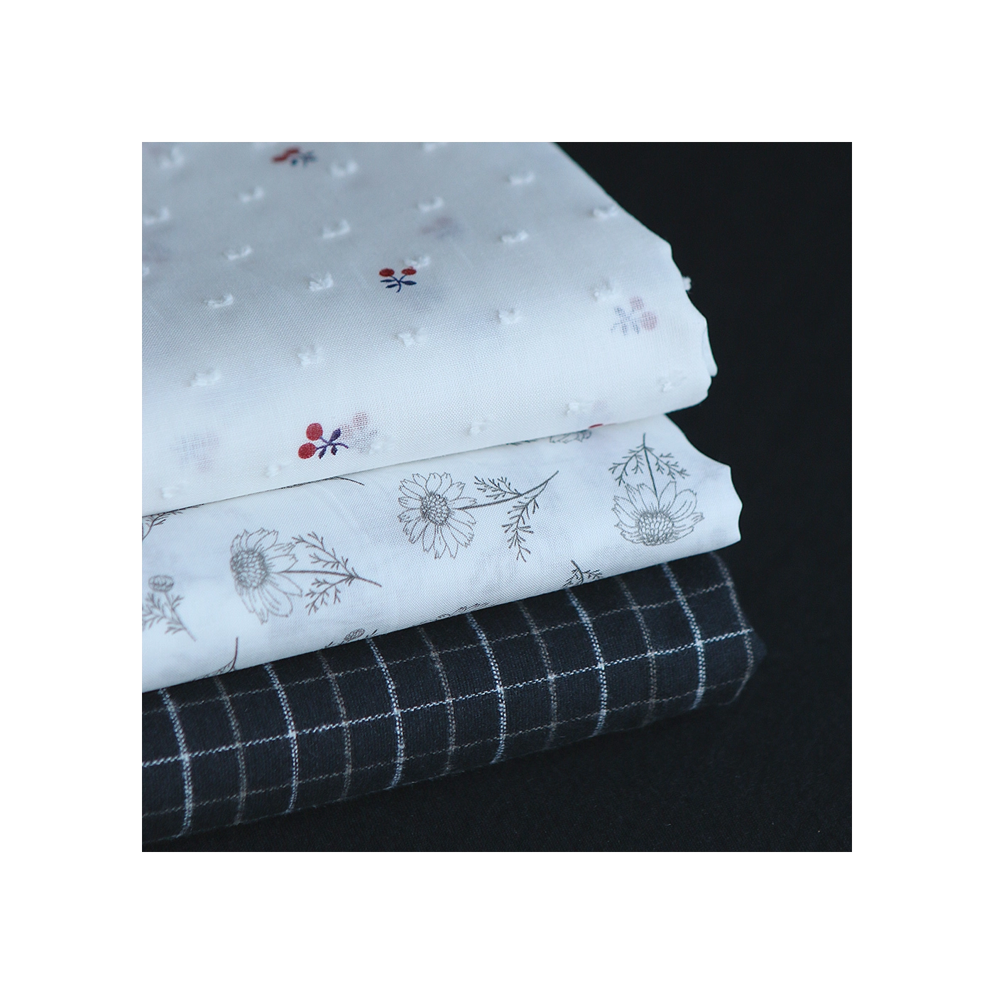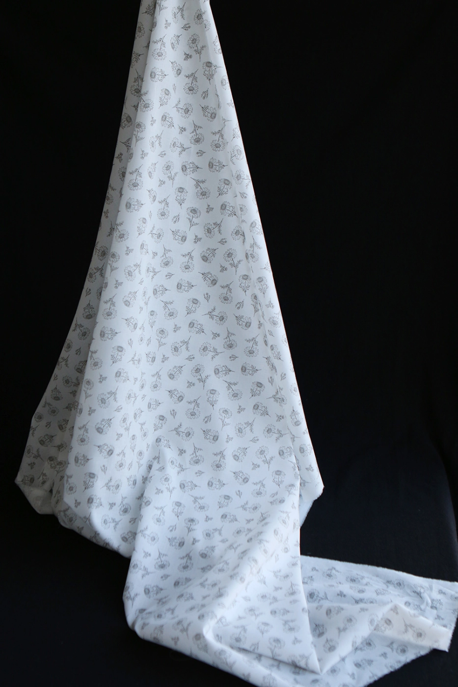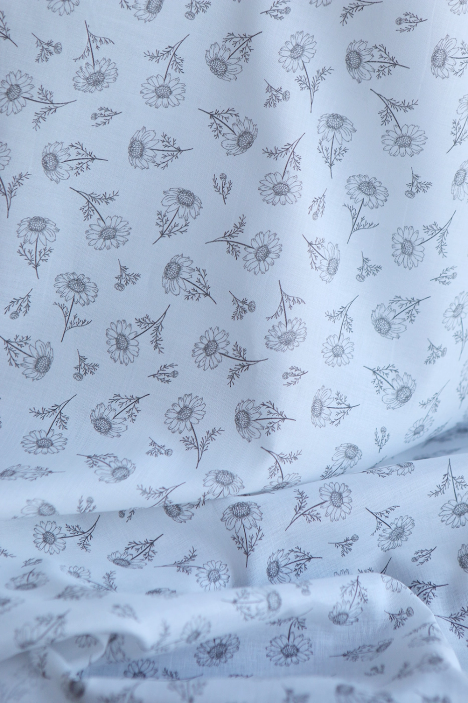 Maolia - Batiste de coton douce à imprimé camomille anthracite