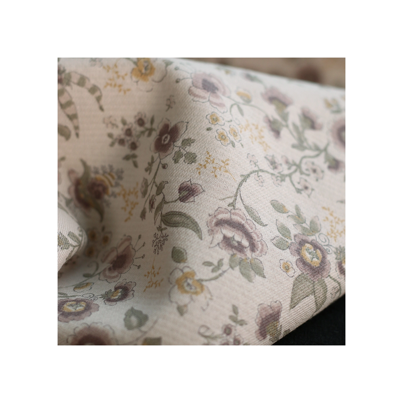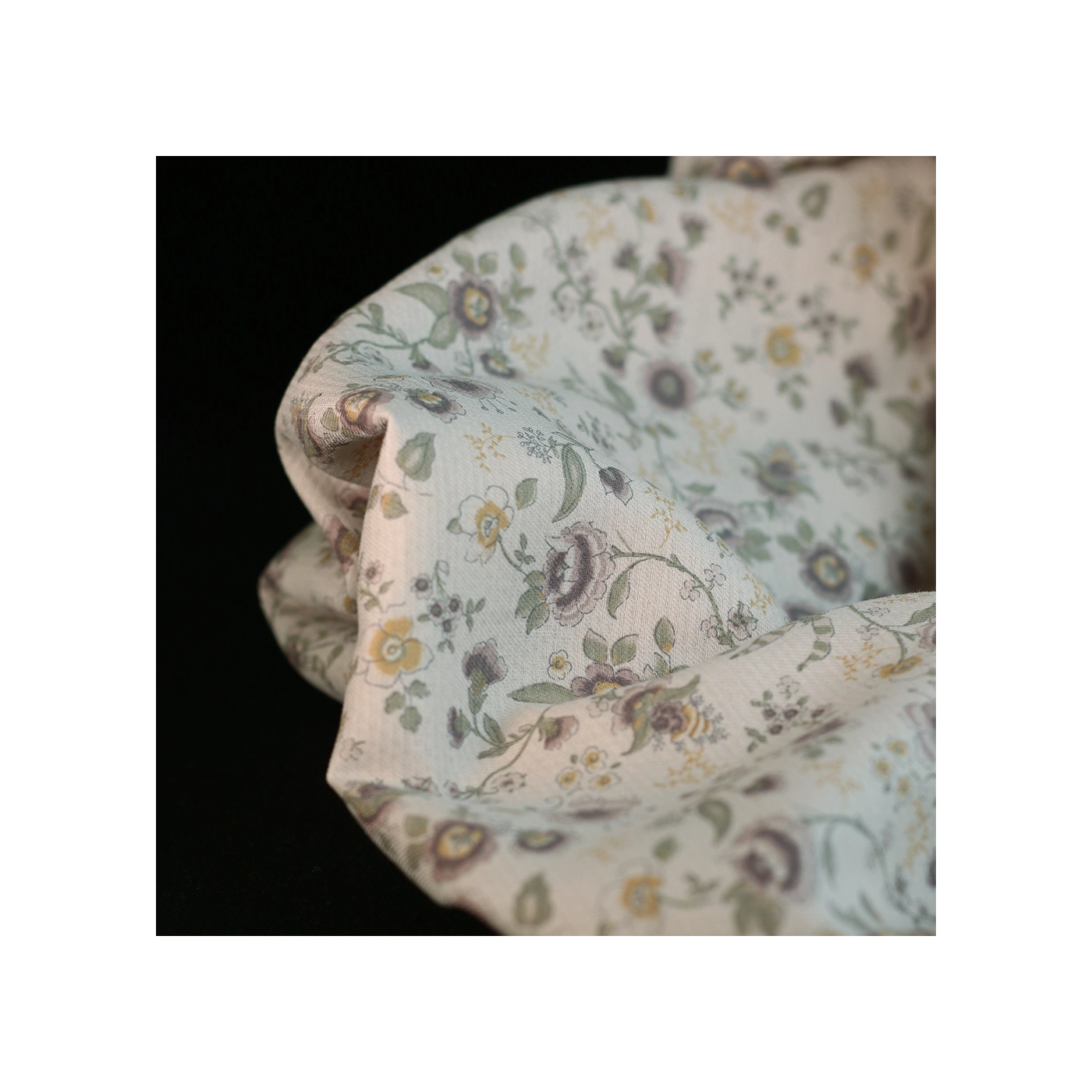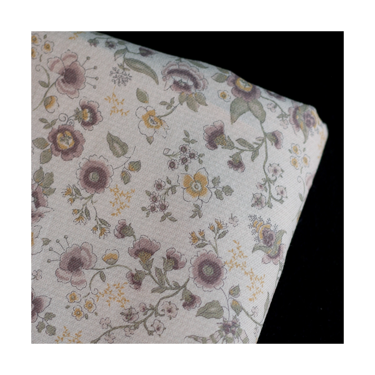 Tissus issus de l'agriculture biologiqueColoris: fond gris fleuri kaki, moutarde, violine