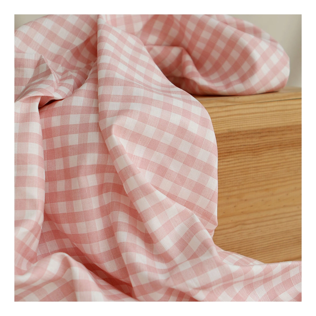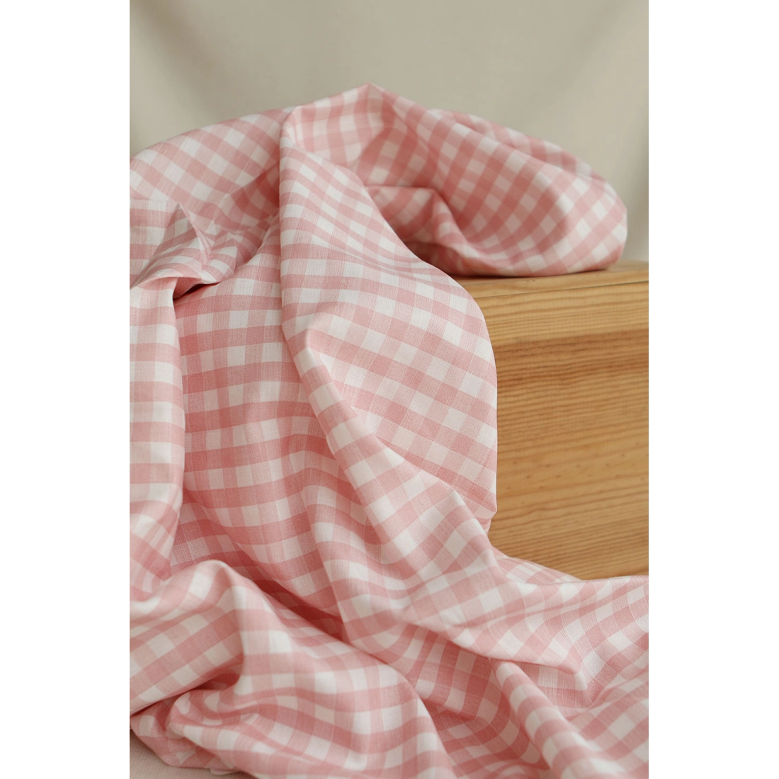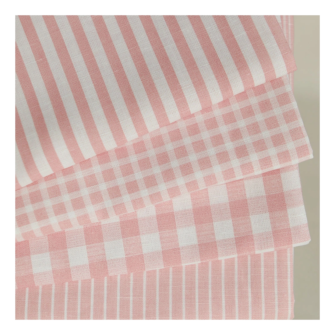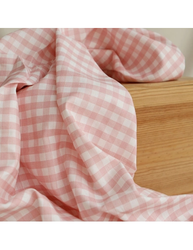 Victor - Tissu lin coton vichy 7mm blanc lait et rose blush