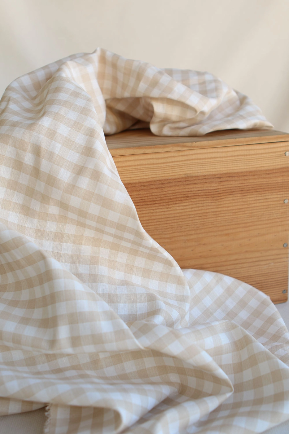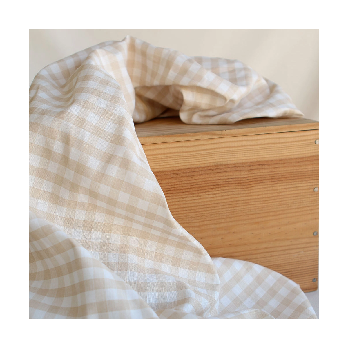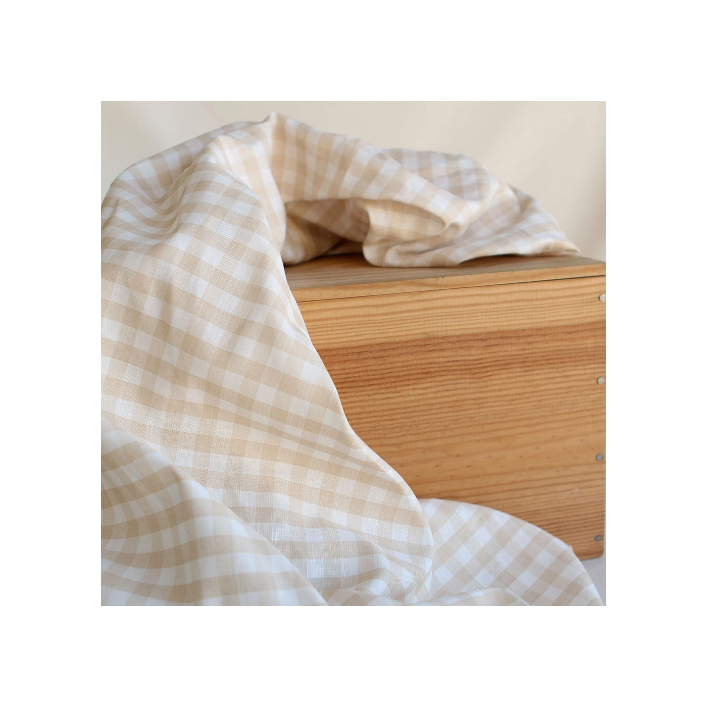 Victor - Tissu lin coton vichy 7mm blanc lait et beige