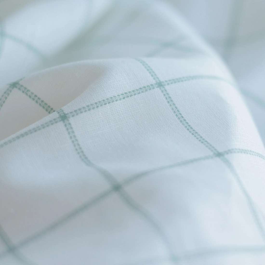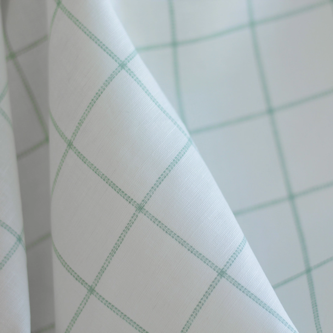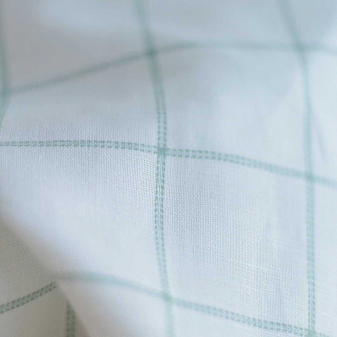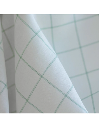 Zephyr - Tissu lin coton fond blanc lait quadrillage vert celadon