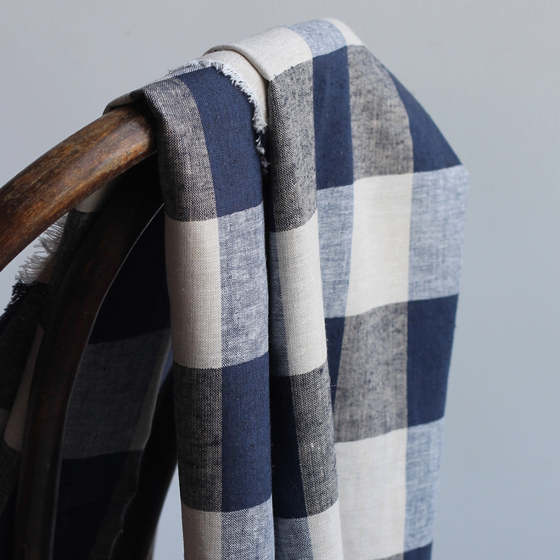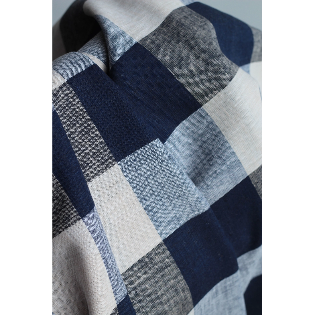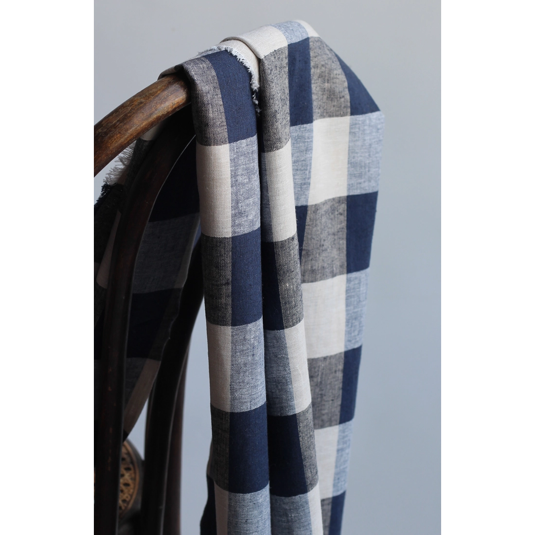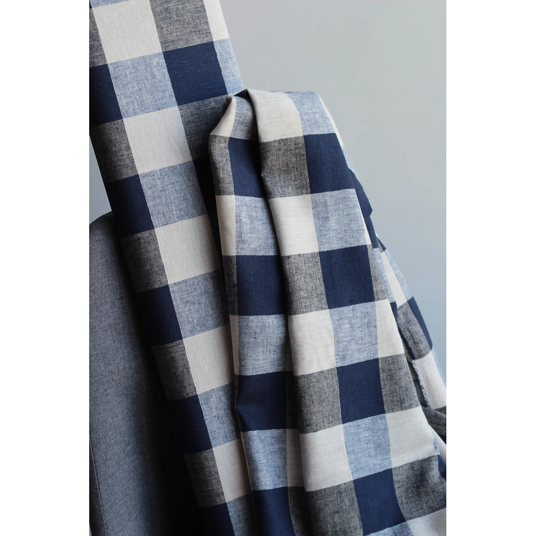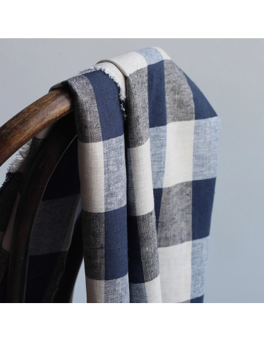 Tissu lin viscose grand vichy bleu marine et écru