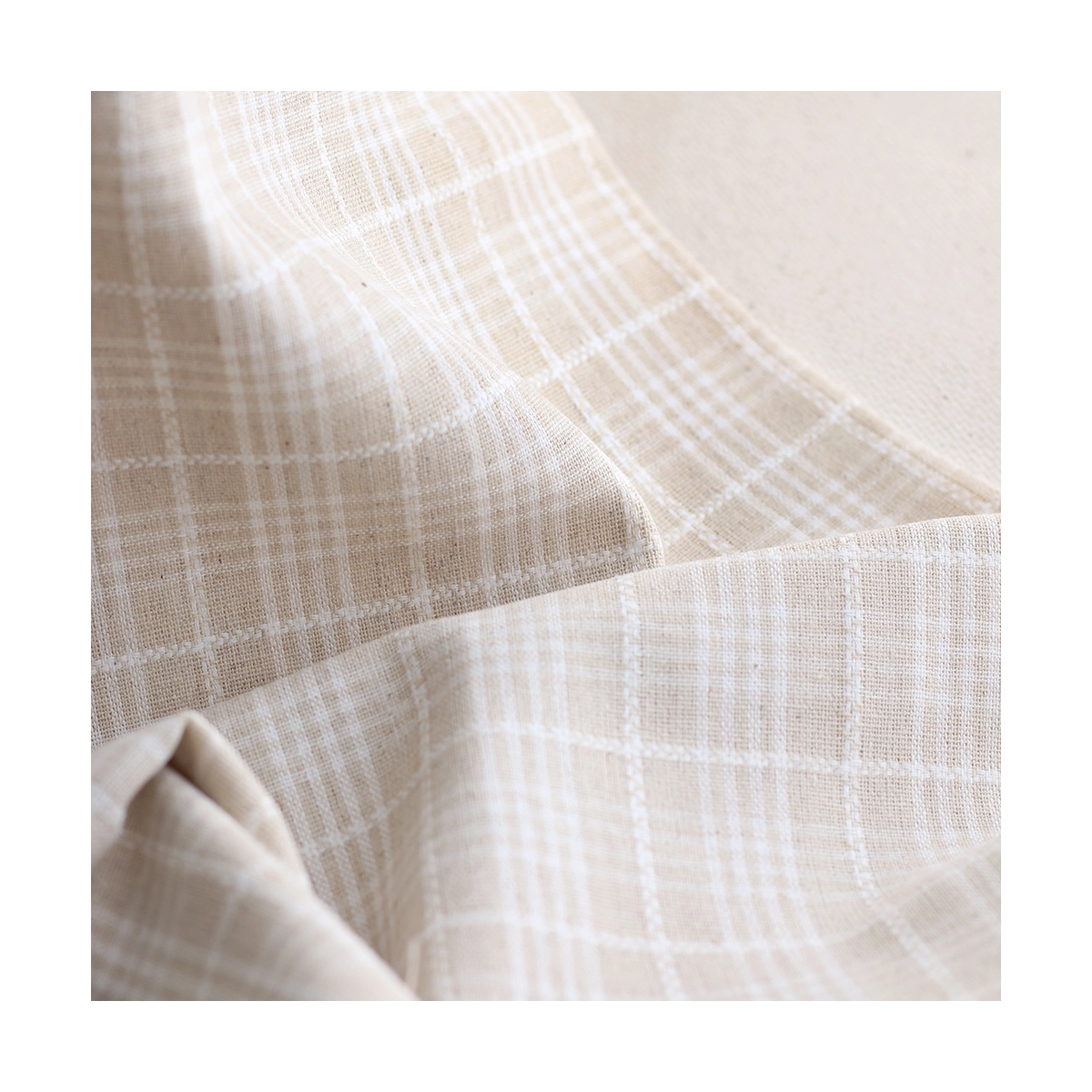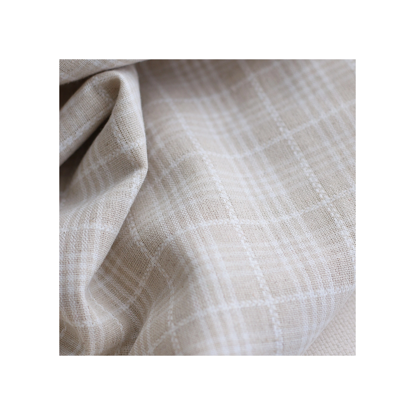 Tissu Lin et viscose texturé quadrillage écru et blanc
