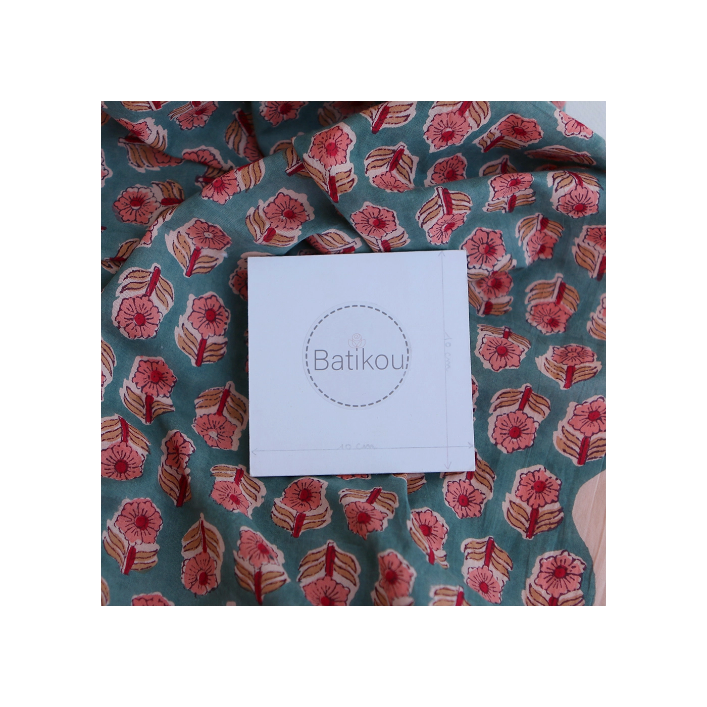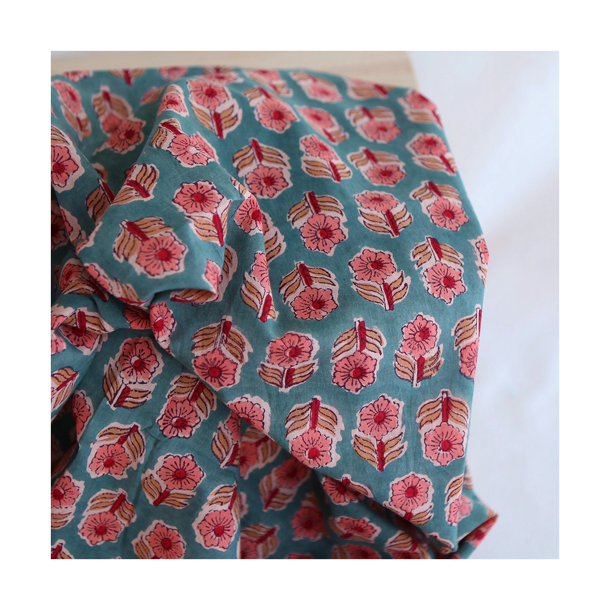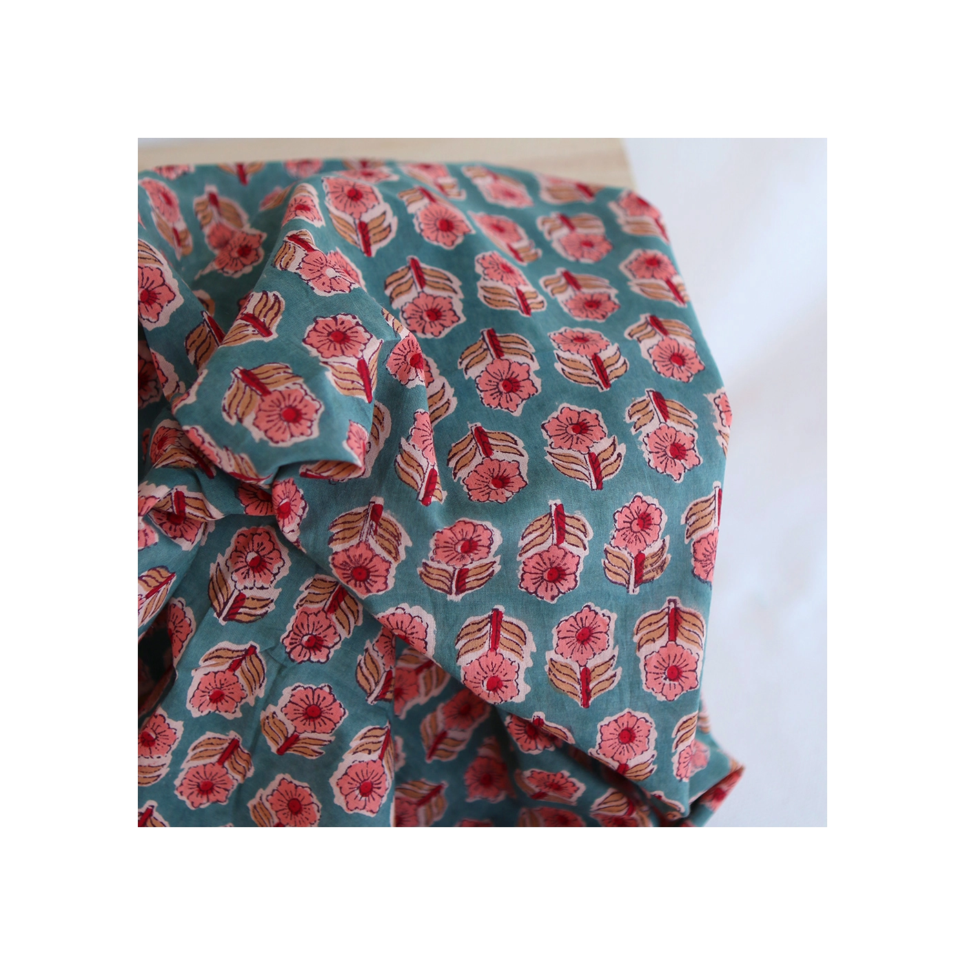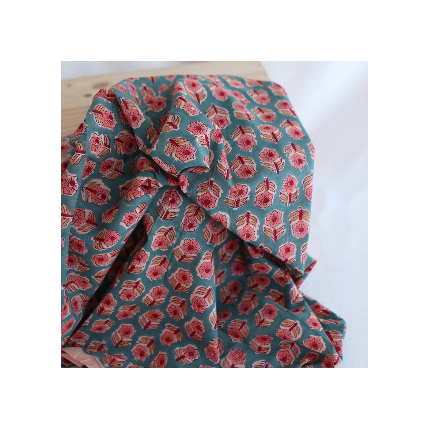 Sahar B - Tissu indien coton hand block traditionnel Teal