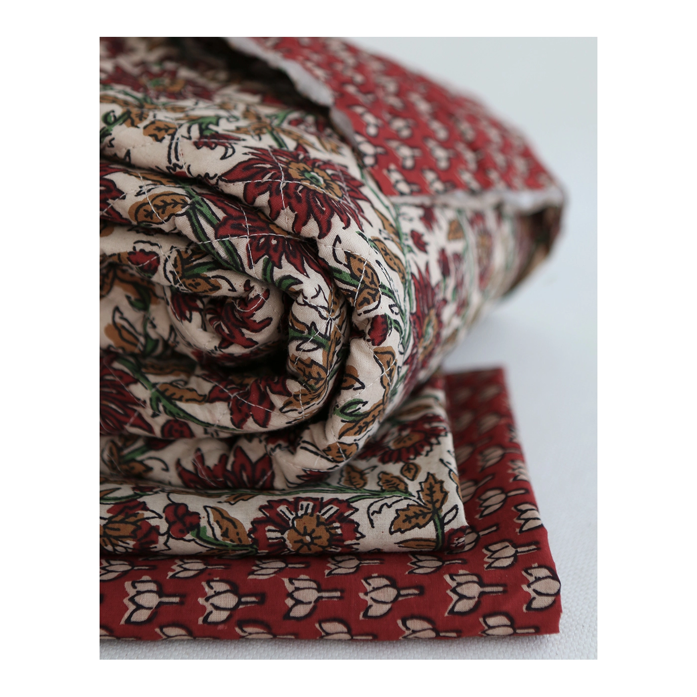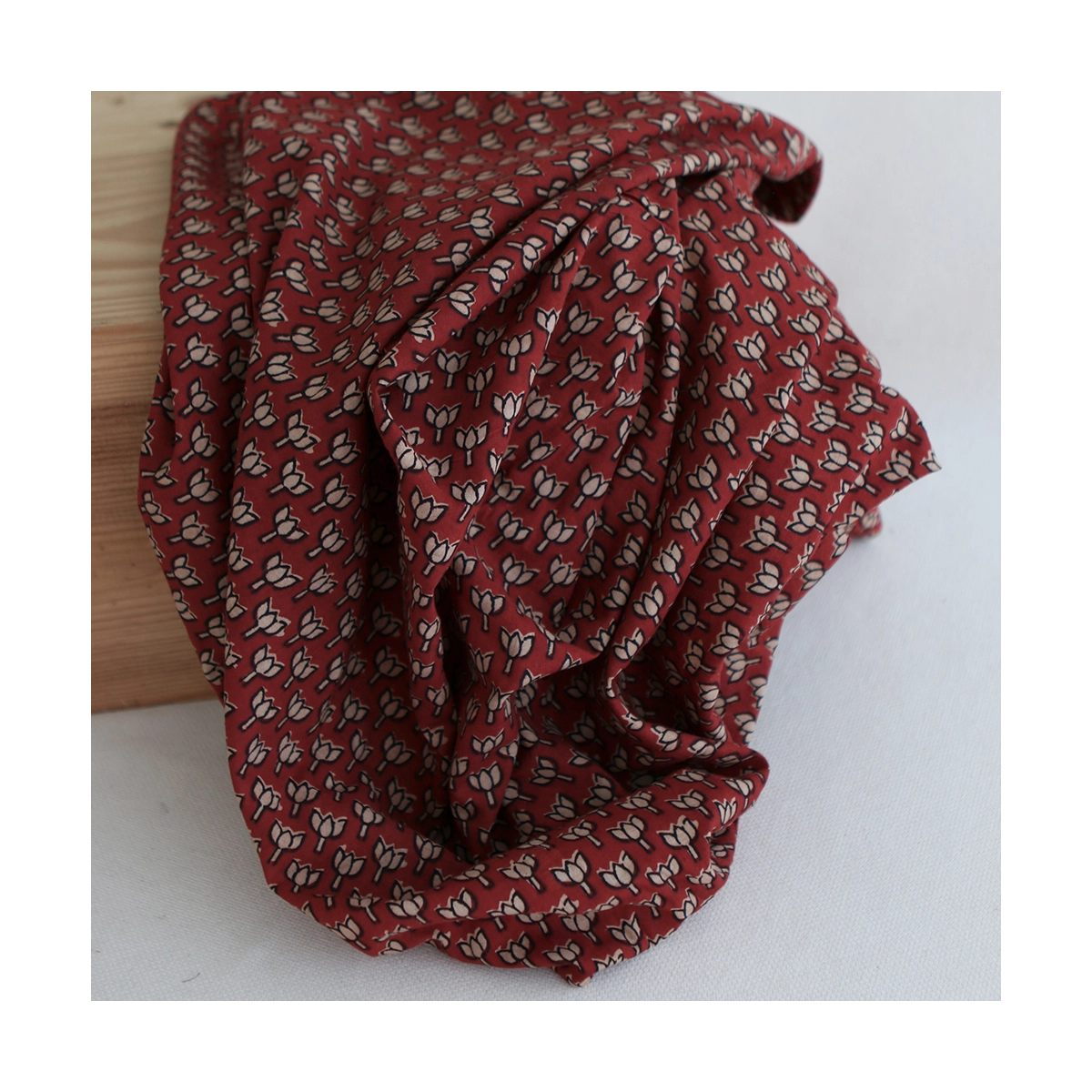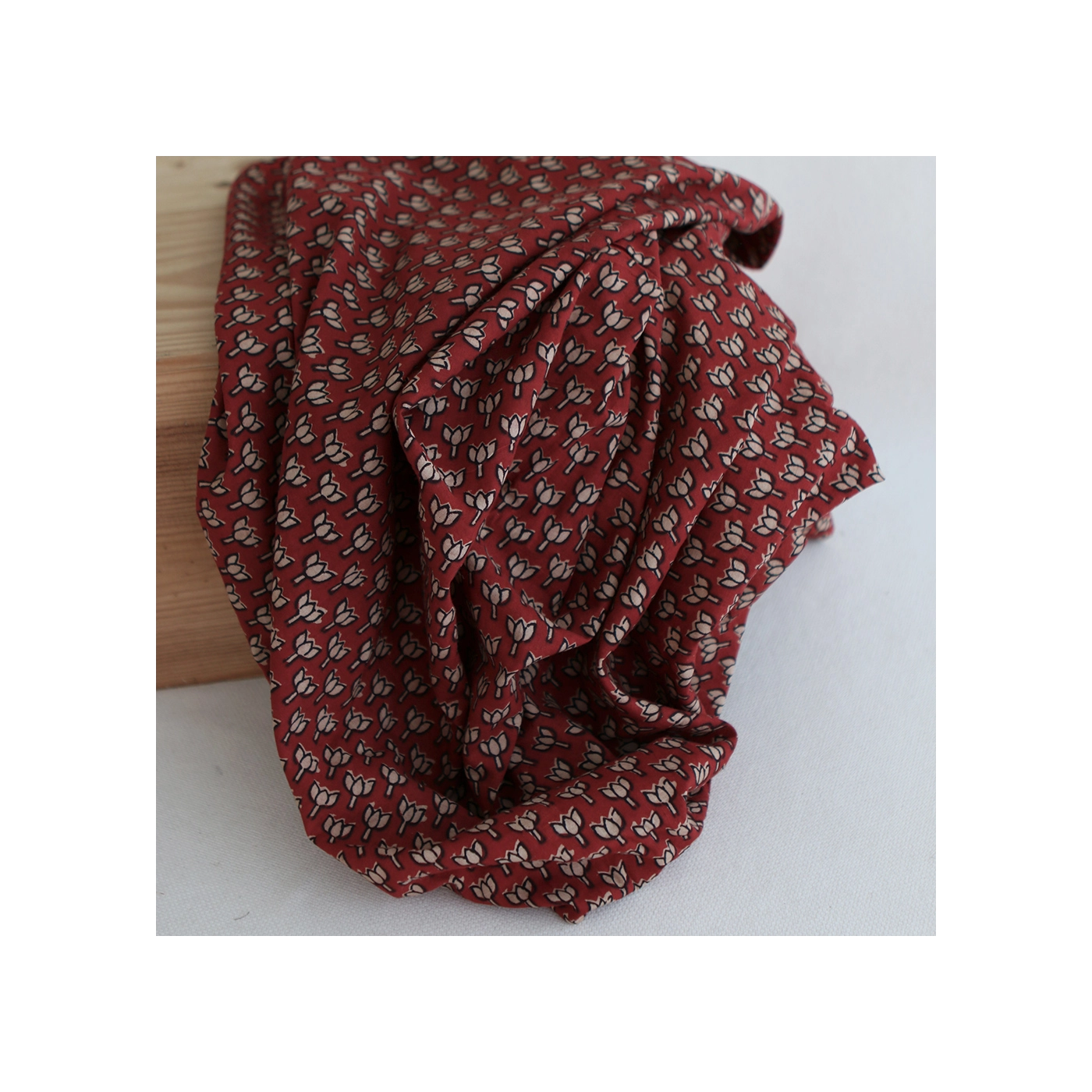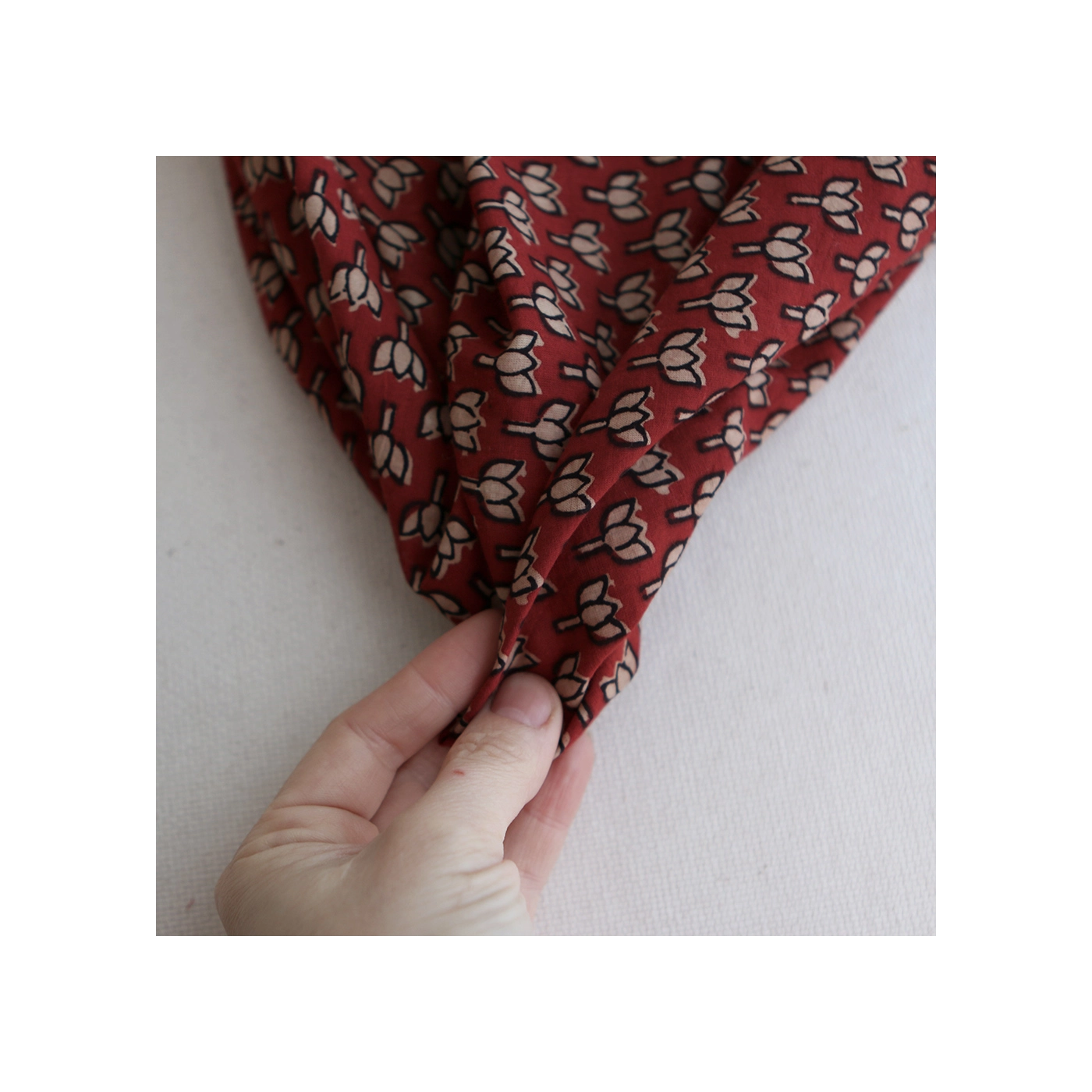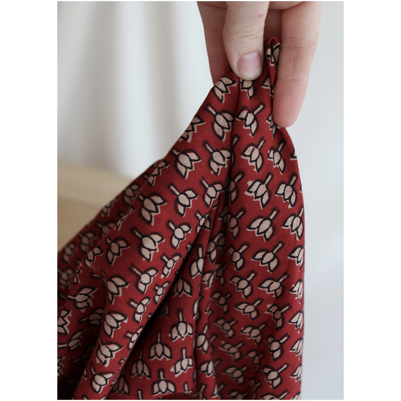 A noter que le processus artisanal (impression à la main, au tampon en bois) de ce tissu fait que chaque pièce est unique et que l'impression n'est pas aussi parfaite qu'un processus industriel.