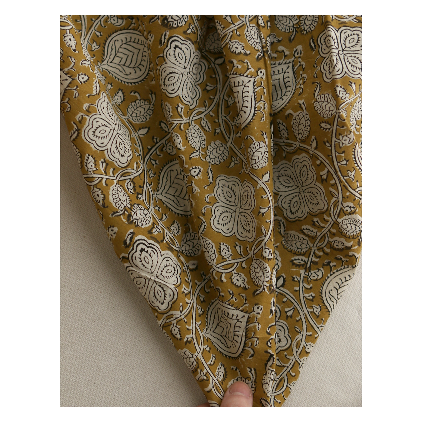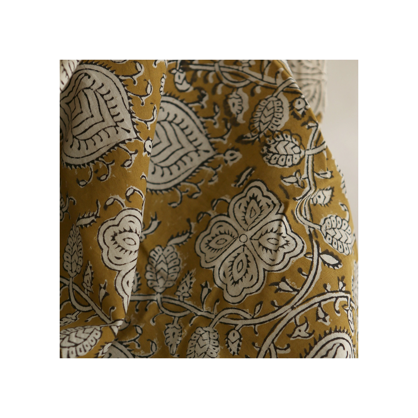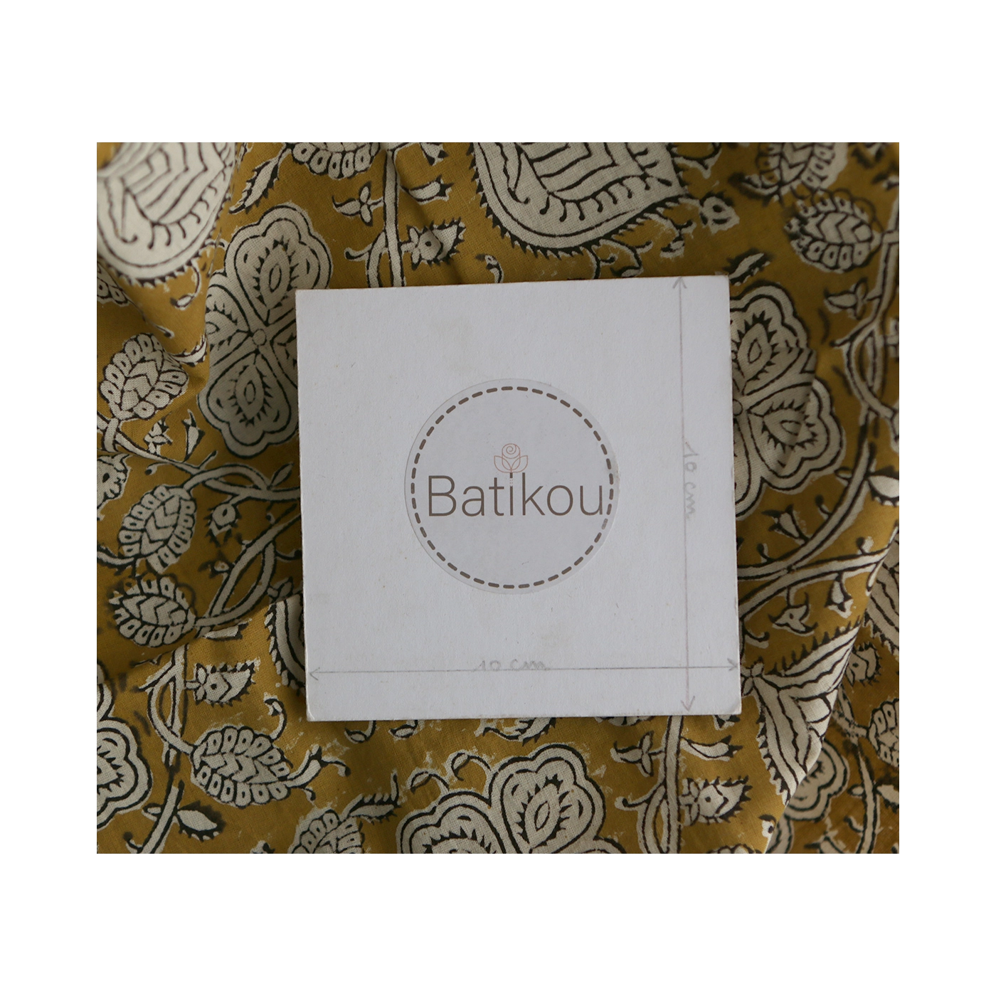 A noter que le processus artisanal (impression à la main, au tampon en bois) de ce tissu fait que chaque pièce est unique et que l'impression n'est pas aussi parfaite qu'un processus industriel.