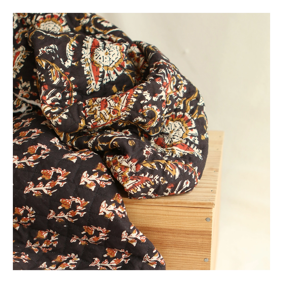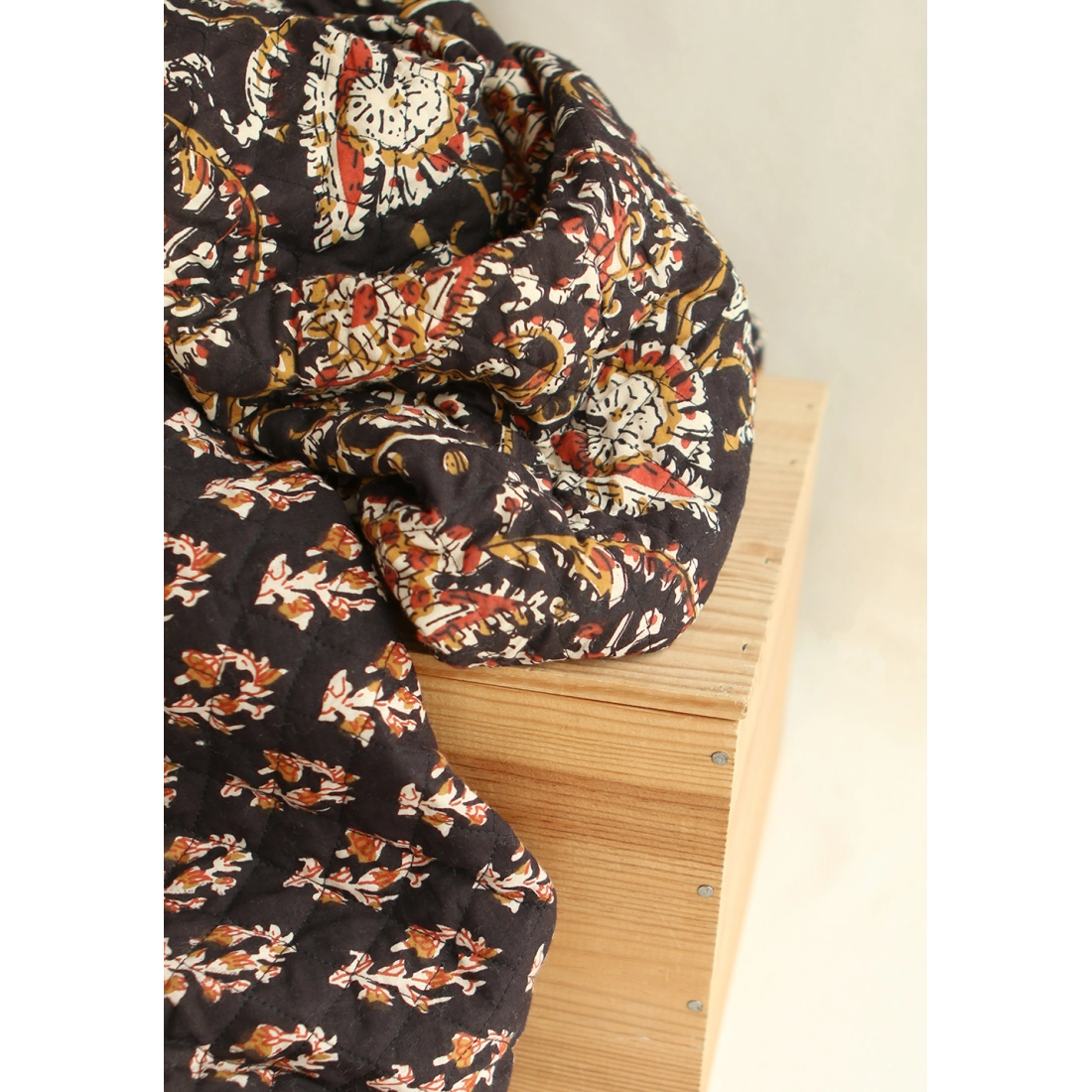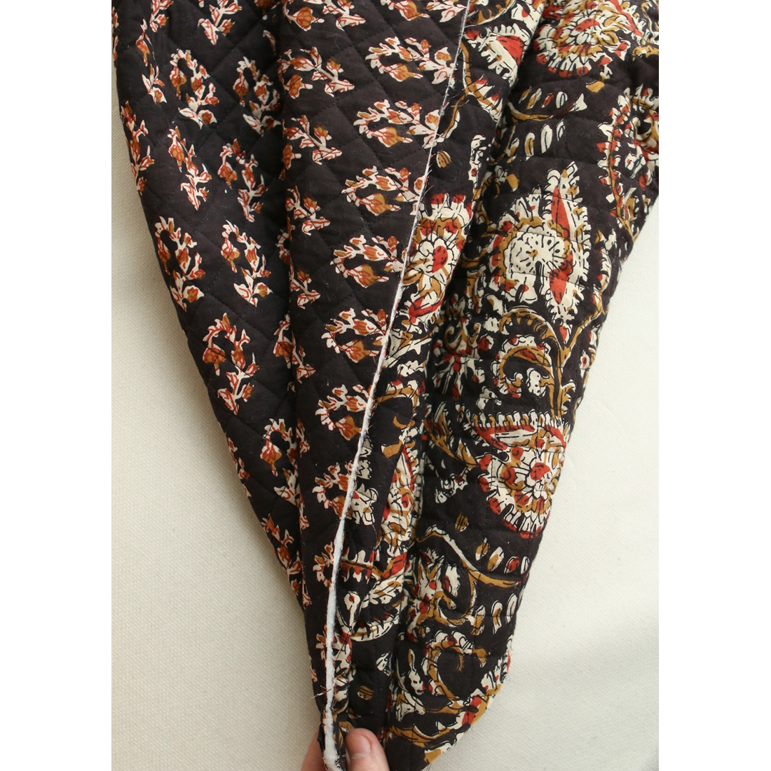 - A noter que le processus artisanal (impression à la main, au tampon en bois) de ce tissu fait que chaque pièce est unique et que l'impression et le matelassage ne sont pas aussi parfaits qu'un processus industriel.