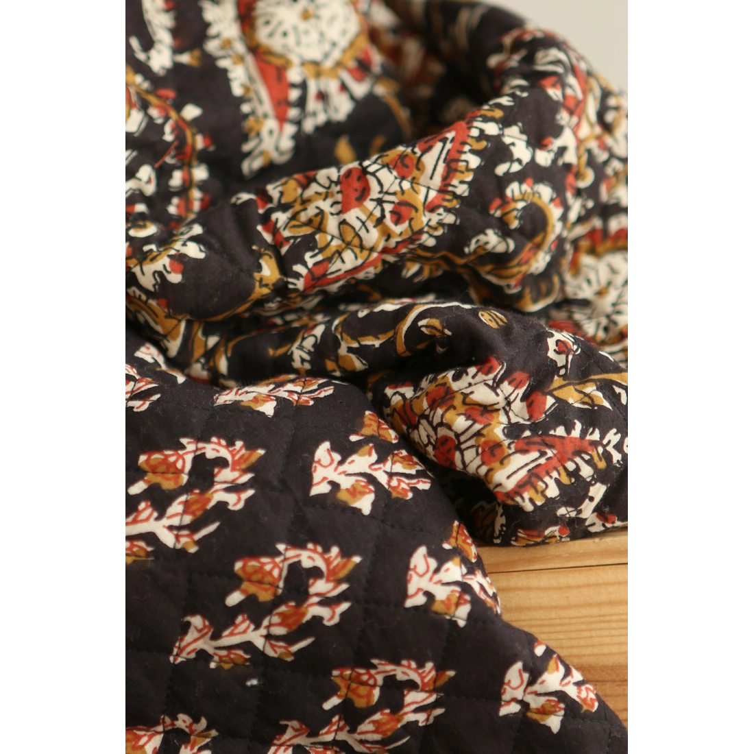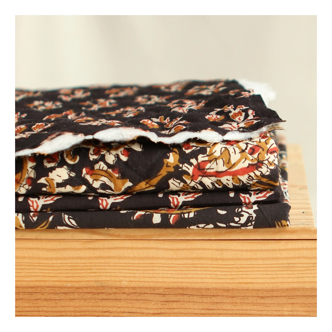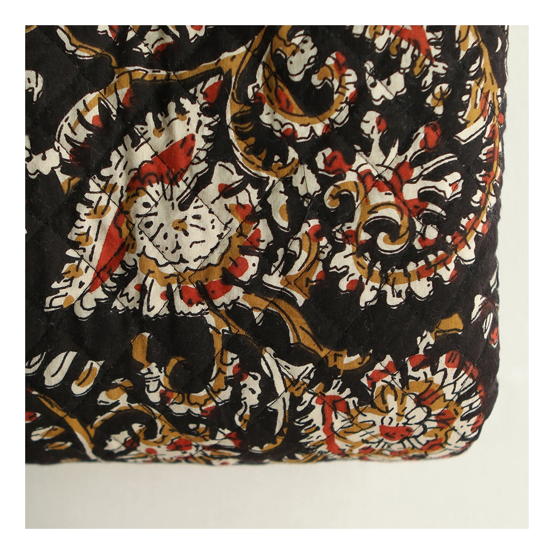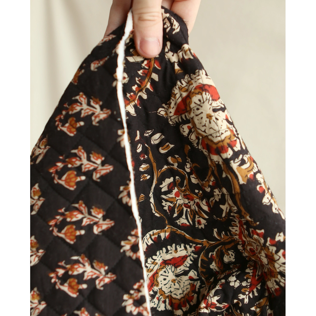 - A noter que le processus artisanal (impression à la main, au tampon en bois) de ce tissu fait que chaque pièce est unique et que l'impression et le matelassage ne sont pas aussi parfaits qu'un processus industriel.