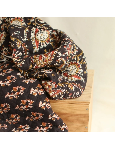 Kajal - Tissu indien matelassé double face coton hand block largeur 100cm