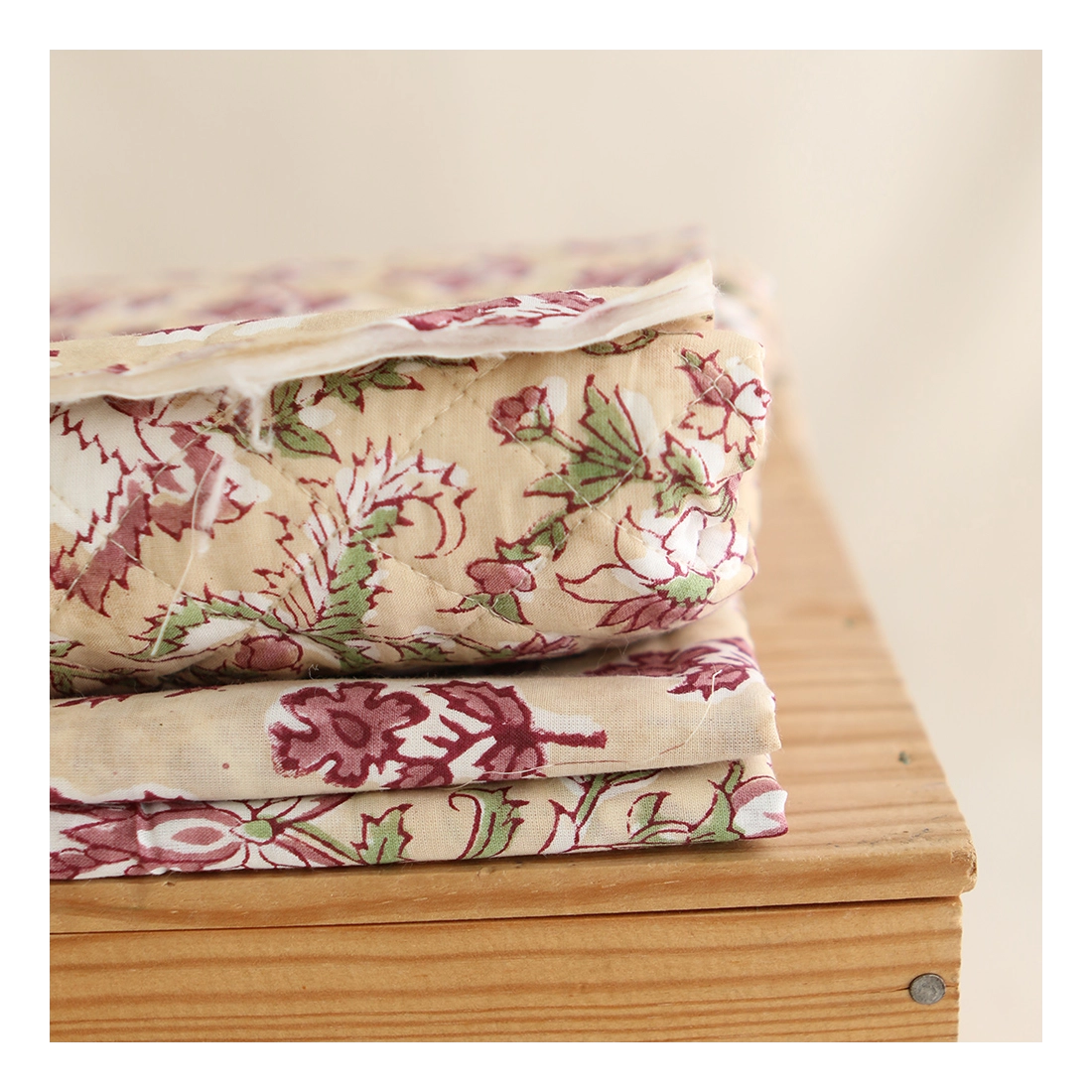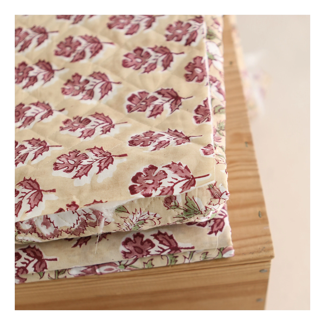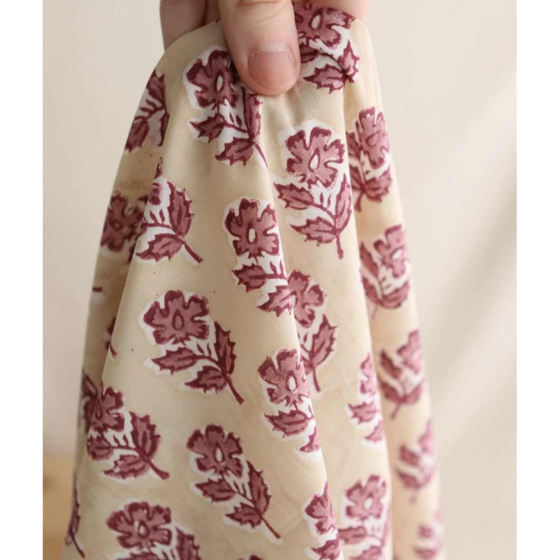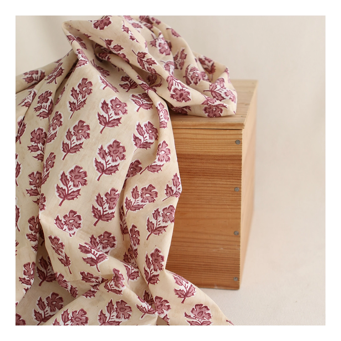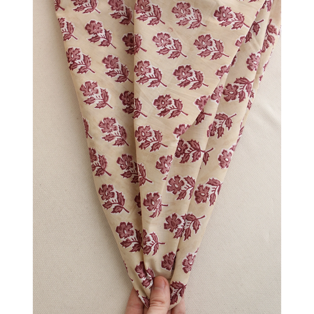 A noter que le processus artisanal (impression à la main, au tampon en bois) de ce tissu fait que chaque pièce est unique et que l'impression n'est pas aussi parfaite qu'un processus industriel.