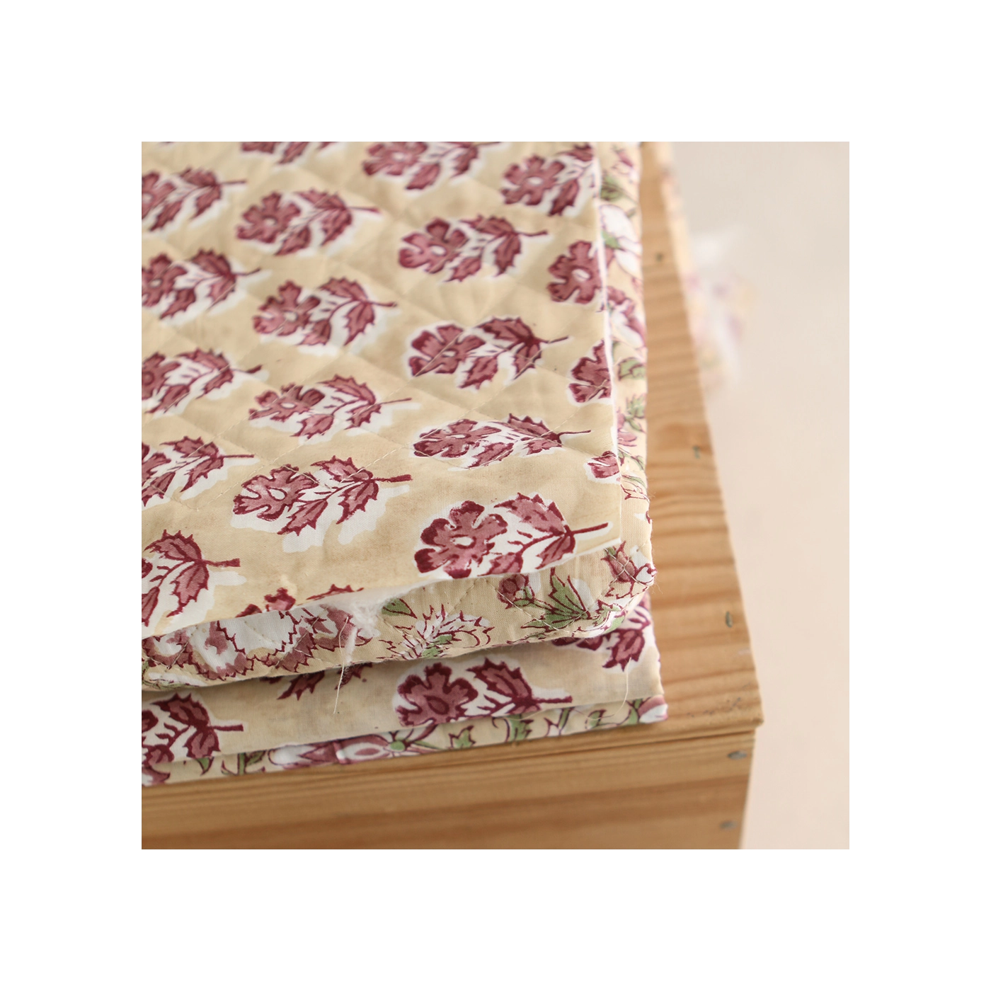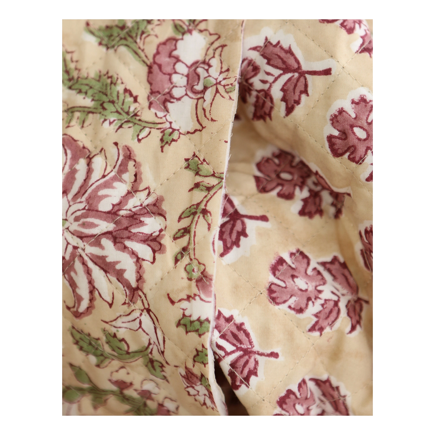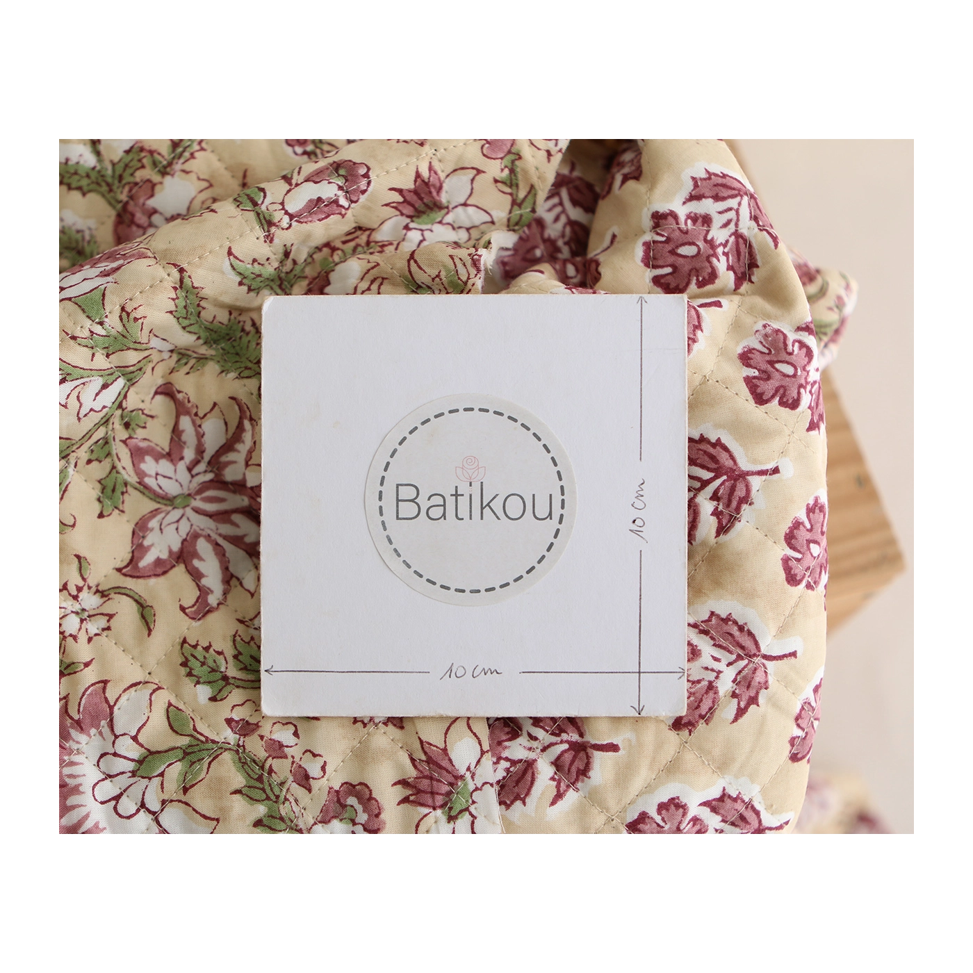 - A noter que le processus artisanal (impression à la main, au tampon en bois) de ce tissu fait que chaque pièce est unique et que l'impression et le matelassage ne sont pas aussi parfaits qu'un processus industriel.