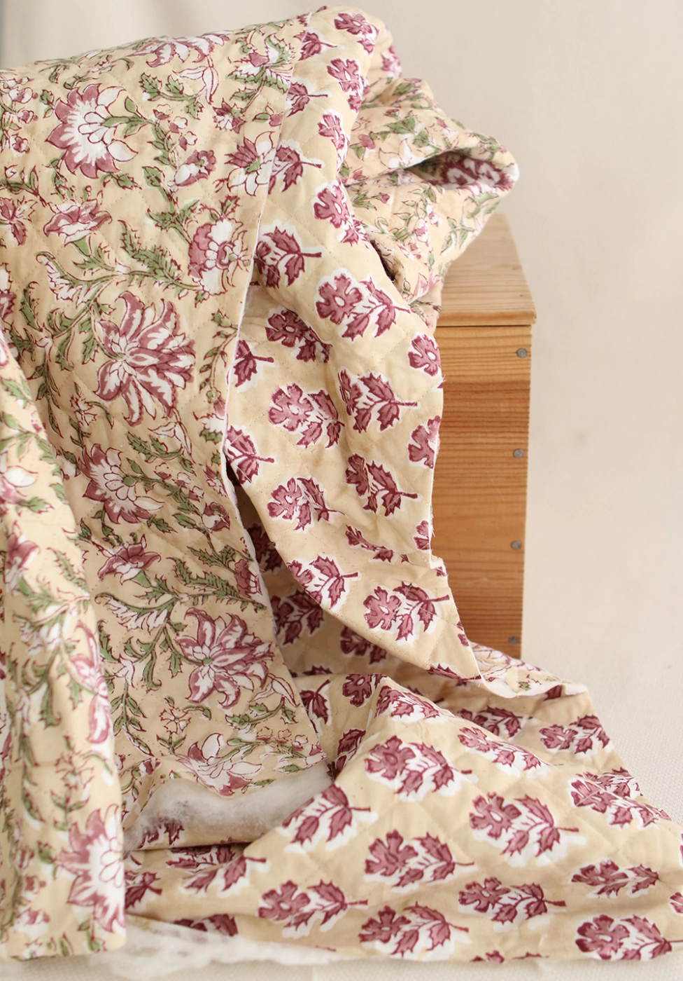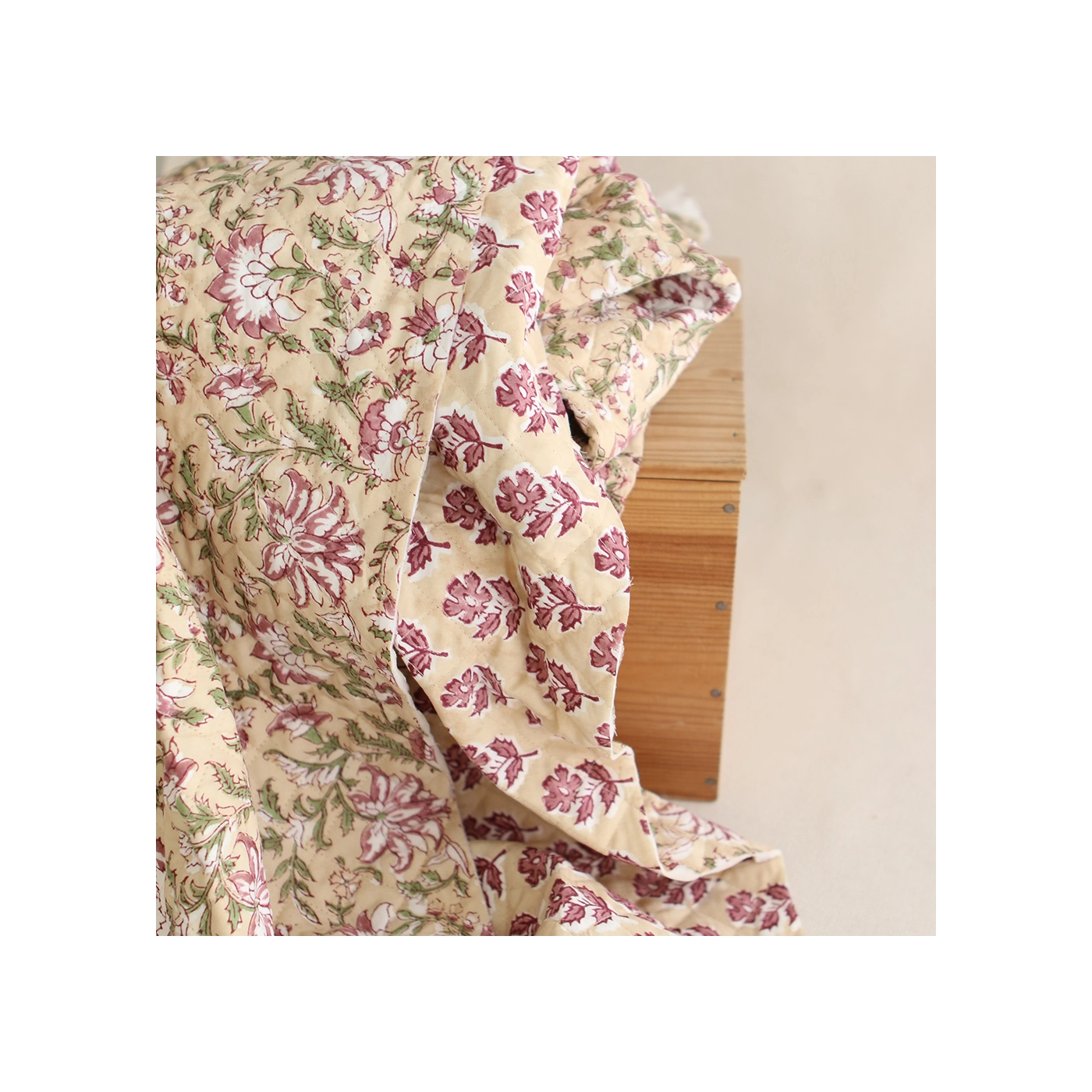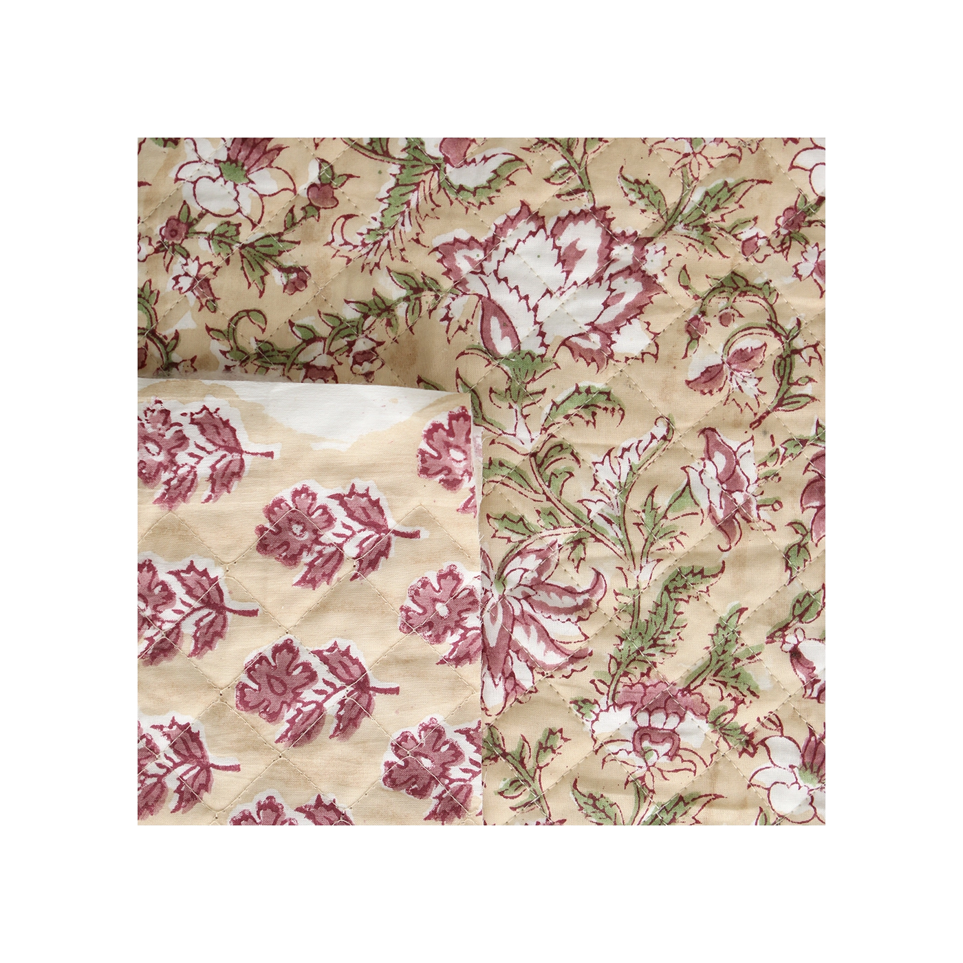 Nous avons décliné cette collection avec nos partenaires en Inde, afin de vous proposer pour le même motif le tissu en coton, et la version double face matelassée.