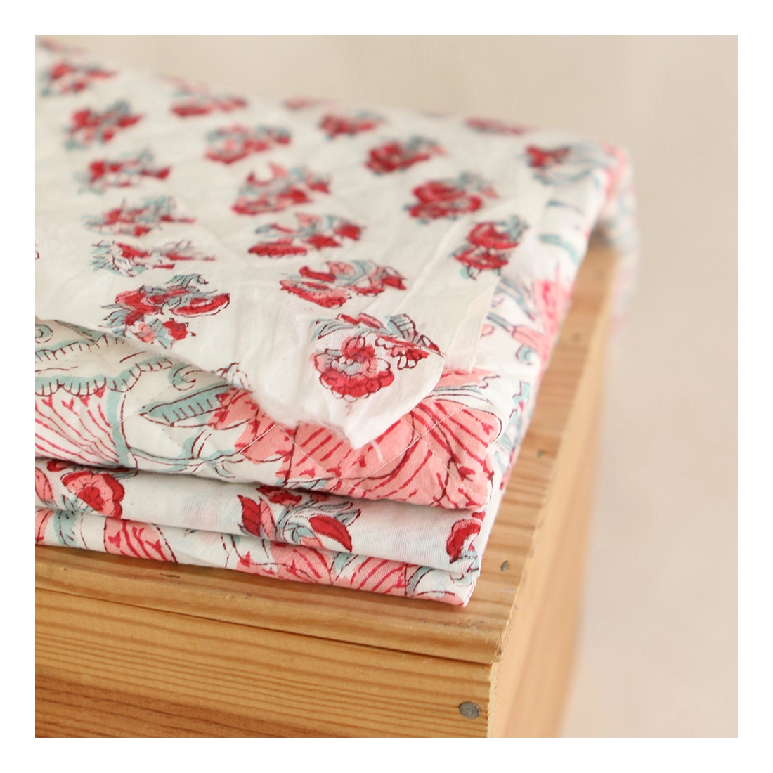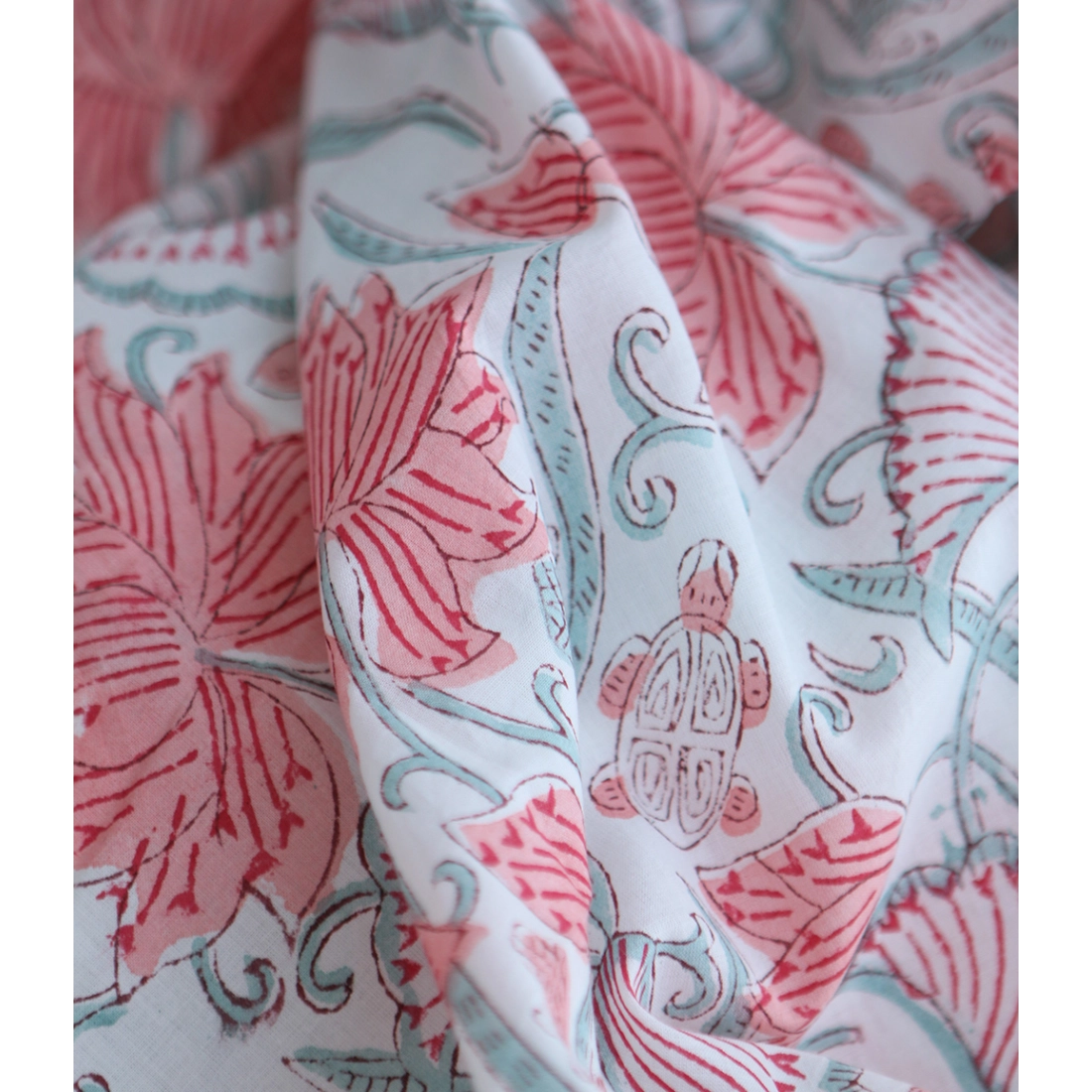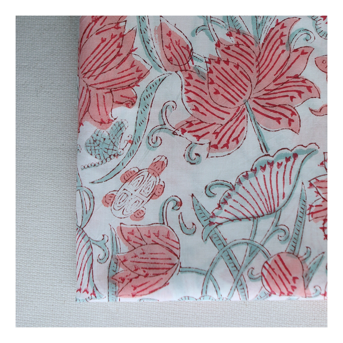 A noter que le processus artisanal (impression à la main, au tampon en bois) de ce tissu fait que chaque pièce est unique et que l'impression n'est pas aussi parfaite qu'un processus industriel.