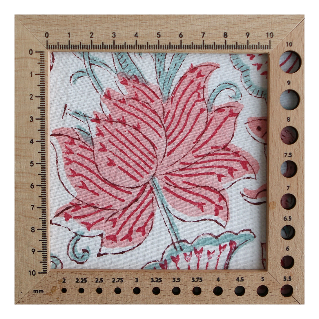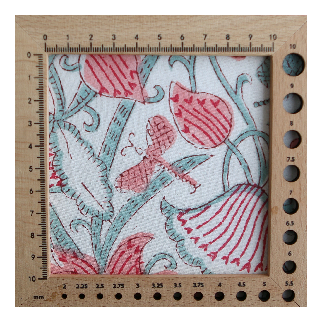 Les couleurs et les motifs apparaissent petit à petit en trempant le tampon en bois dans l'encre textile, qui sera ensuite frappé sur le tissu... répété autant de fois que nécessaire pour remplir le coupon de tissu.