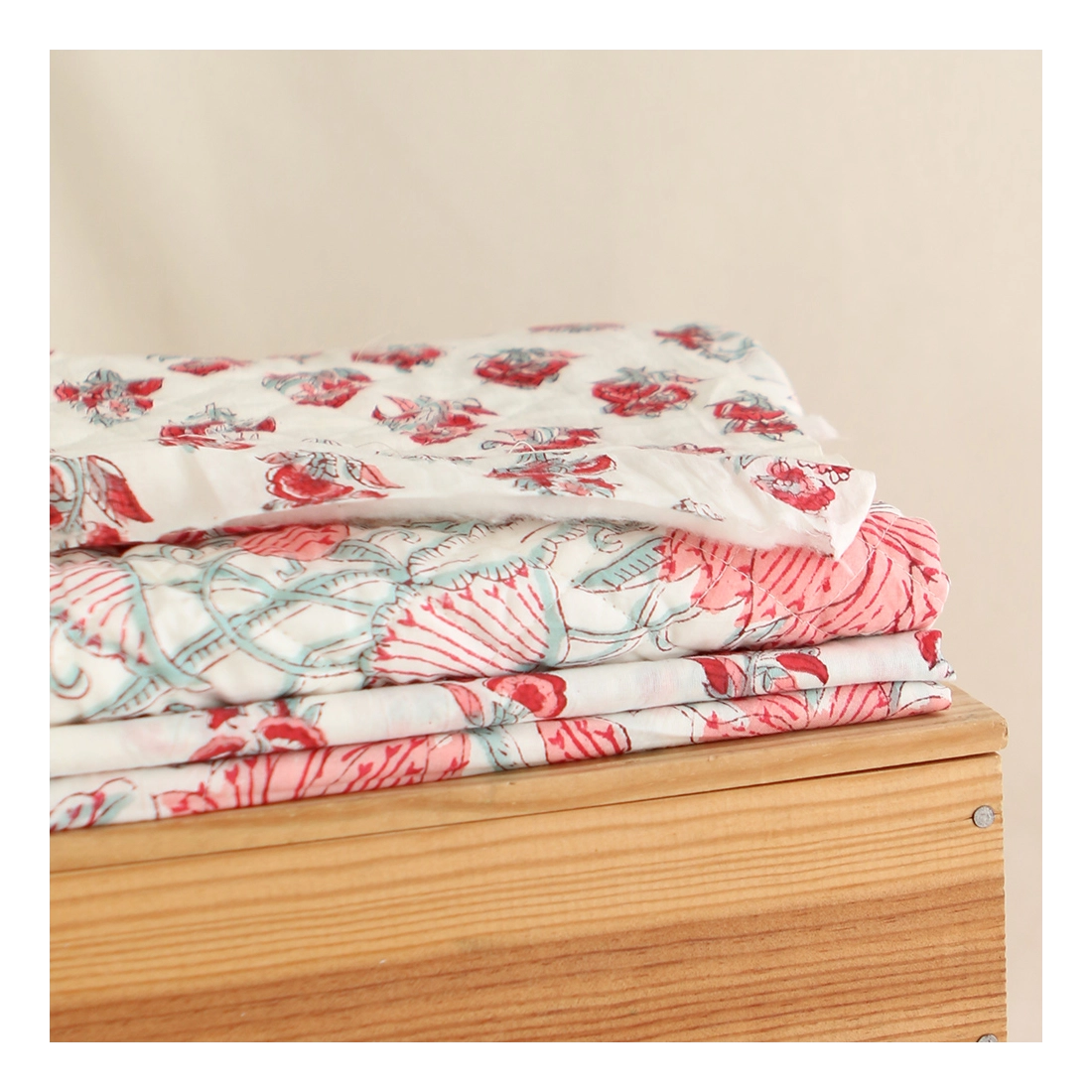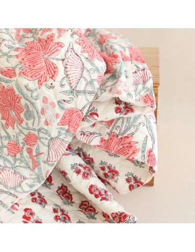 Nous avons décliné cette collection avec nos partenaires en Inde, afin de vous proposer pour le même motif le tissu en coton, et la version double face matelassée.