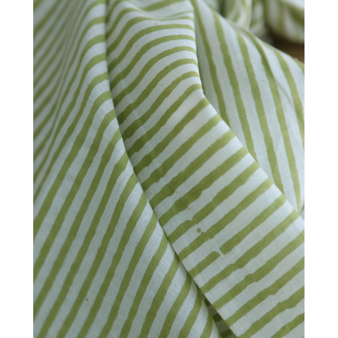 Rayures vert - Tissu indien coton hand block traditionnel