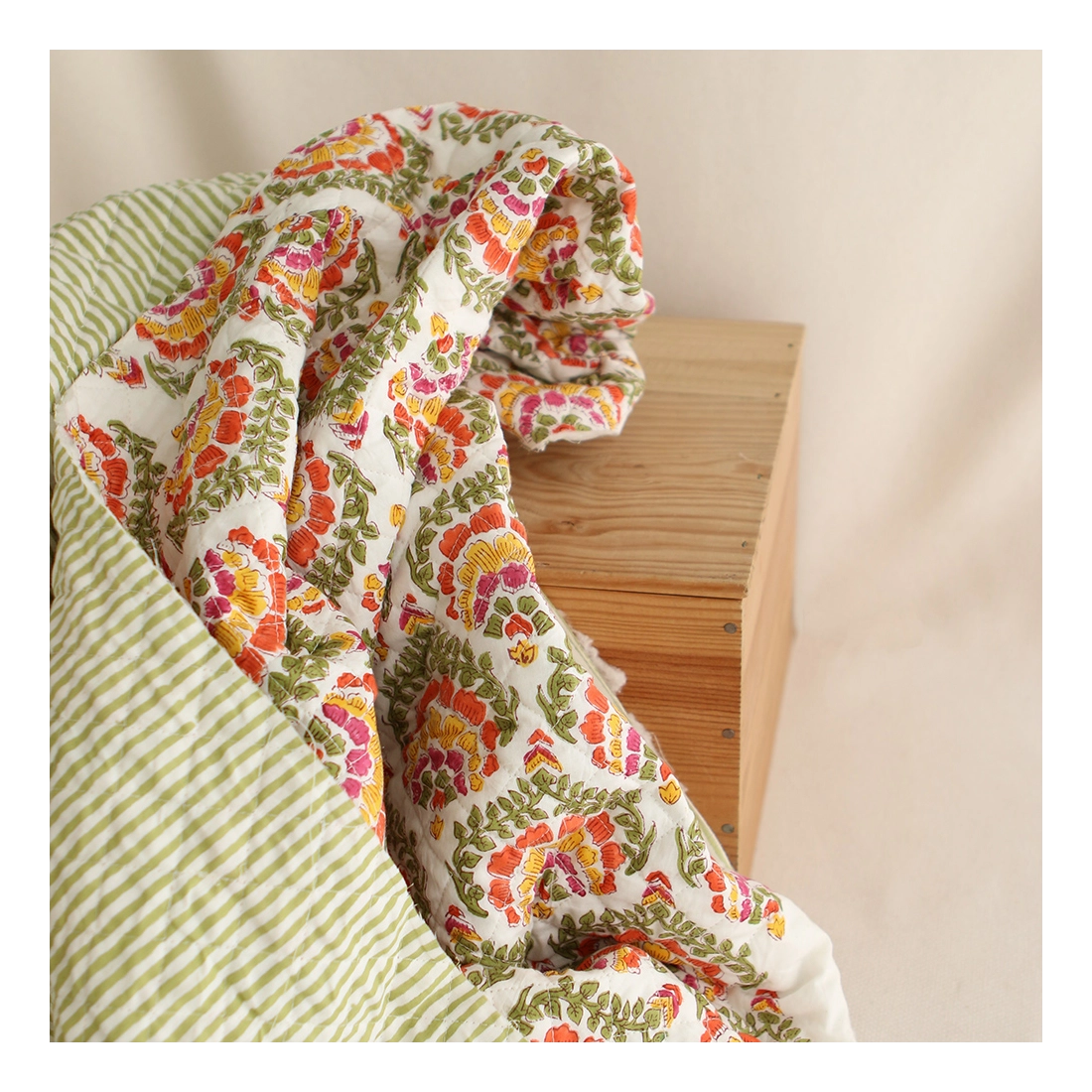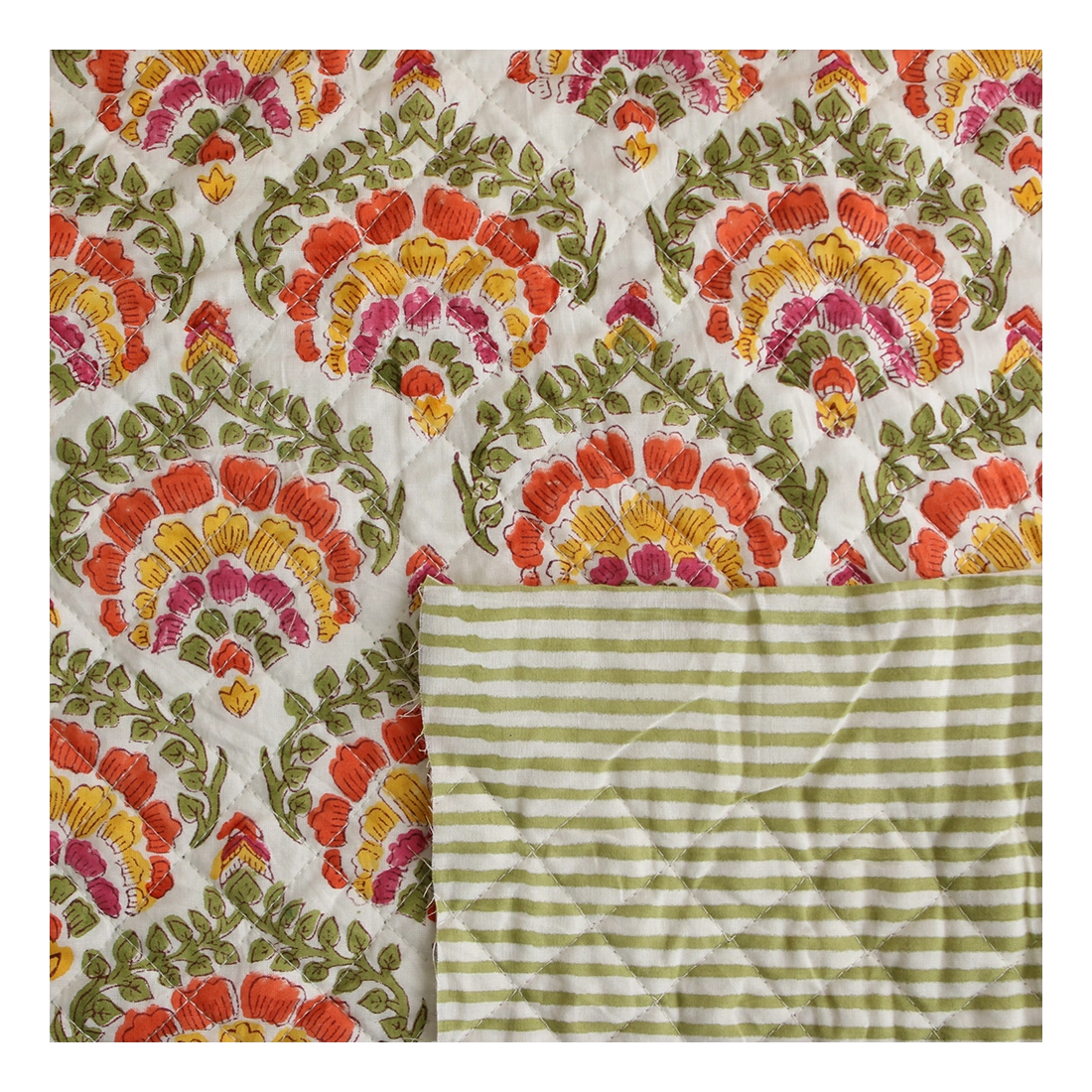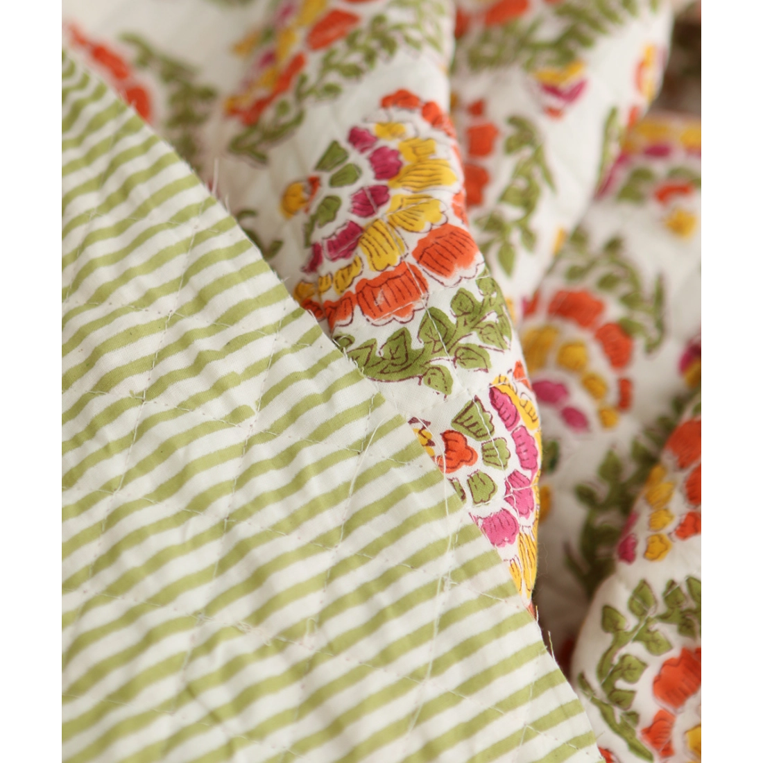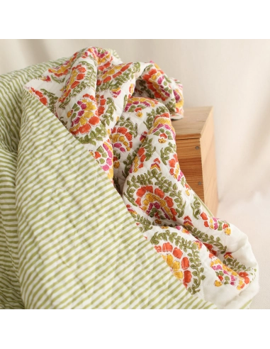 Nous avons décliné cette collection avec nos partenaires en Inde, afin de vous proposer pour le même motif le tissu en coton, et la version double face matelassée.