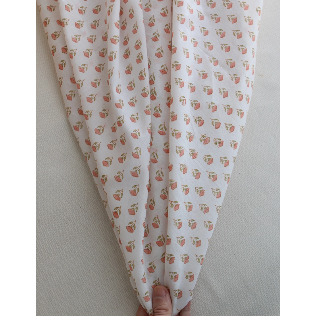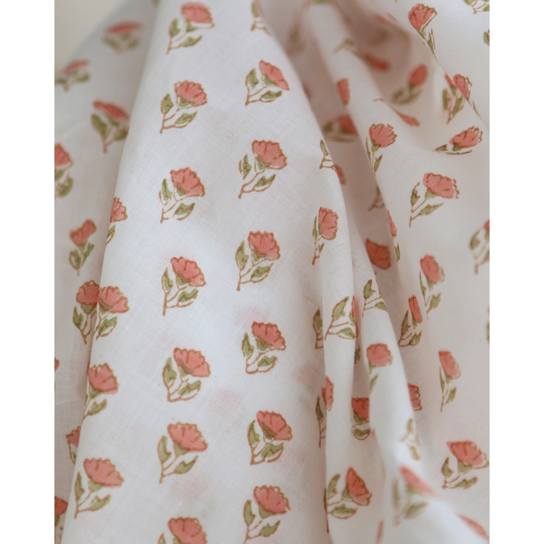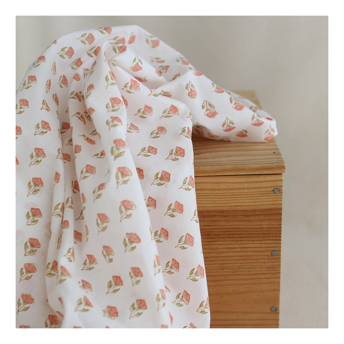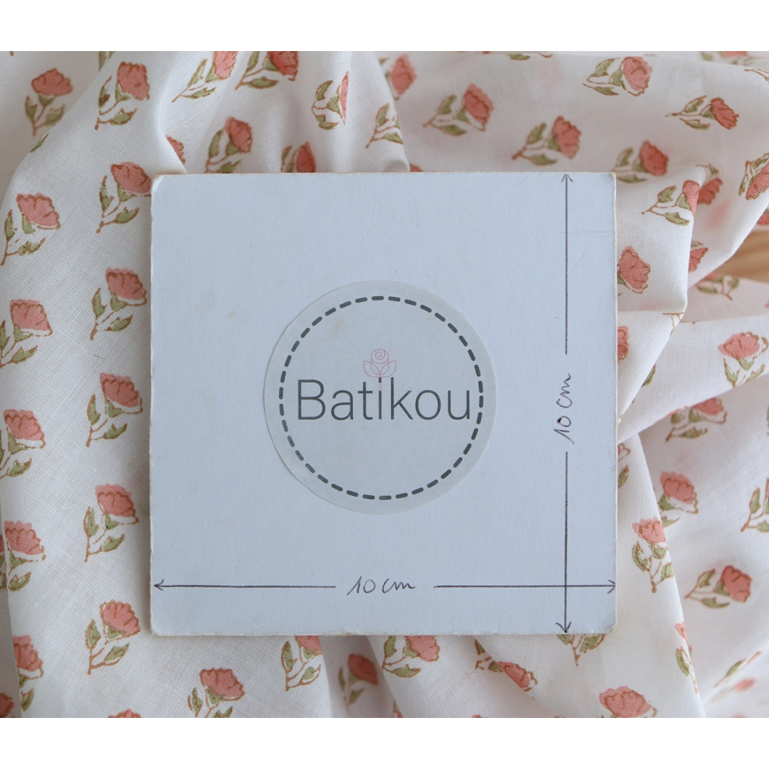 A noter que le processus artisanal (impression à la main, au tampon en bois) de ce tissu fait que chaque pièce est unique et que l'impression n'est pas aussi parfaite qu'un processus industriel.
