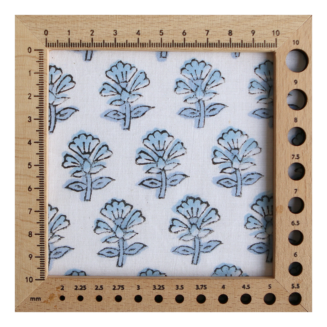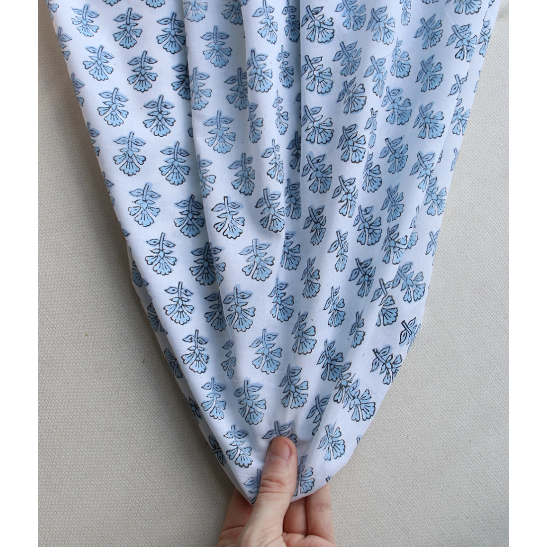 A noter que le processus artisanal (impression à la main, au tampon en bois) de ce tissu fait que chaque pièce est unique et que l'impression n'est pas aussi parfaite qu'un processus industriel.