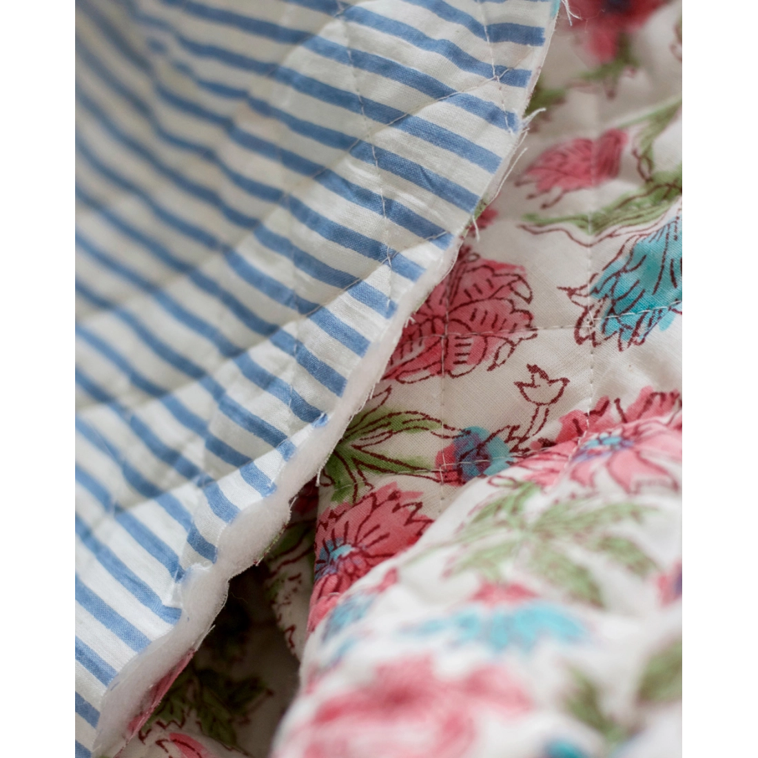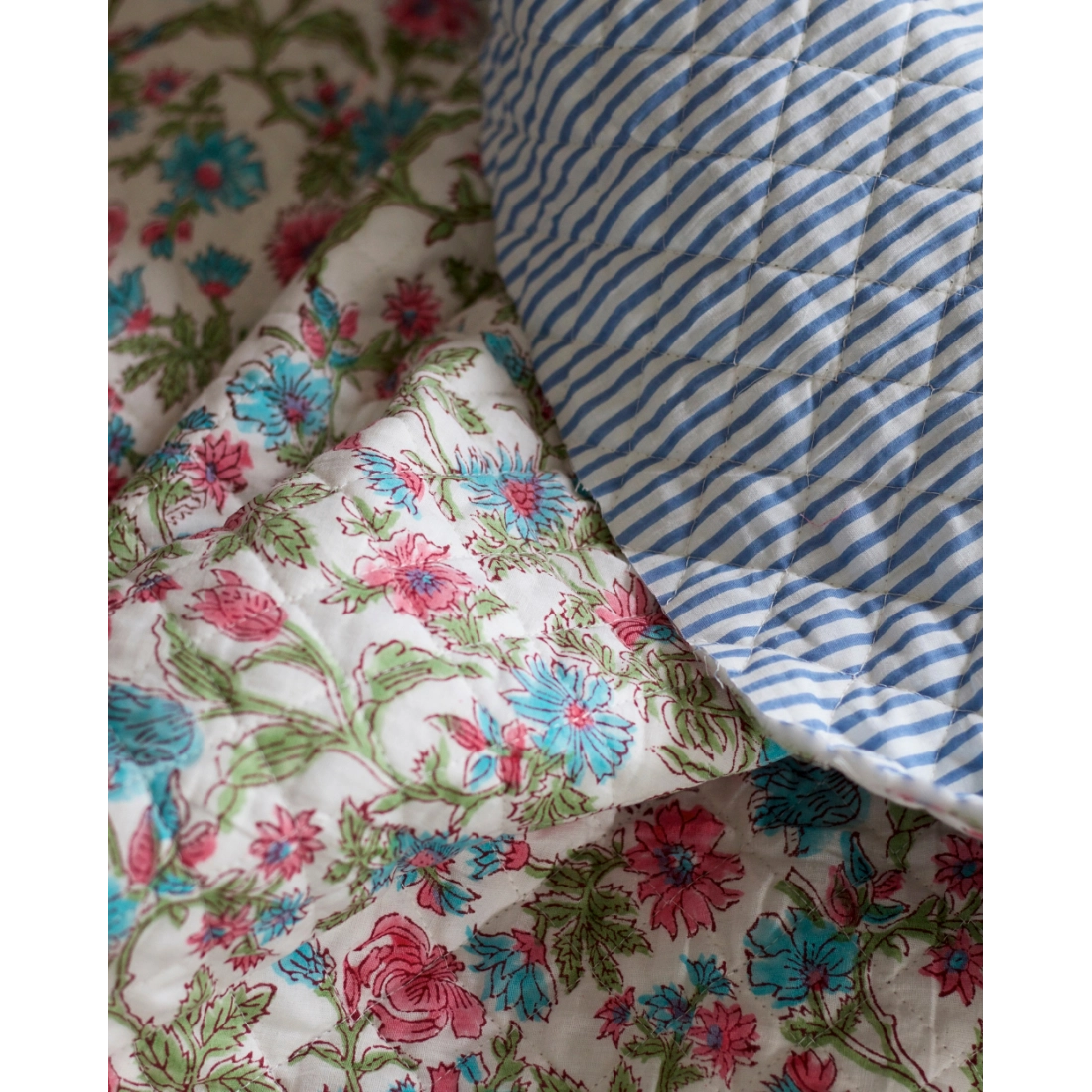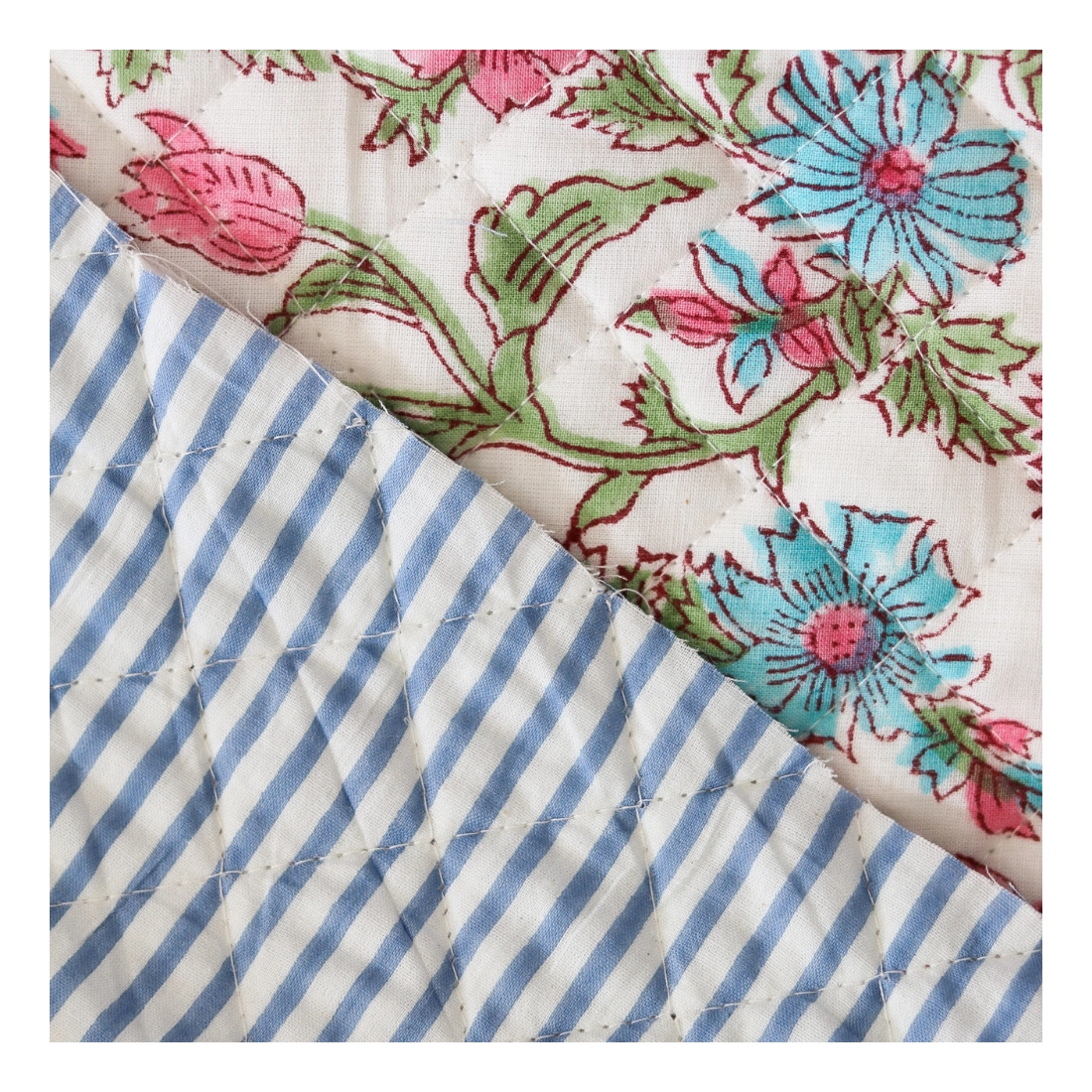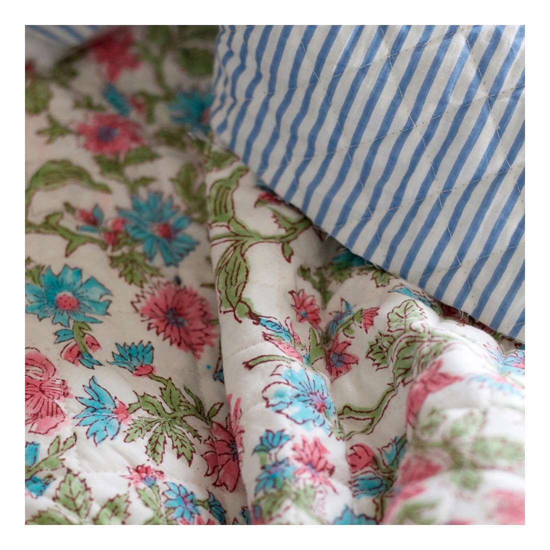 Nous avons décliné cette collection avec nos partenaires en Inde, afin de vous proposer pour le même motif le tissu en coton, et la version double face matelassée.