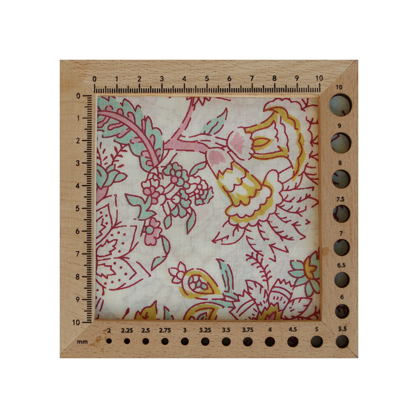 Les couleurs et les motifs apparaissent petit à petit en trempant le tampon en bois dans l'encre textile, qui sera ensuite frappé sur le tissu... répété autant de fois que nécessaire pour remplir le coupon de tissu.