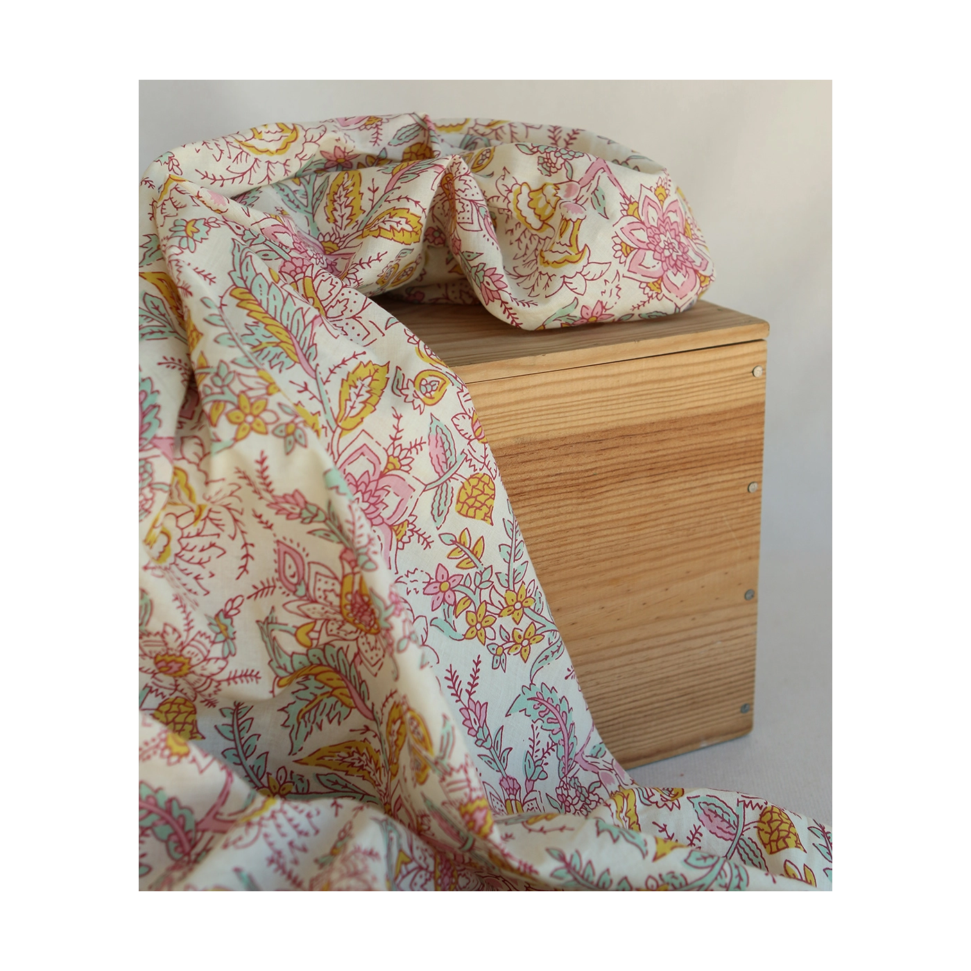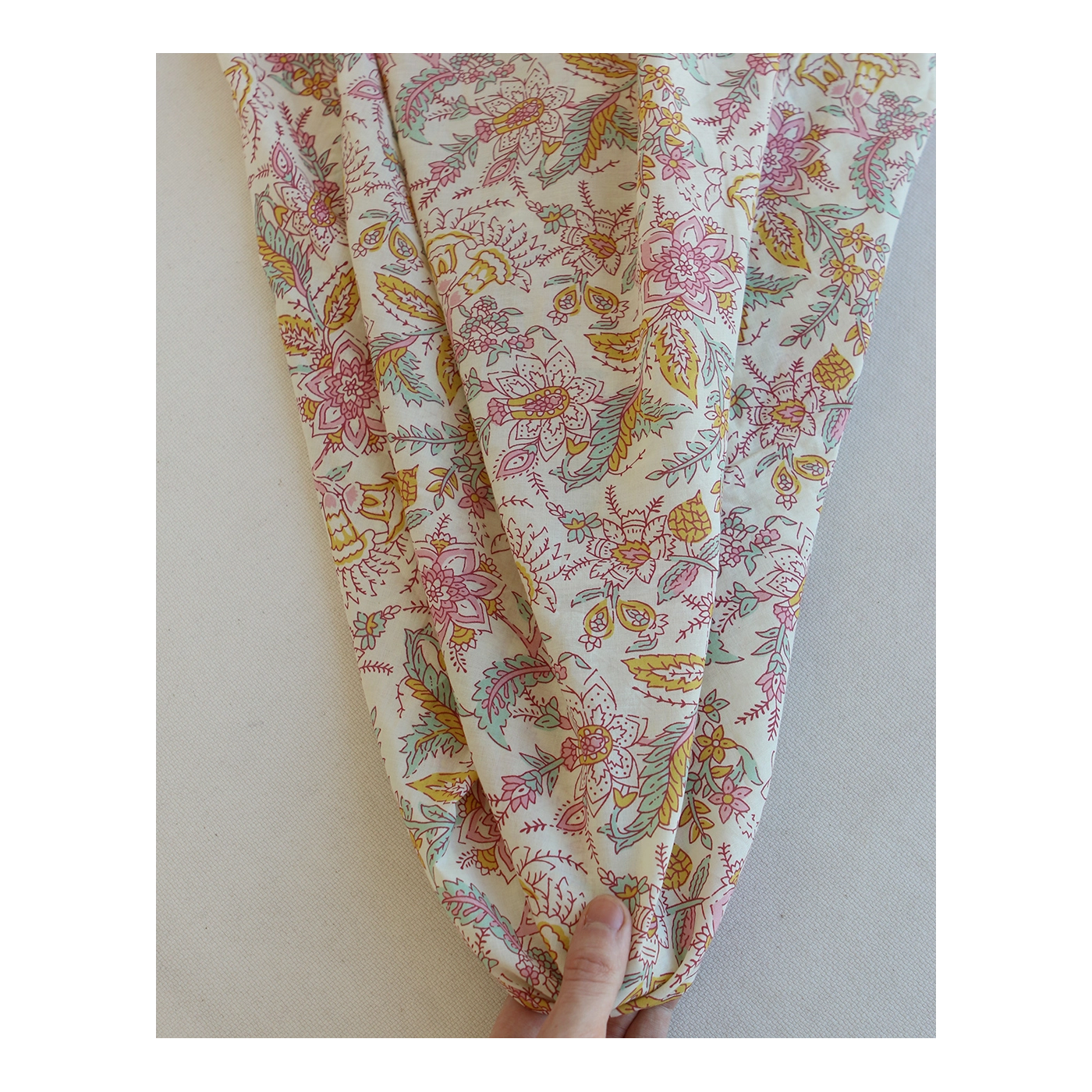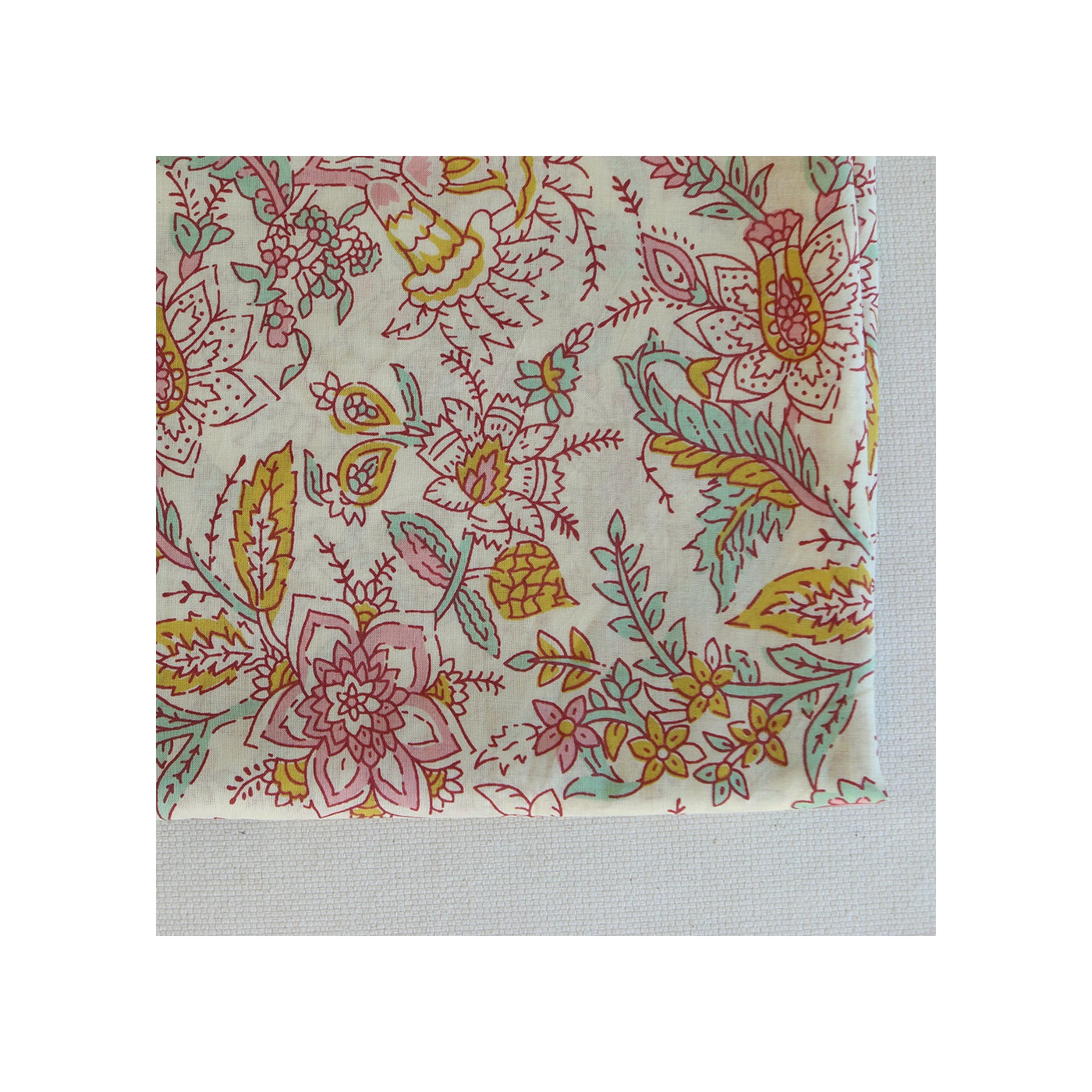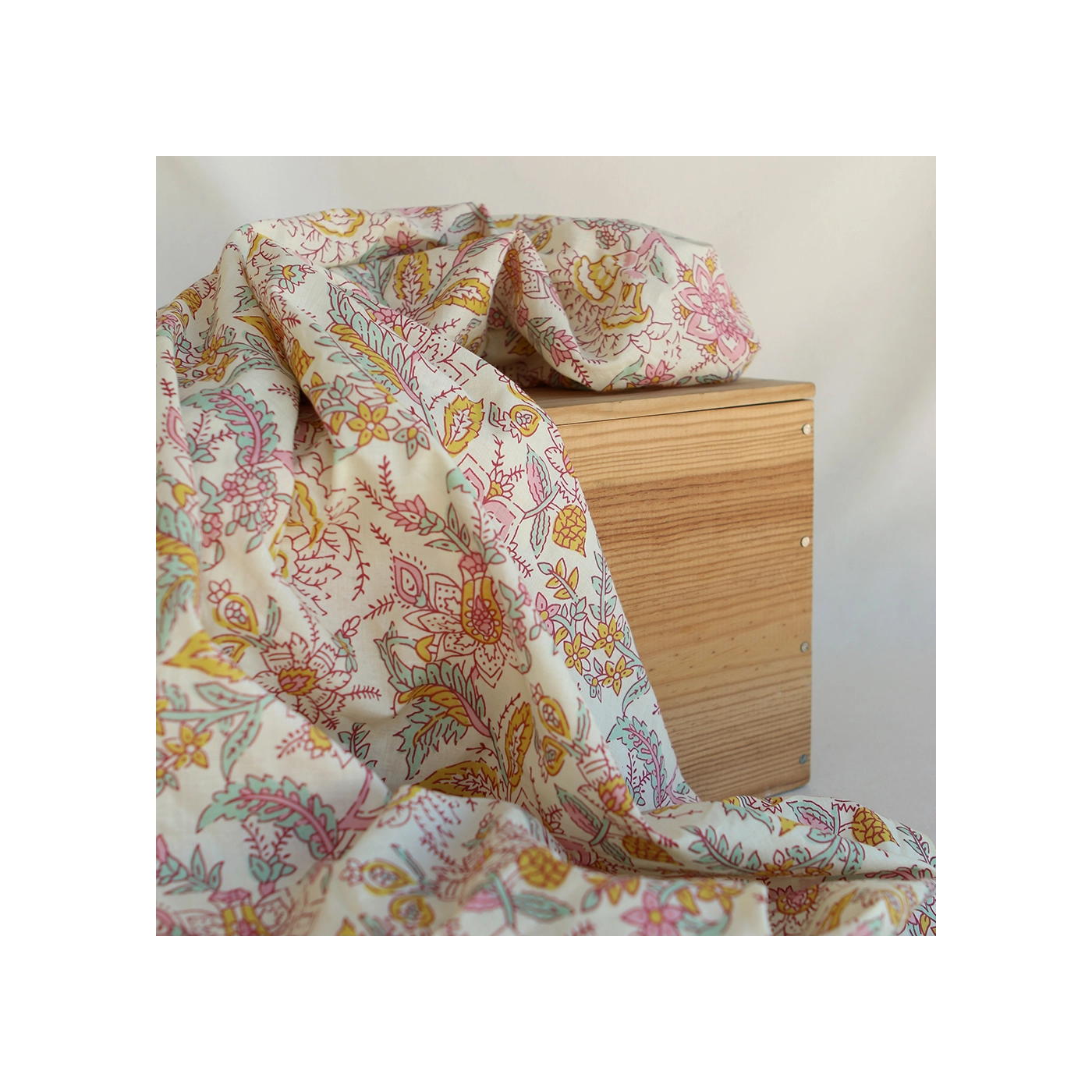 A noter que le processus artisanal (impression à la main, au tampon en bois) de ce tissu fait que chaque pièce est unique et que l'impression n'est pas aussi parfaite qu'un processus industriel.