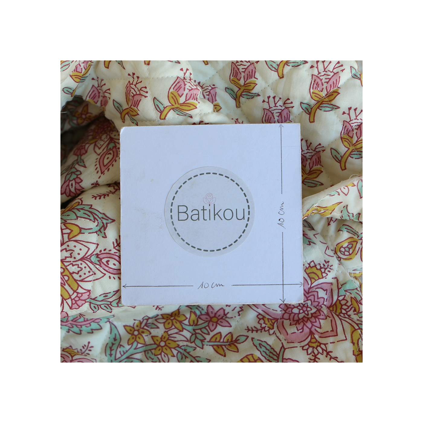 - A noter que le processus artisanal (impression à la main, au tampon en bois) de ce tissu fait que chaque pièce est unique et que l'impression et le matelassage ne sont pas aussi parfaits qu'un processus industriel.
