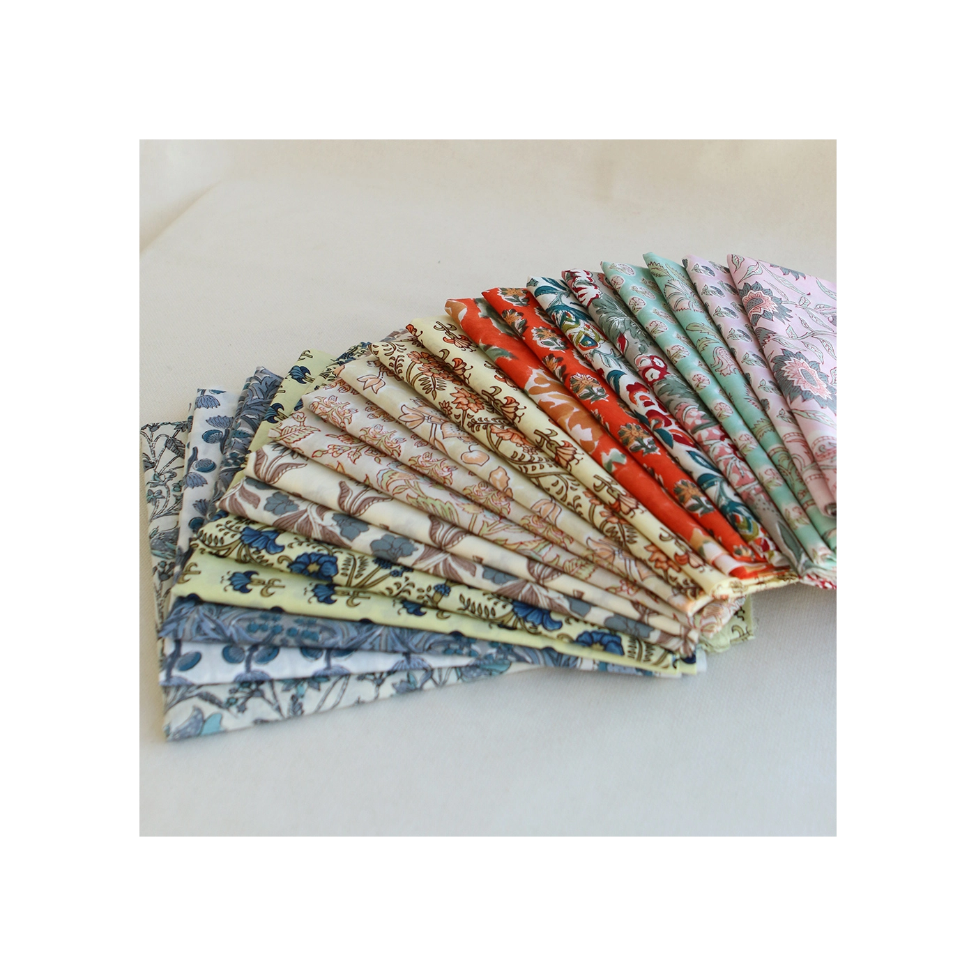 A noter que le processus artisanal (impression à la main, au tampon en bois) de ce tissu fait que chaque pièce est unique et que l'impression n'est pas aussi parfaite qu'un processus industriel.
