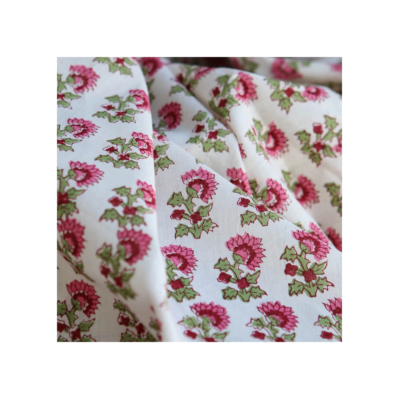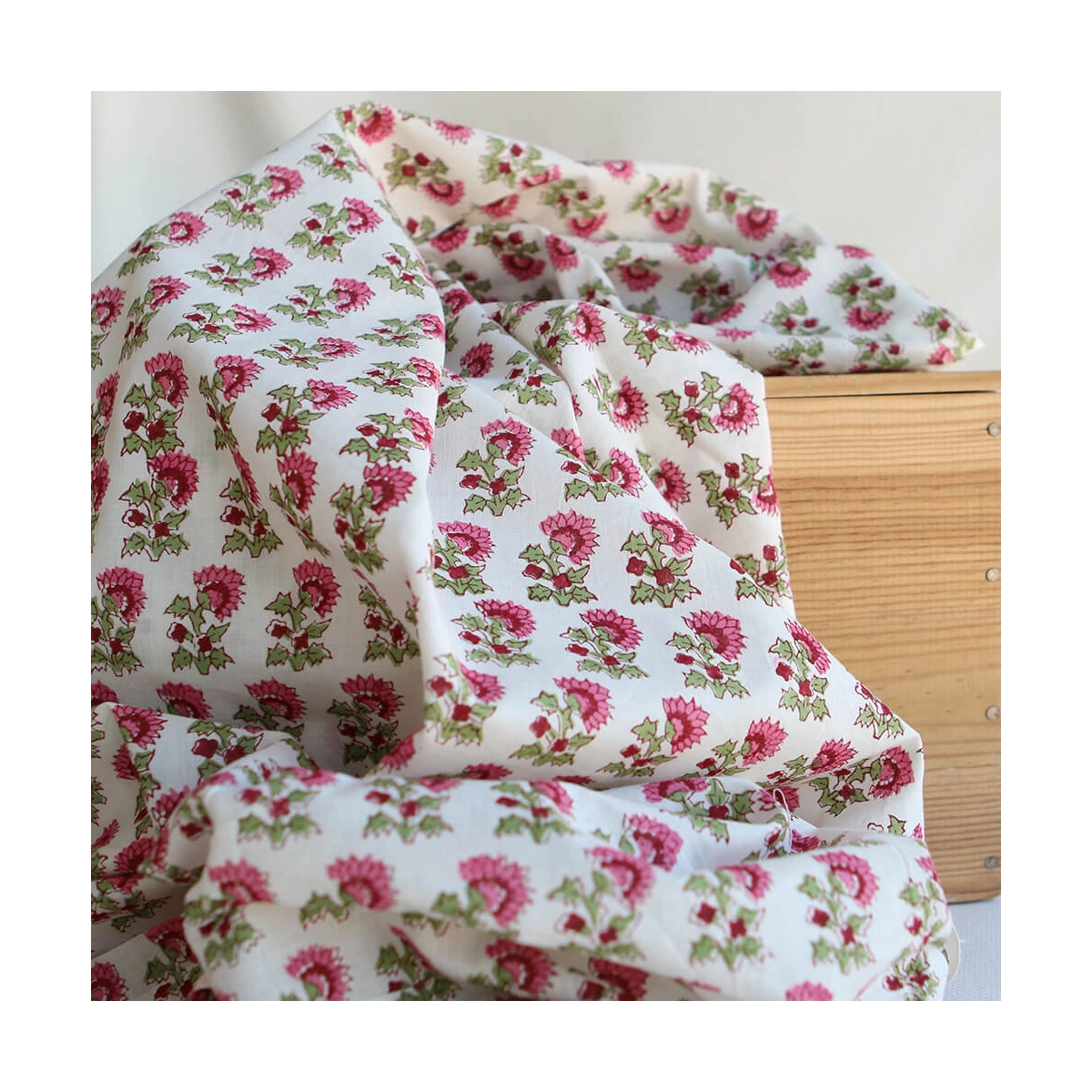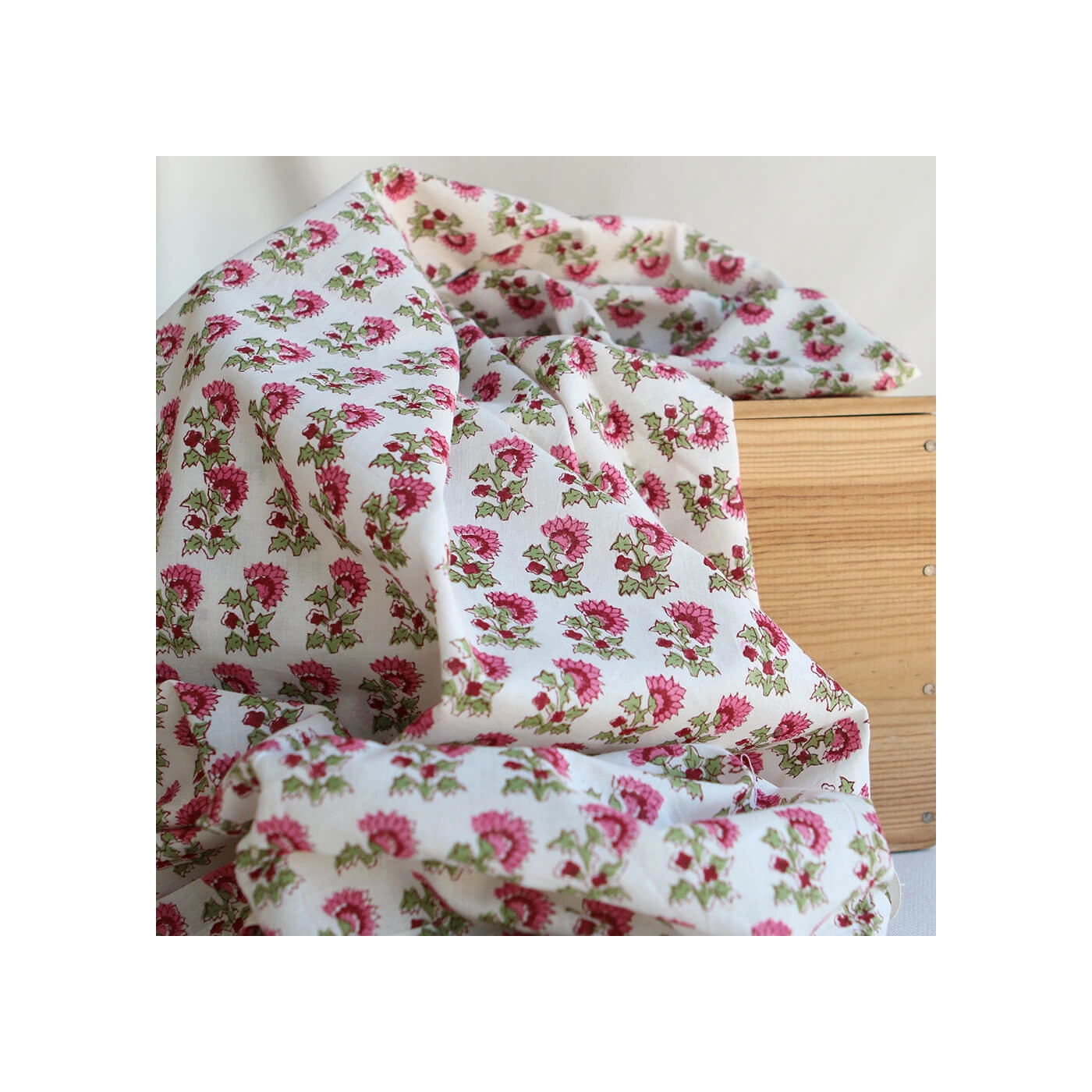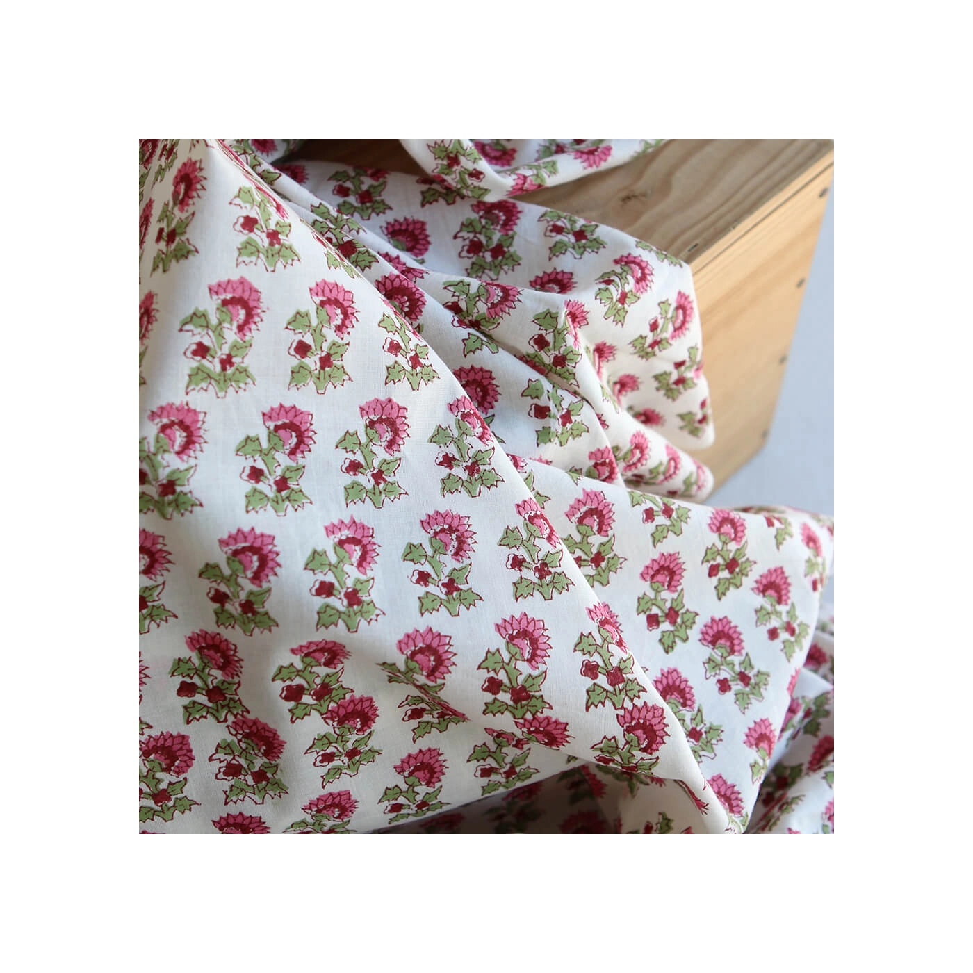Le block print est un artisanat ancestral indien : le dessin est gravé sur un tampon en bois, chaque couleur nécessitant une étape d'impression distincte.