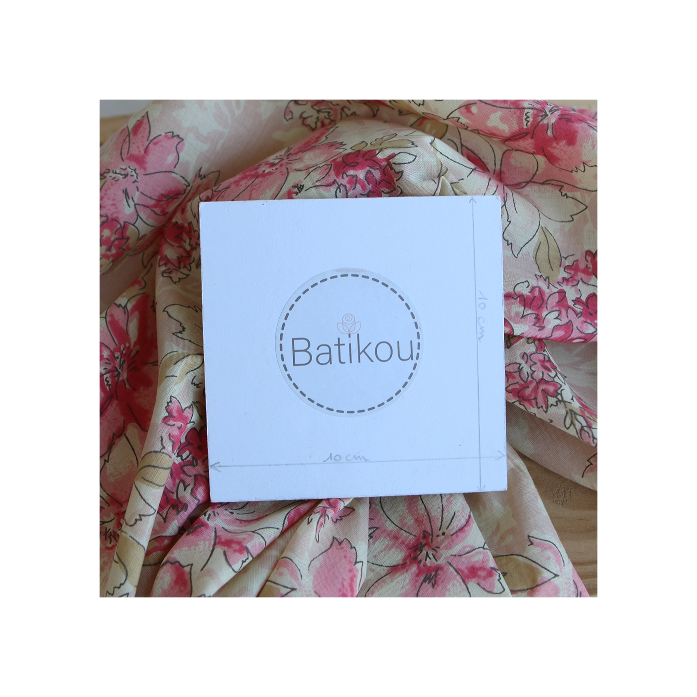 A noter que le processus artisanal (impression à la main, au tampon en bois) de ce tissu fait que chaque pièce est unique et que l'impression n'est pas aussi parfaite qu'un processus industriel.