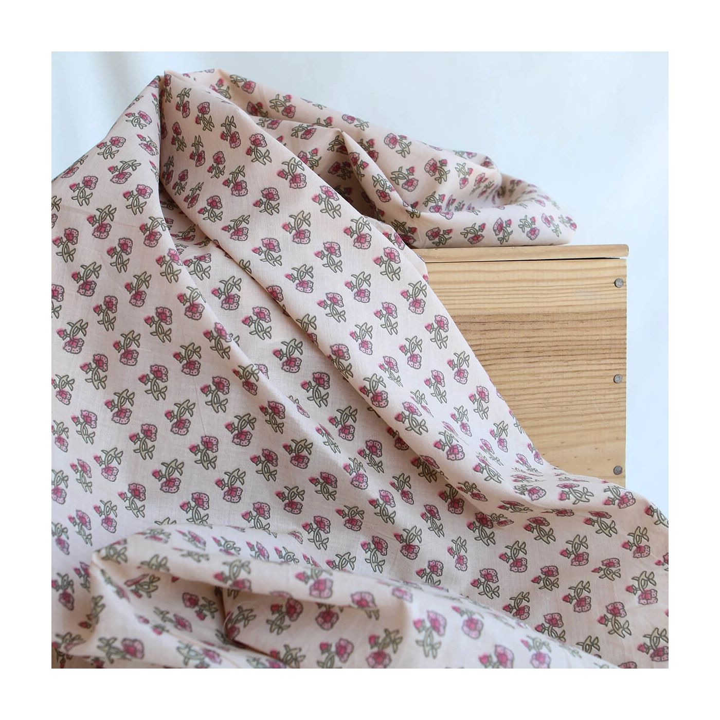 Le block print est un artisanat ancestral indien : le dessin est gravé sur un tampon en bois, chaque couleur nécessitant une étape d'impression distincte.
