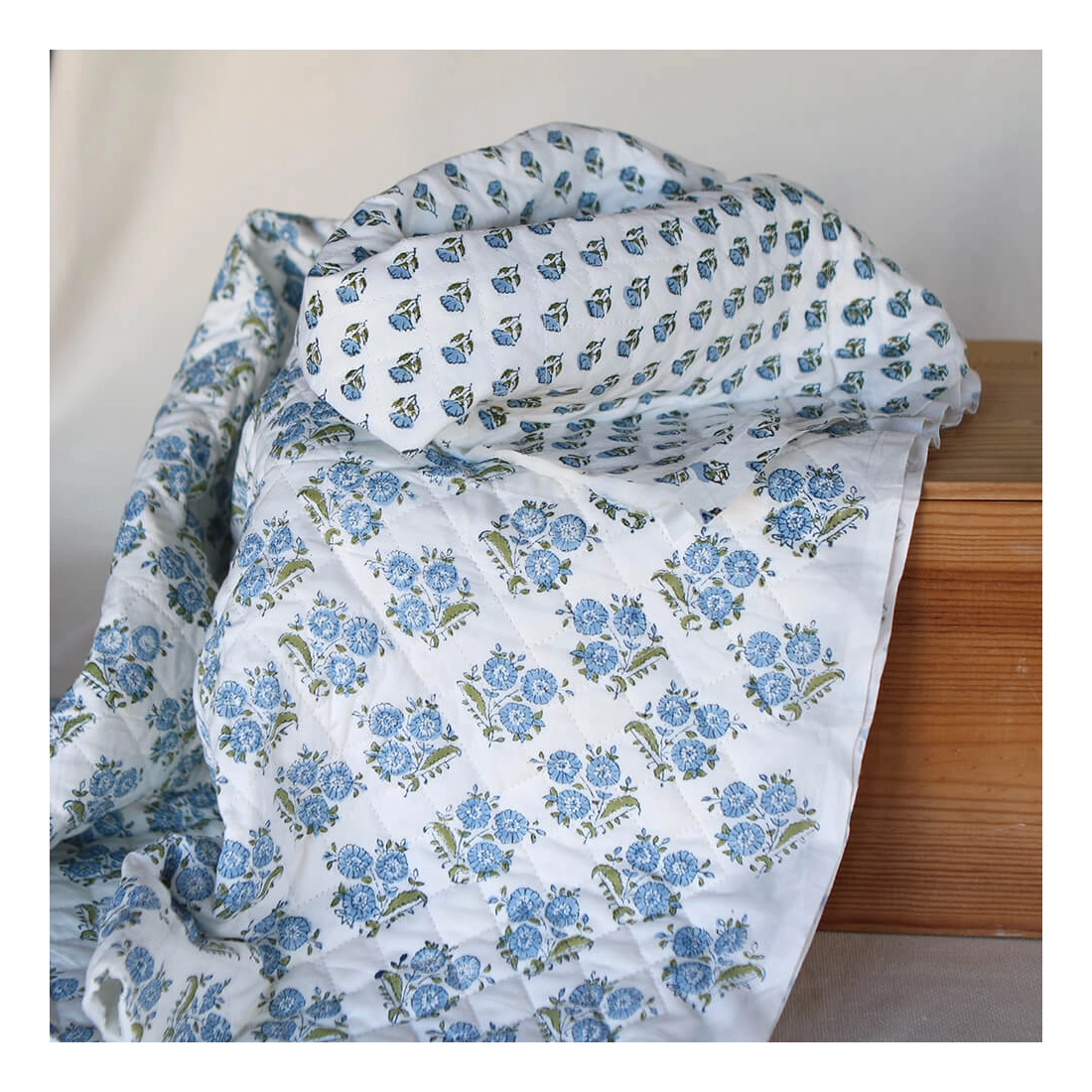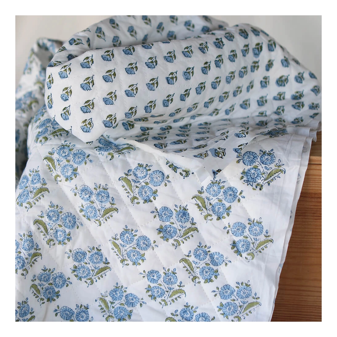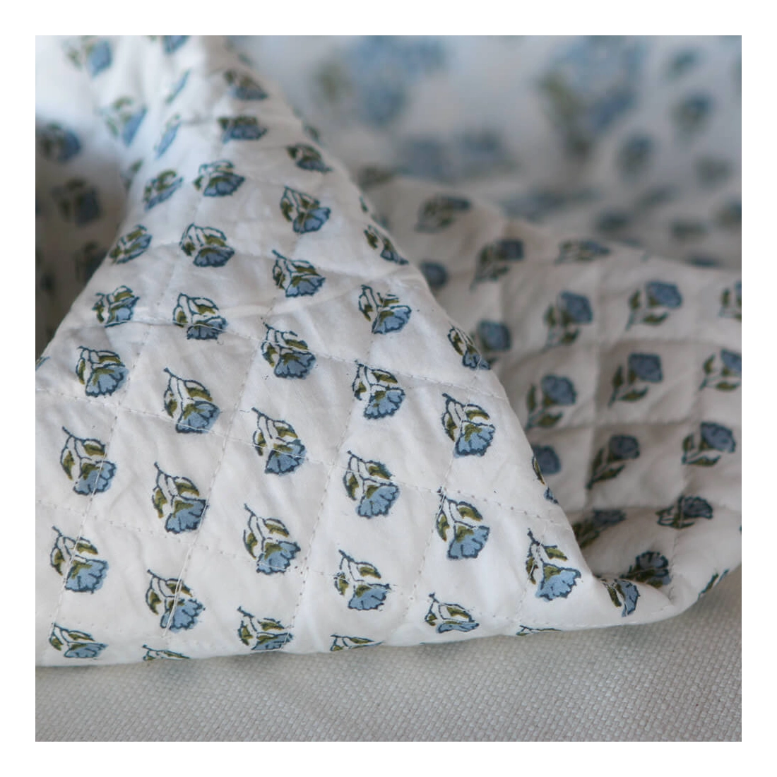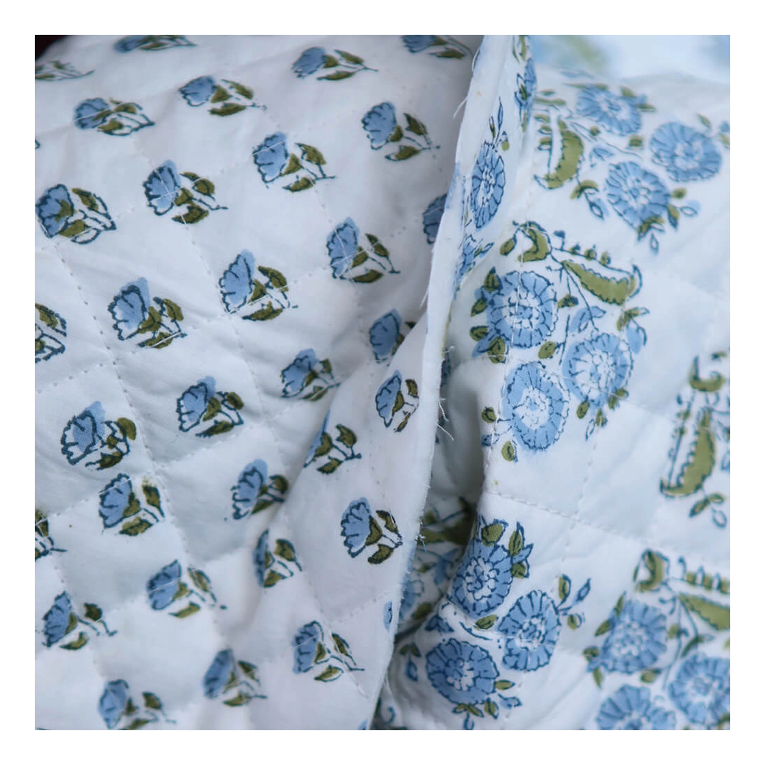 Nous avons décliné cette collection avec nos partenaires en Inde, afin de vous proposer pour le même motif le tissu en coton, et la version double face matelassée.
