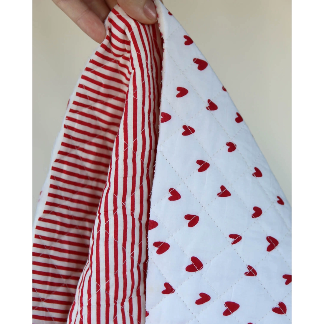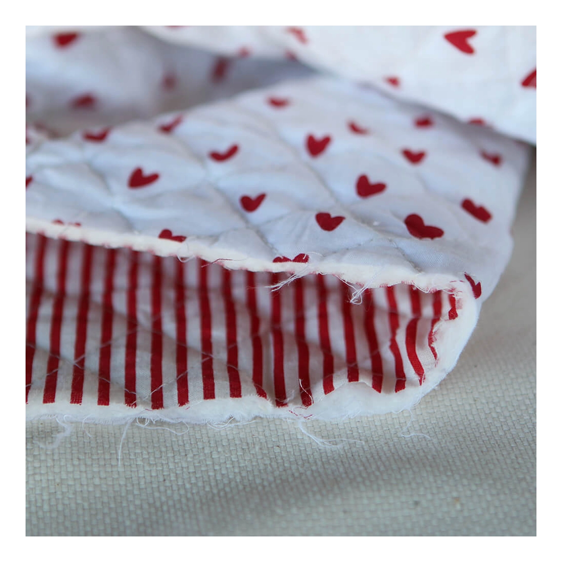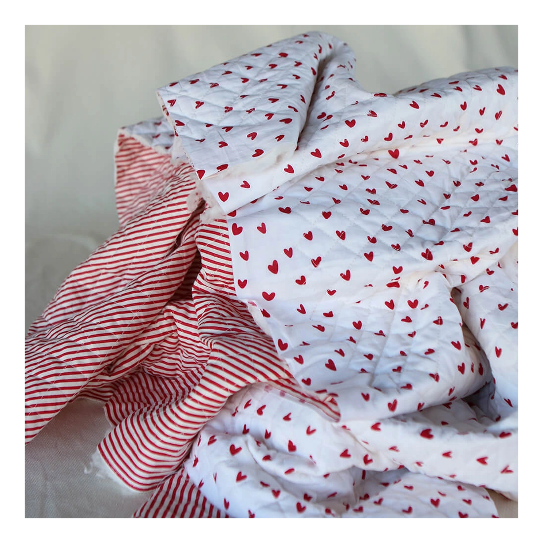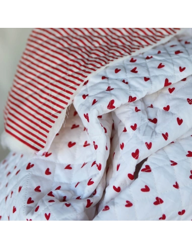Dil / coeurs rouges - Tissu indien matelassé double face coton hand block largeur 100cm