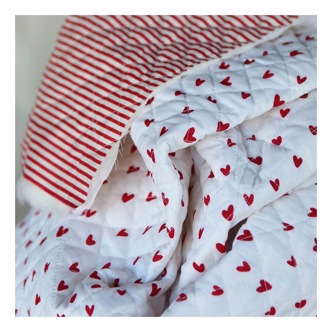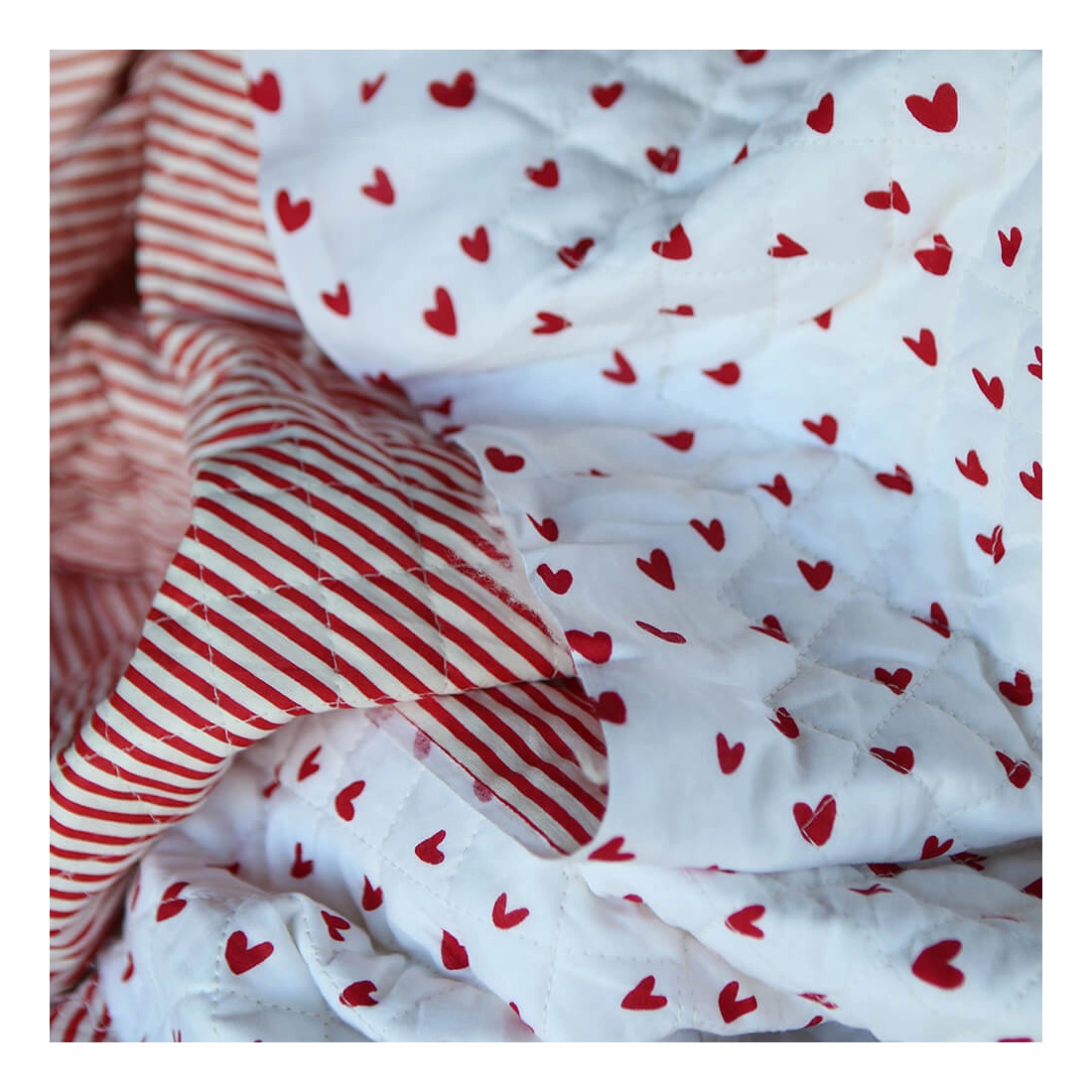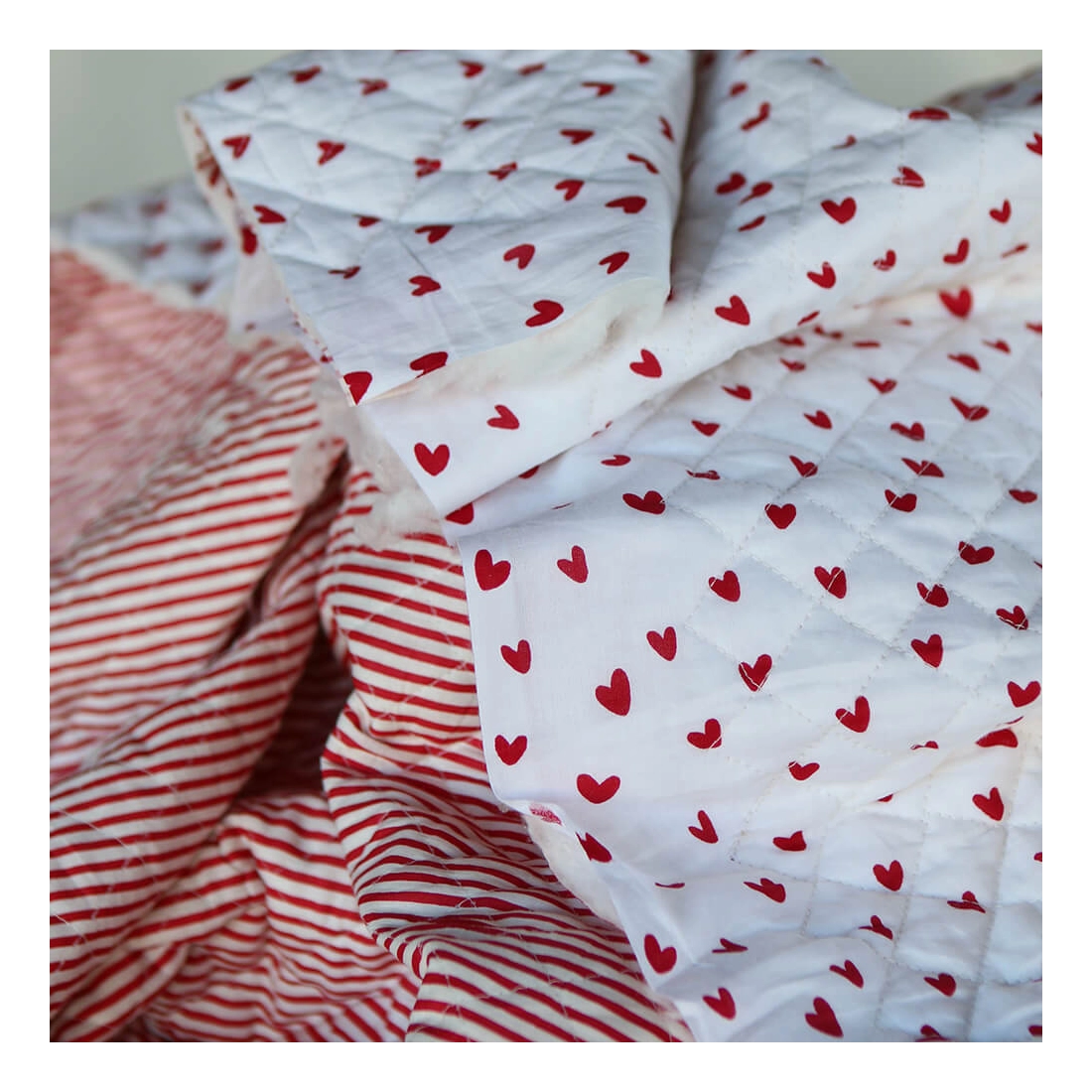 Dil / coeurs rouges - Tissu indien matelassé double face coton hand block largeur 100cm