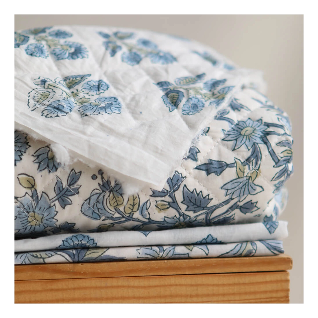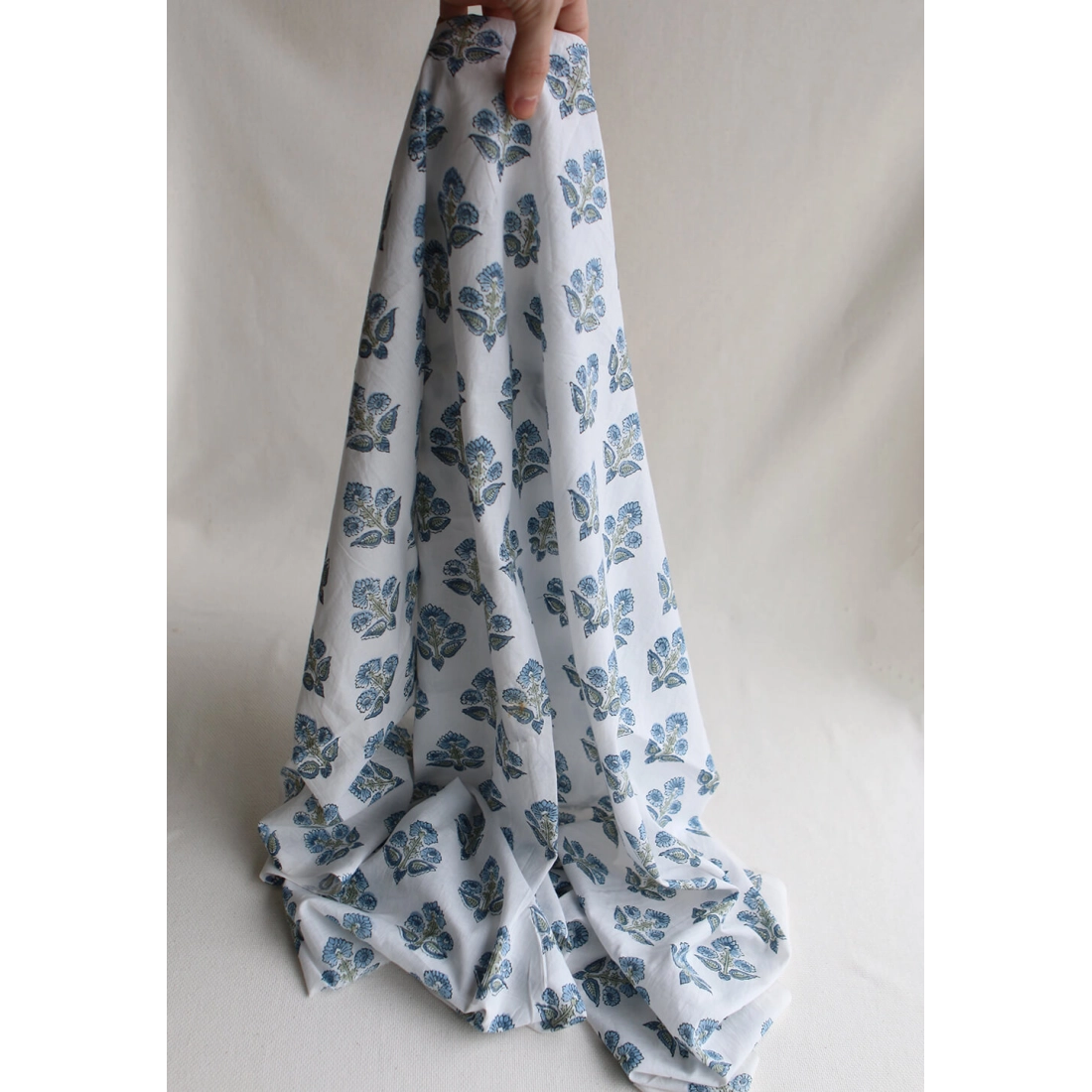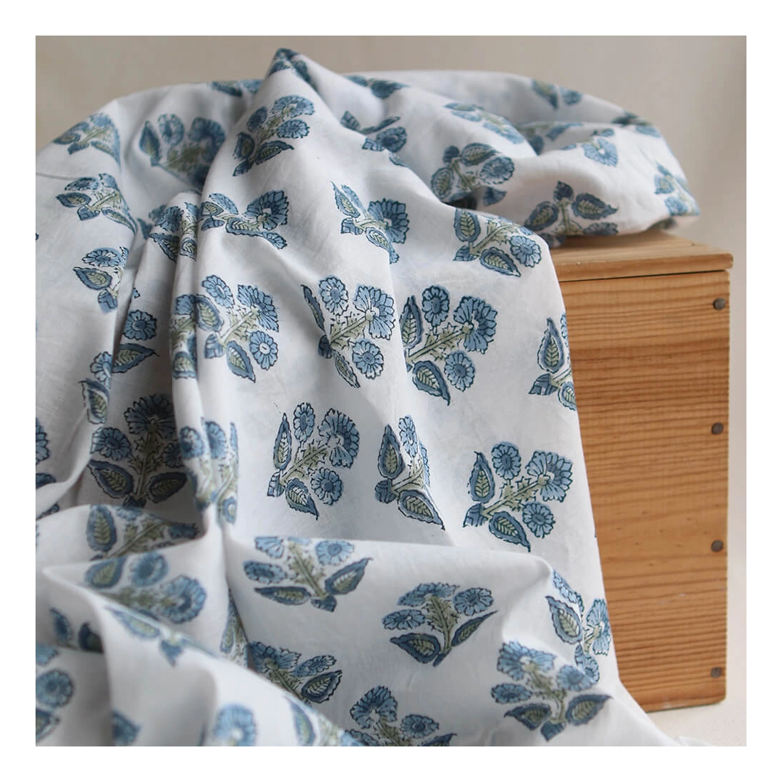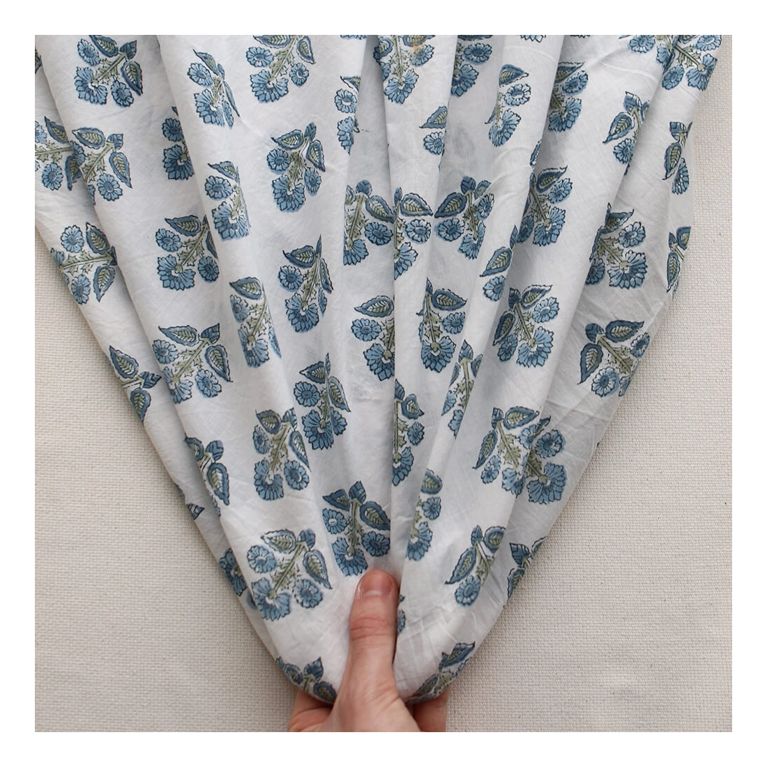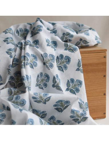 Le block print est un artisanat ancestral indien : le dessin est gravé sur un tampon en bois, chaque couleur nécessitant une étape d'impression distincte.
