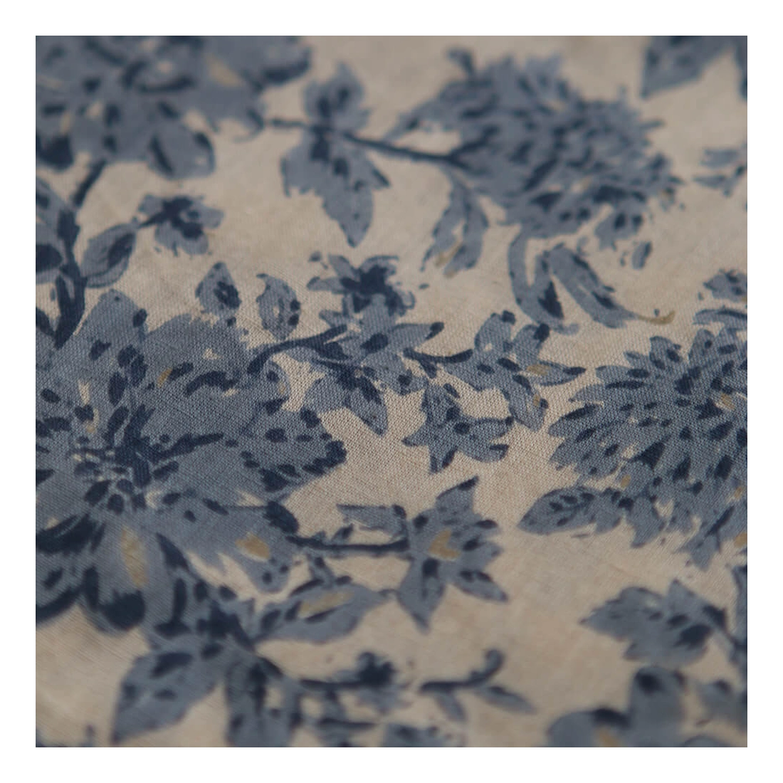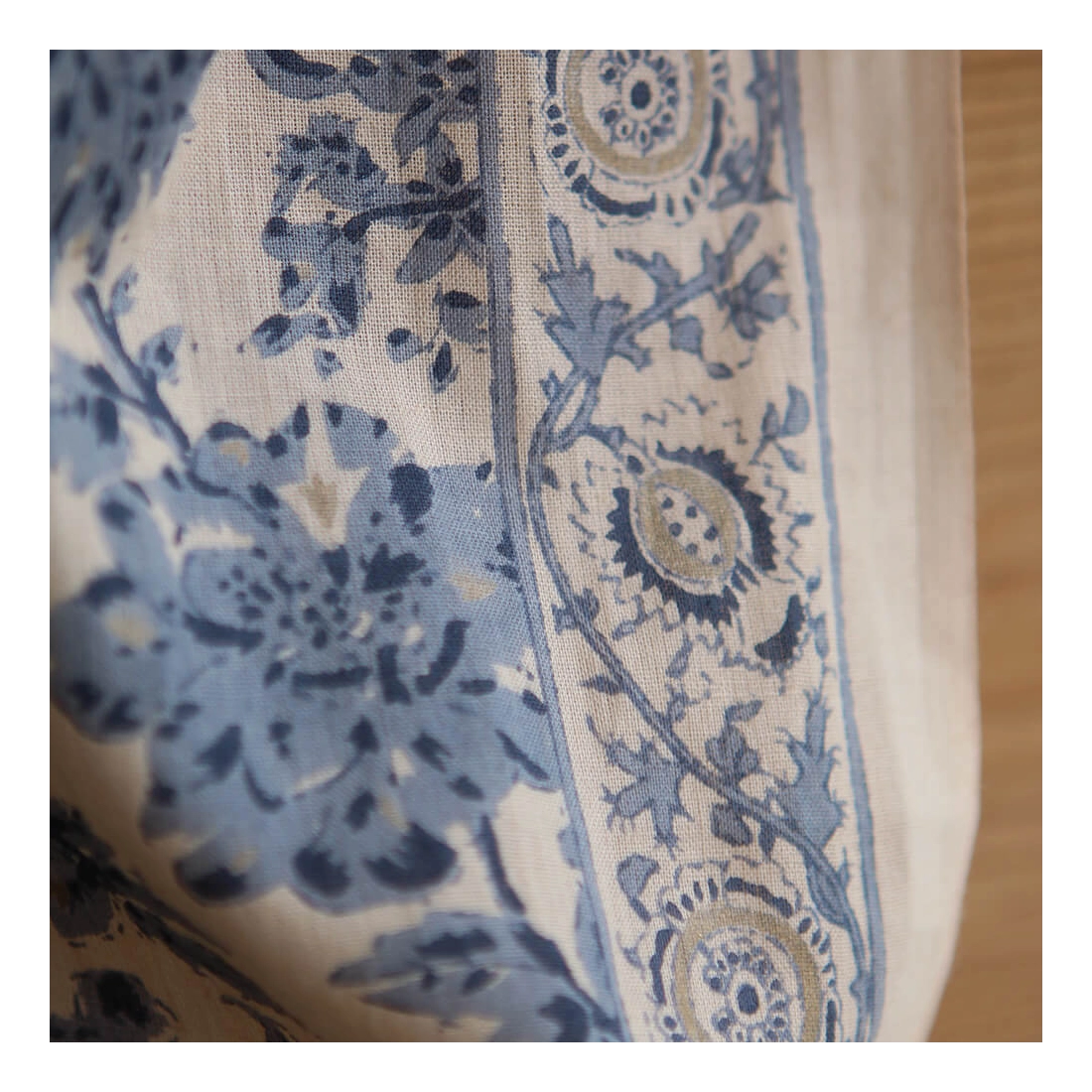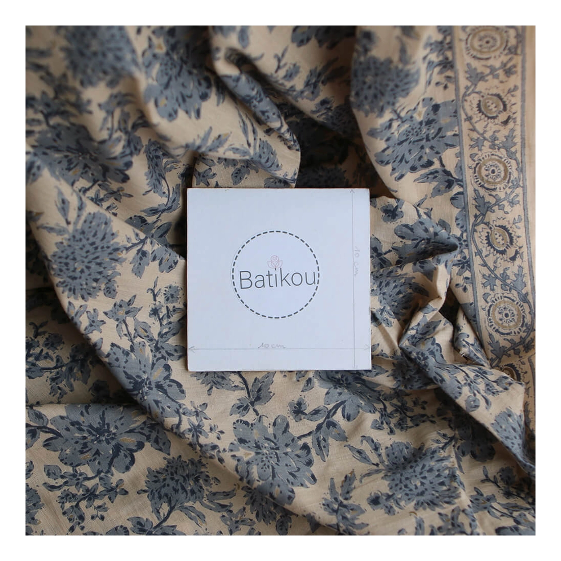 A noter que le processus artisanal (impression à la main, au tampon en bois) de ce tissu fait que chaque pièce est unique et que l'impression n'est pas aussi parfaite qu'un processus industriel.