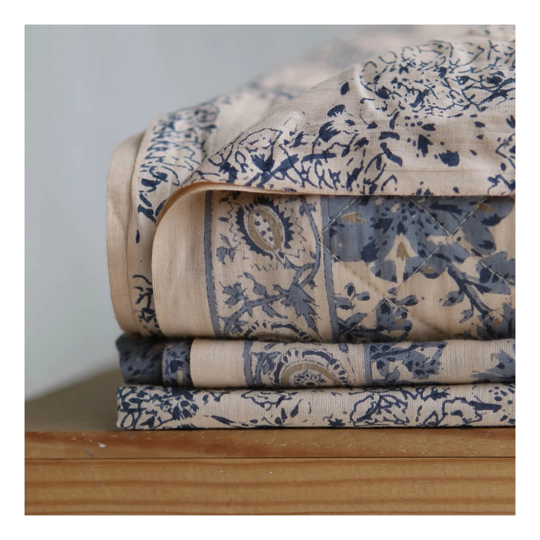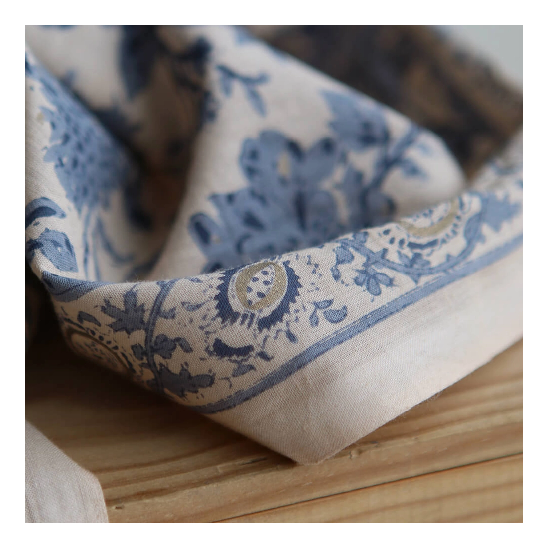 Le block print est un artisanat ancestral indien : le dessin est gravé sur un tampon en bois, chaque couleur nécessitant une étape d'impression distincte.