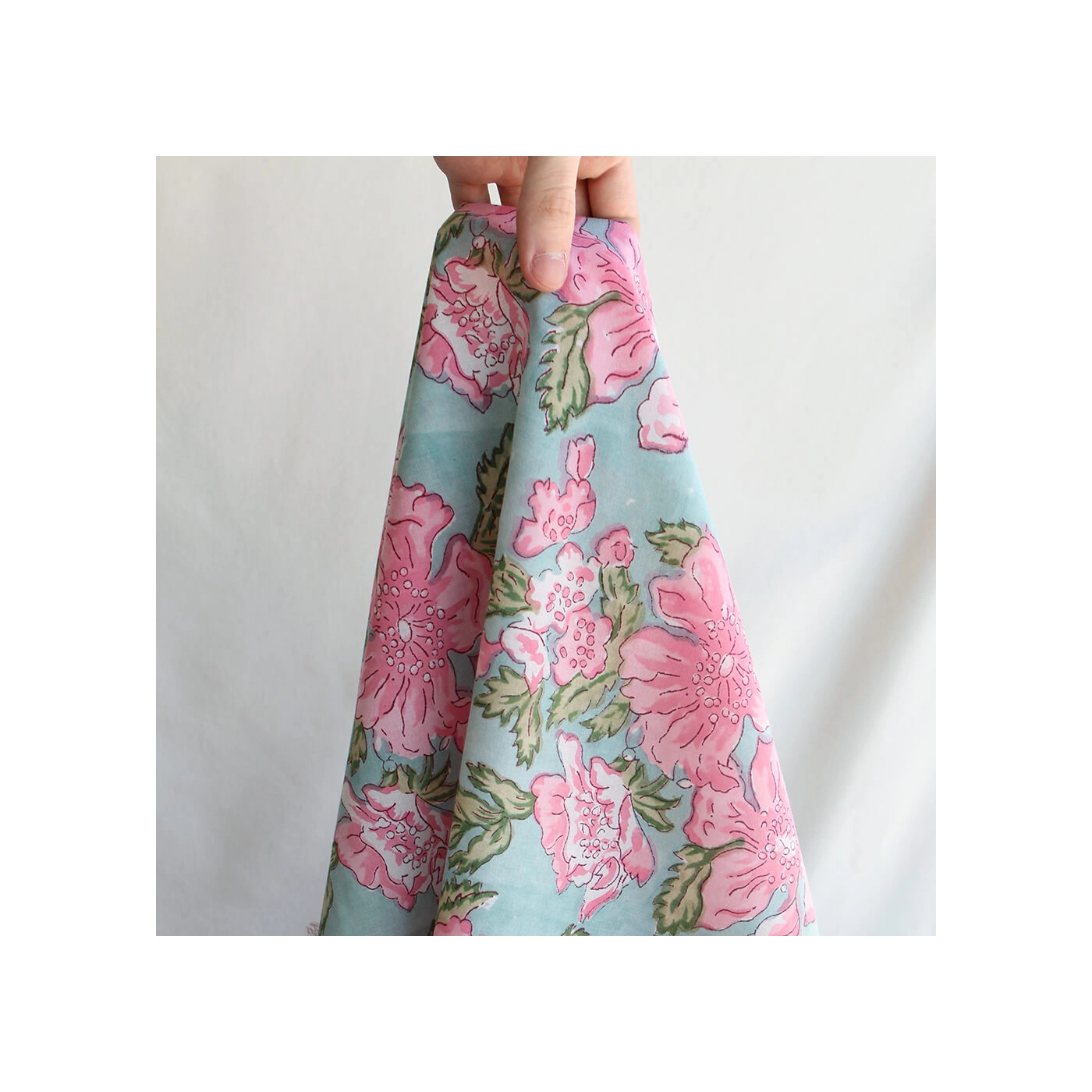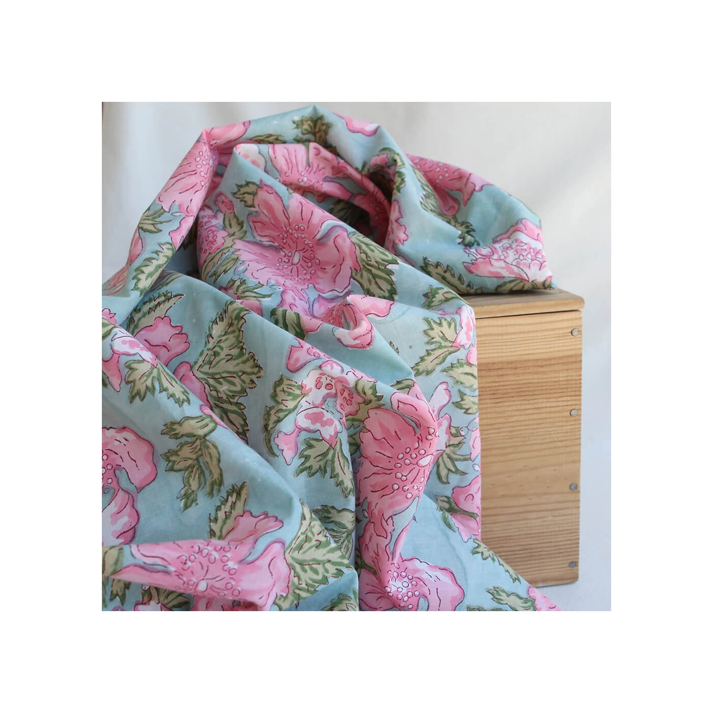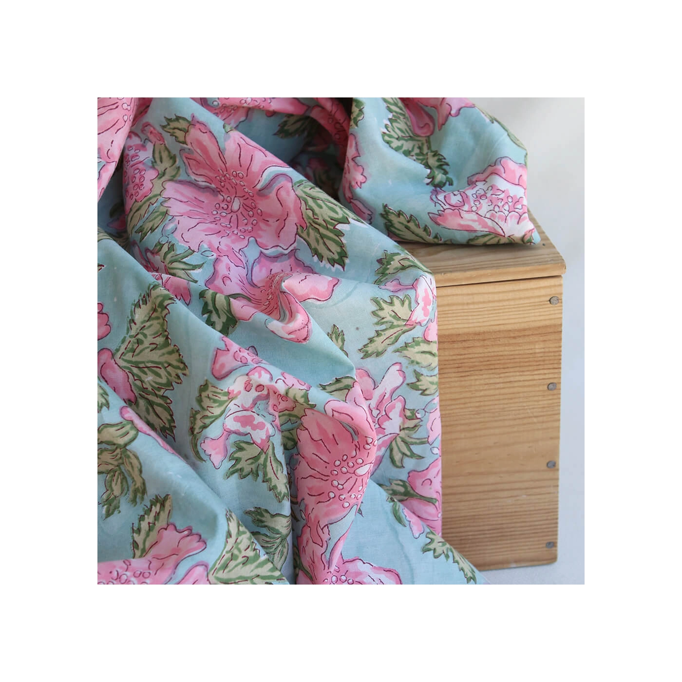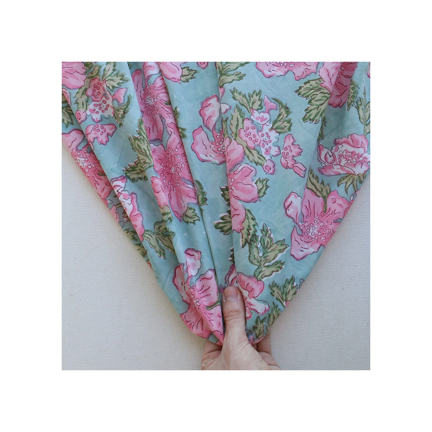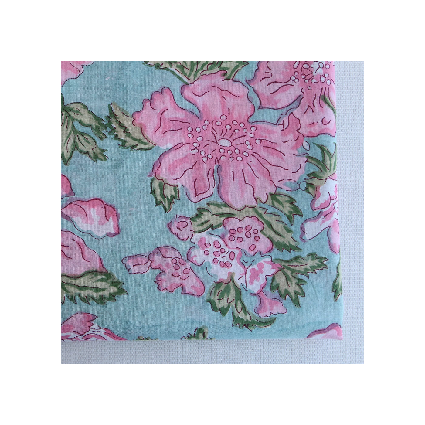 Kyra - Tissu indien en coton imprimé main Hand Block turquoise clair