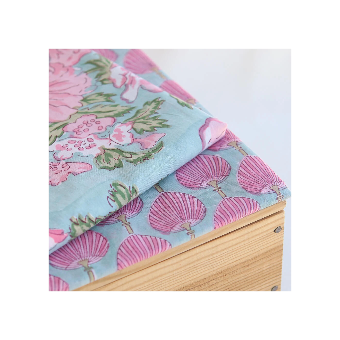 Le block print est un artisanat ancestral indien : le dessin est gravé sur un tampon en bois, chaque couleur nécessitant une étape d'impression distincte.