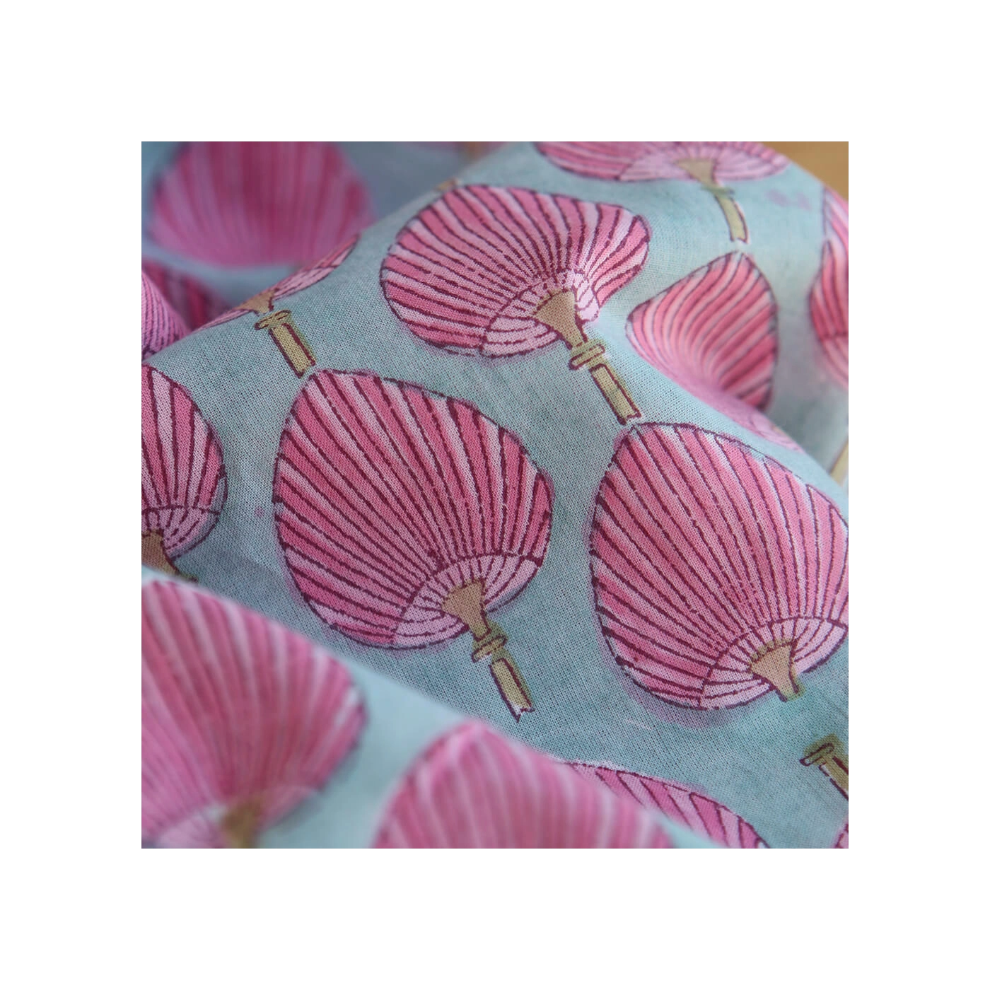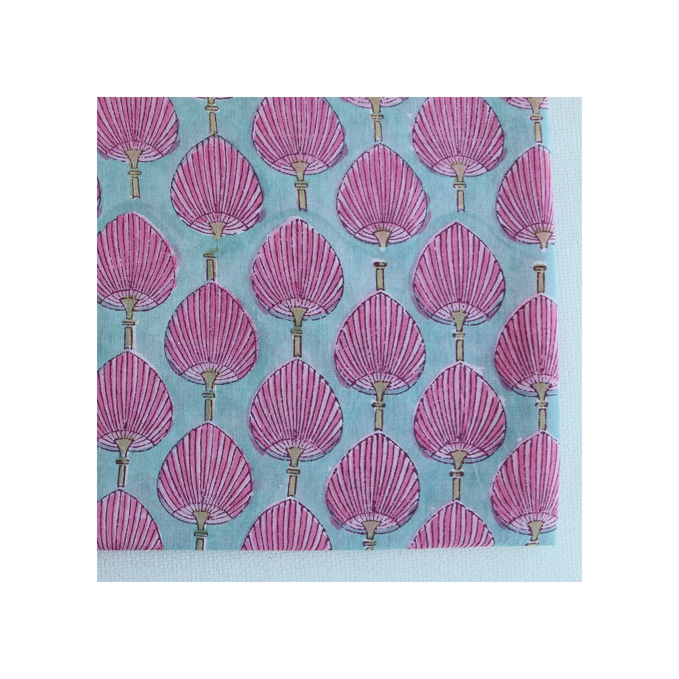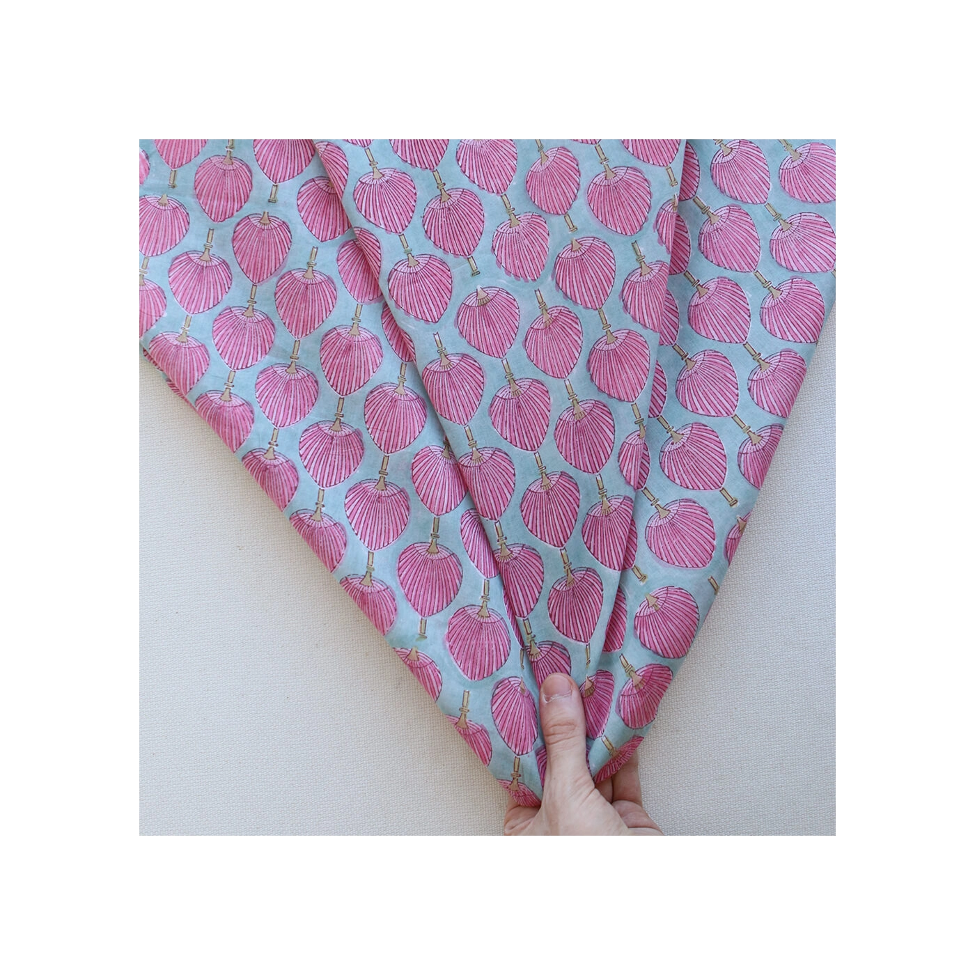 Le block print est un artisanat ancestral indien : le dessin est gravé sur un tampon en bois, chaque couleur nécessitant une étape d'impression distincte.
