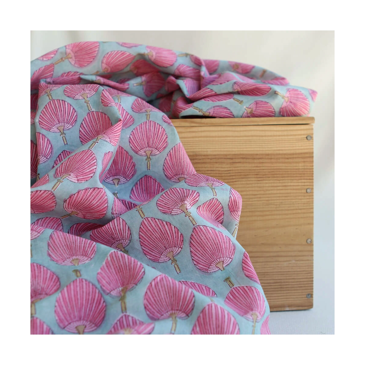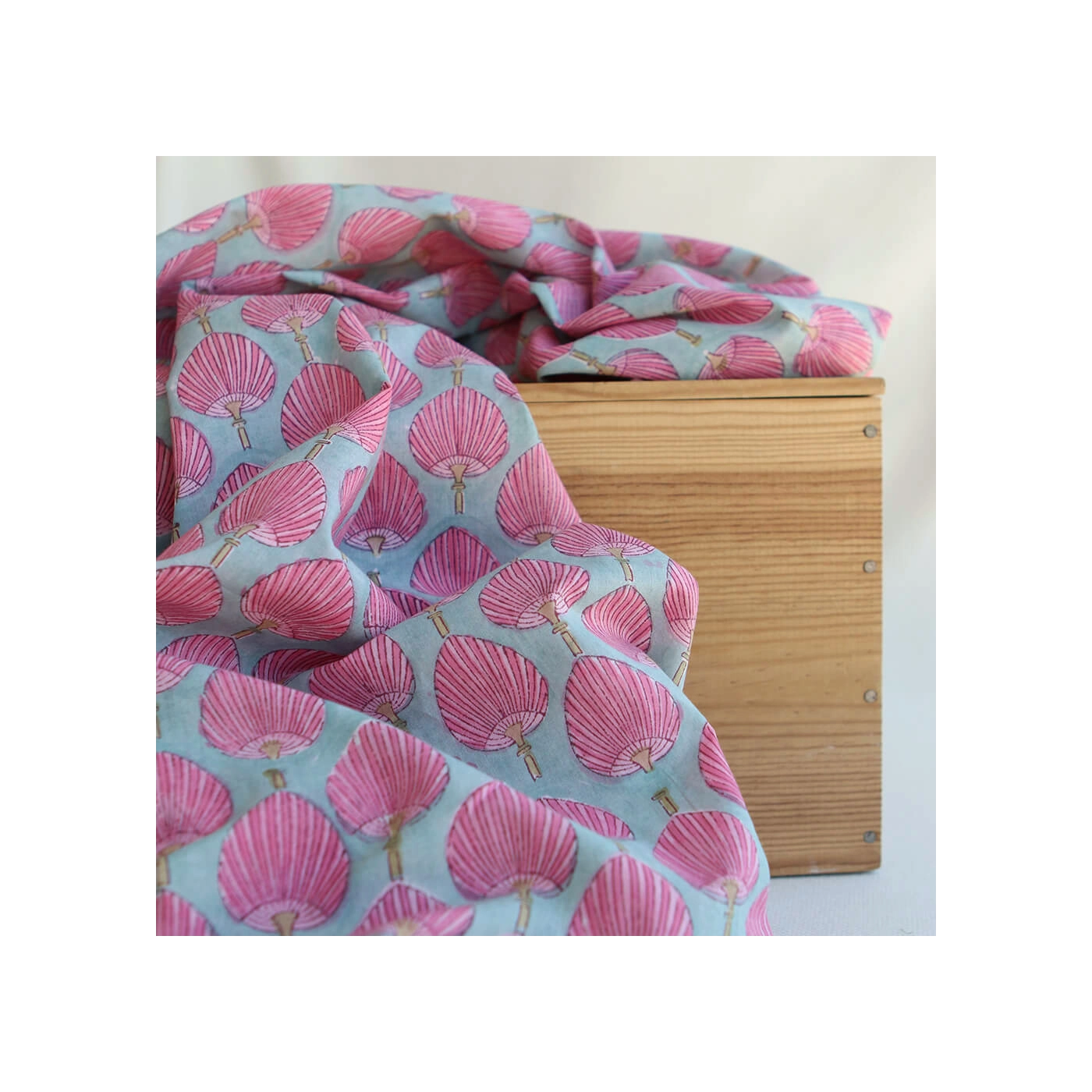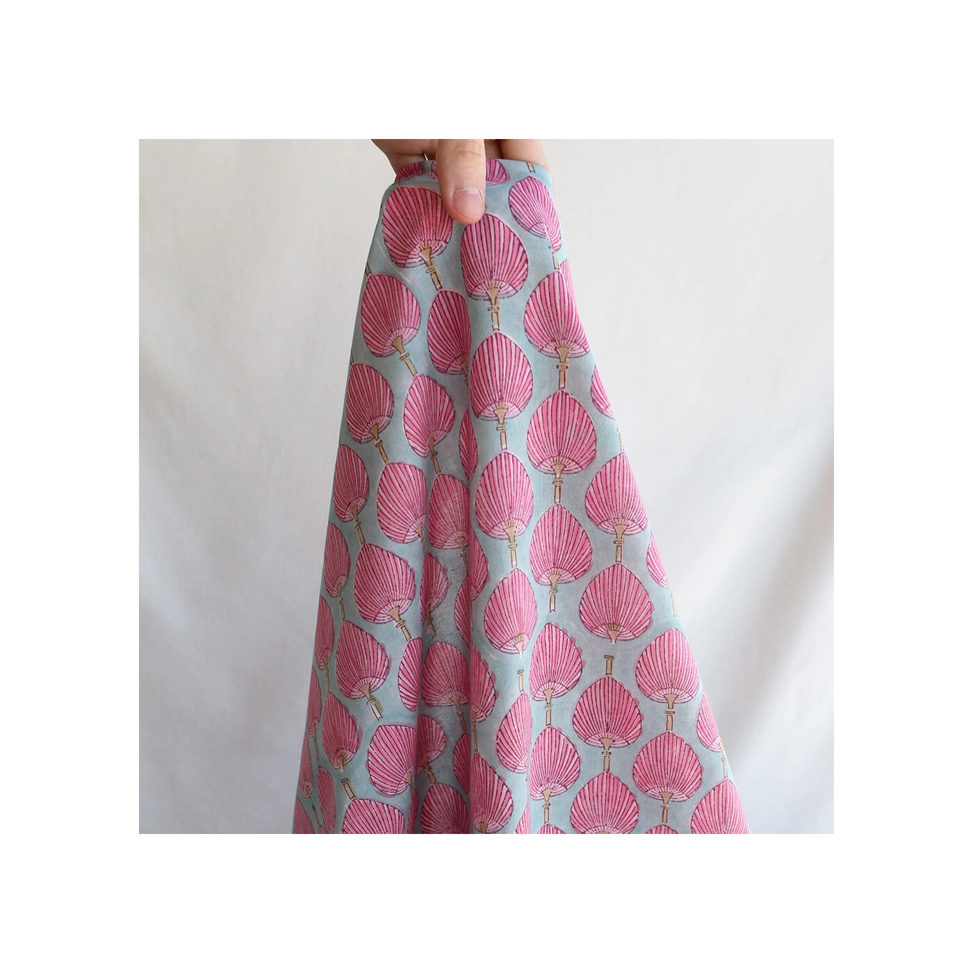 Le block print est un artisanat ancestral indien : le dessin est gravé sur un tampon en bois, chaque couleur nécessitant une étape d'impression distincte.